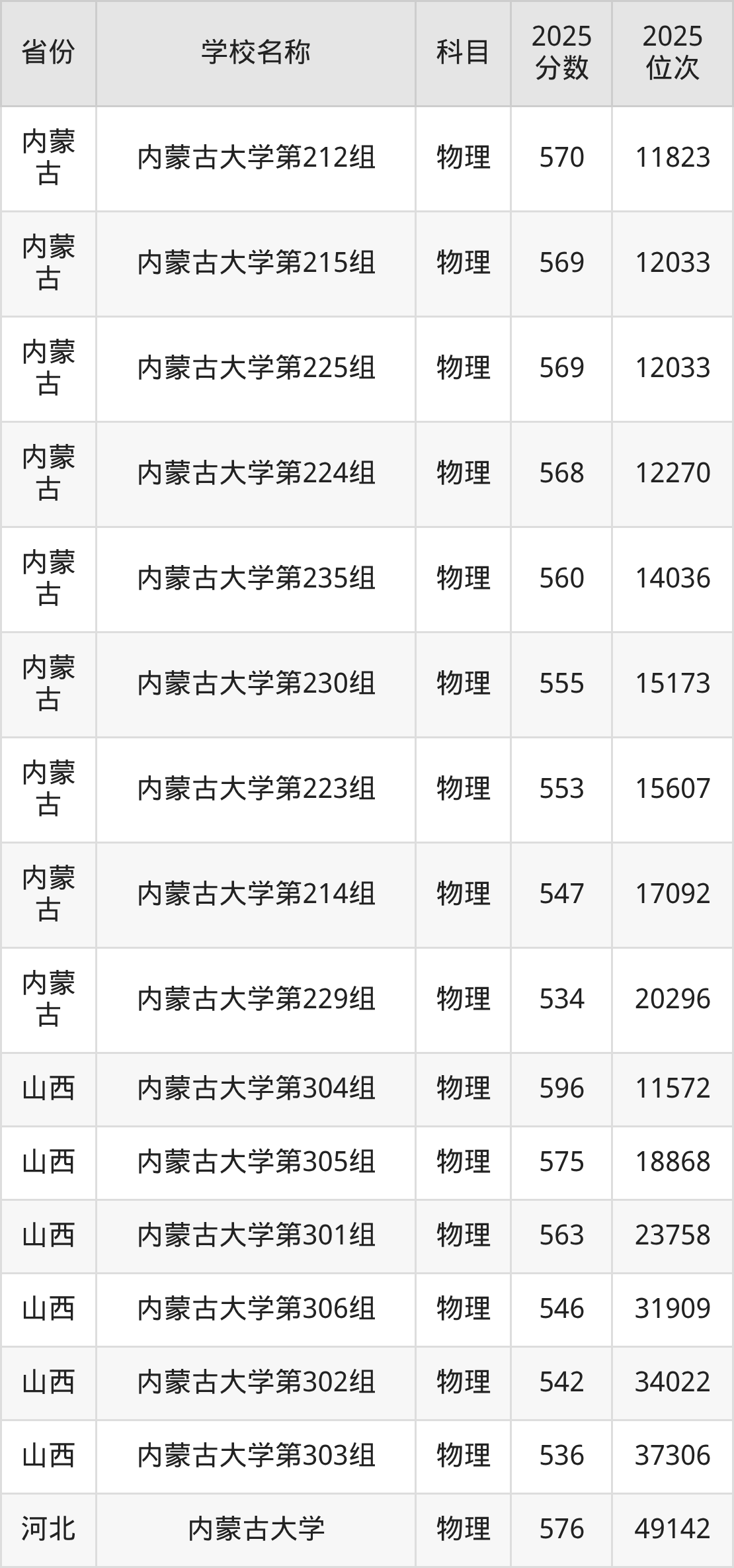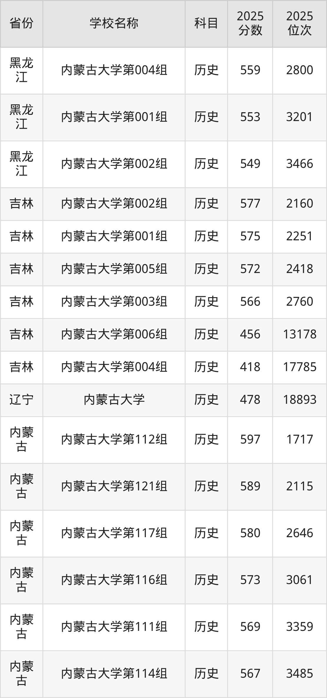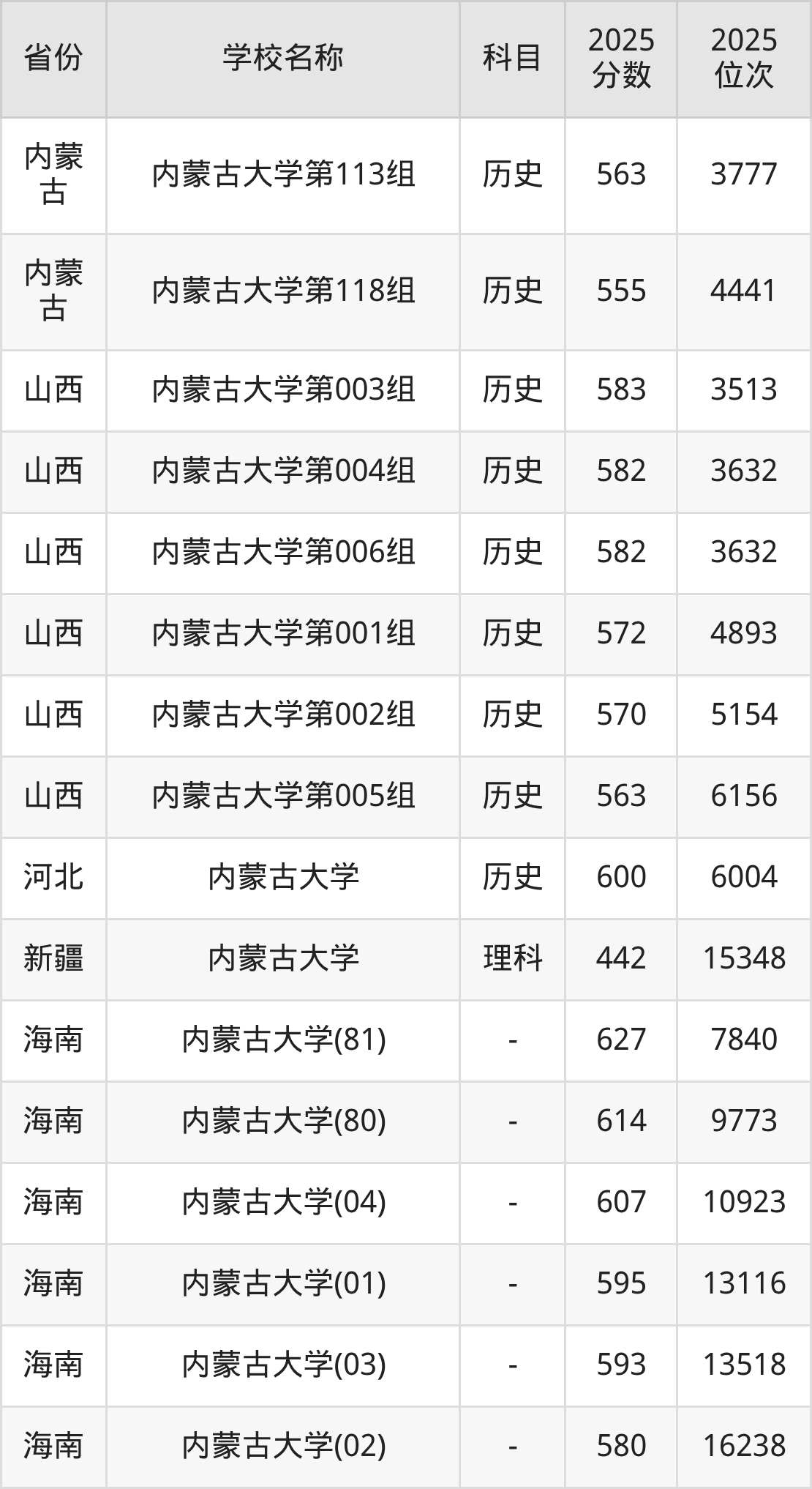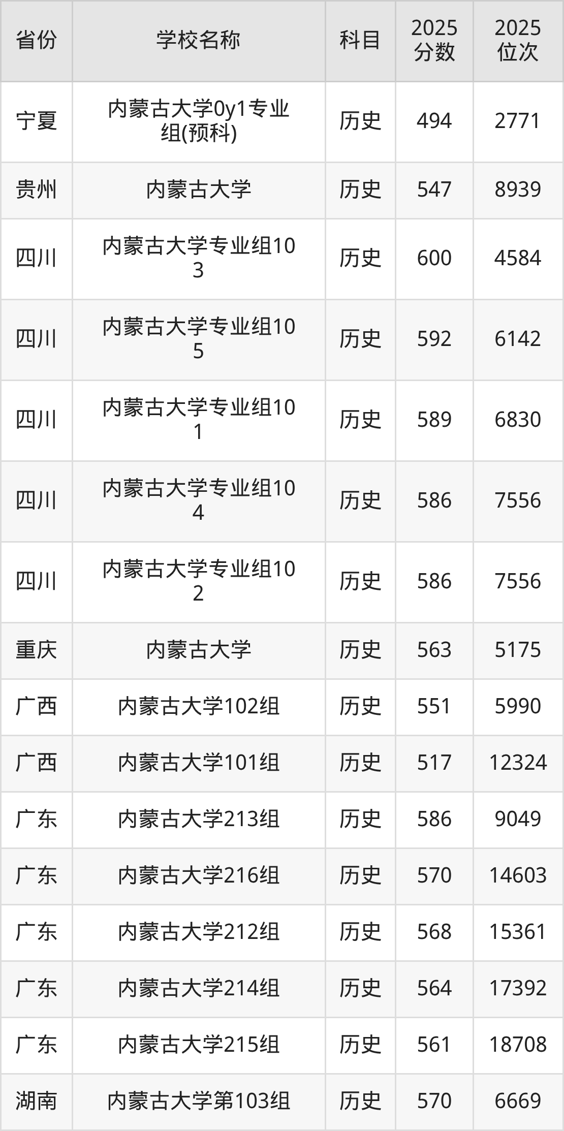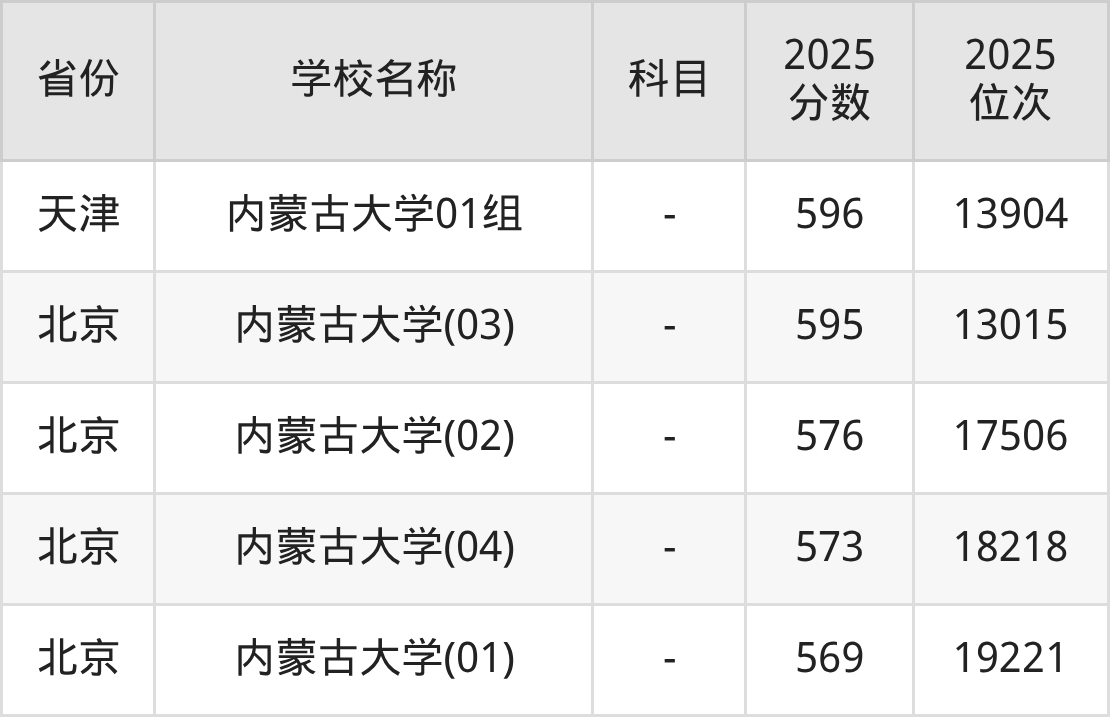 一、2025内蒙古大学录取分数线