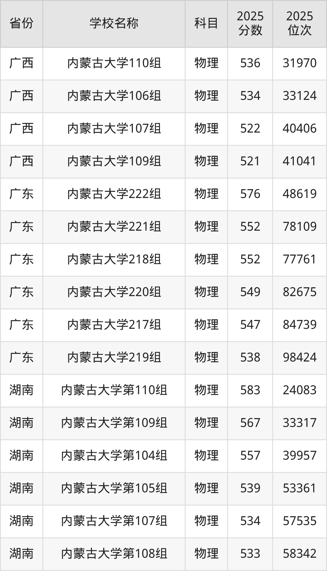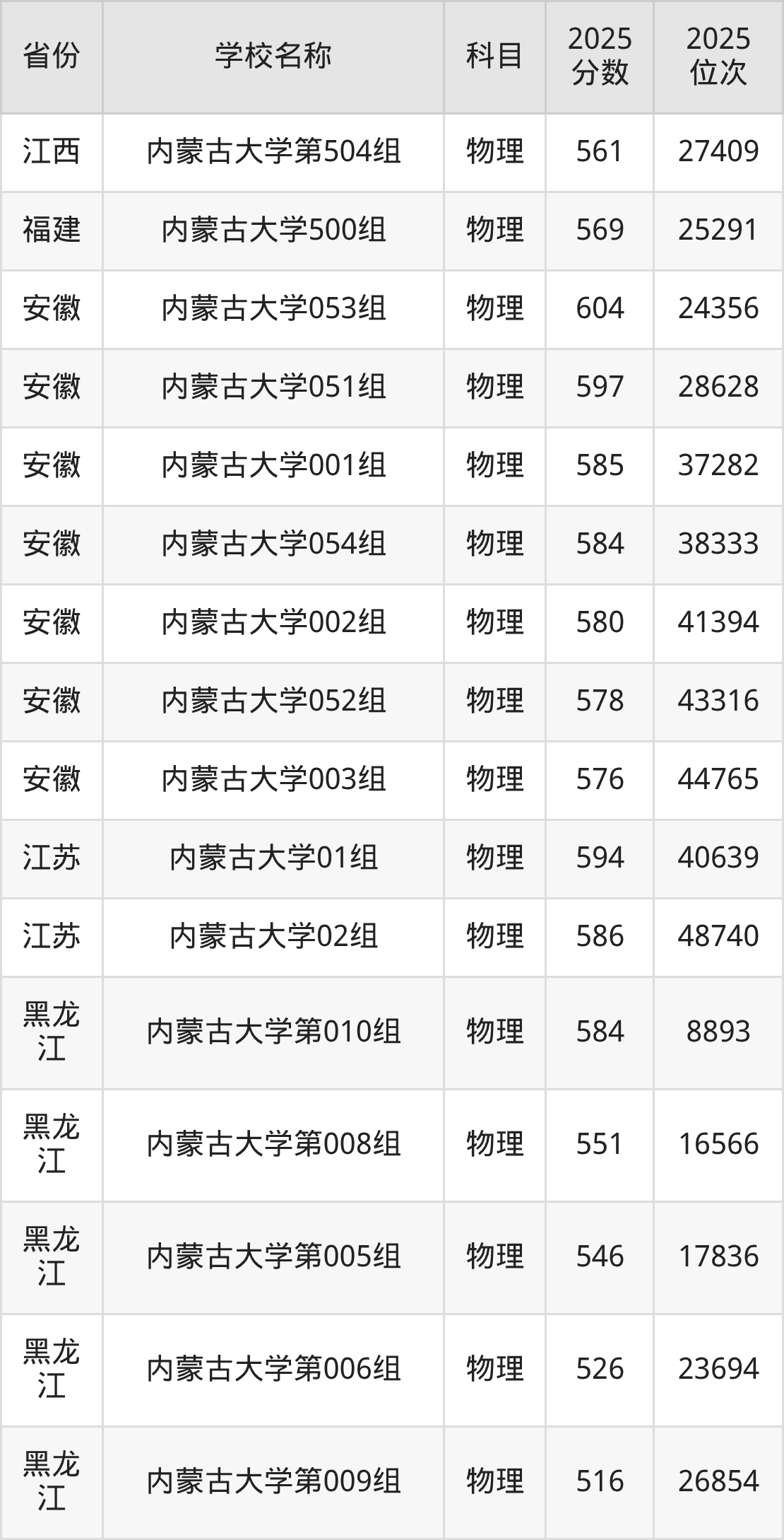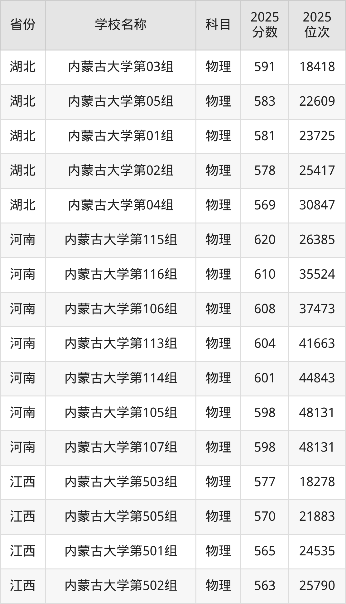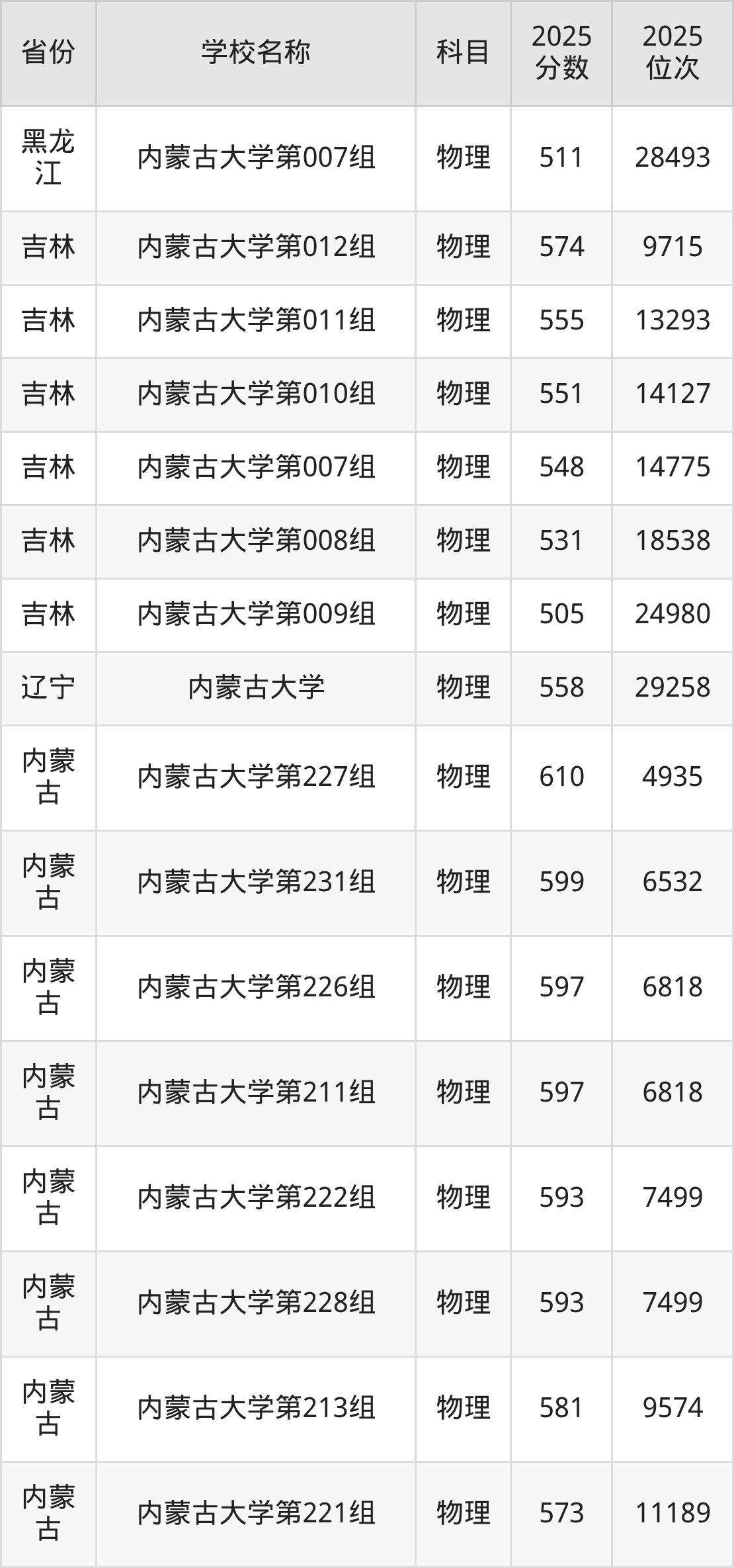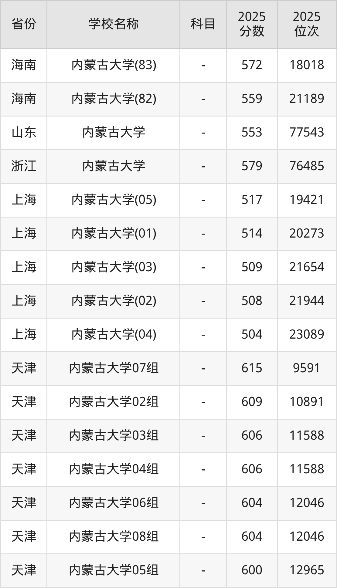 一、2025内蒙古大学录取分数线