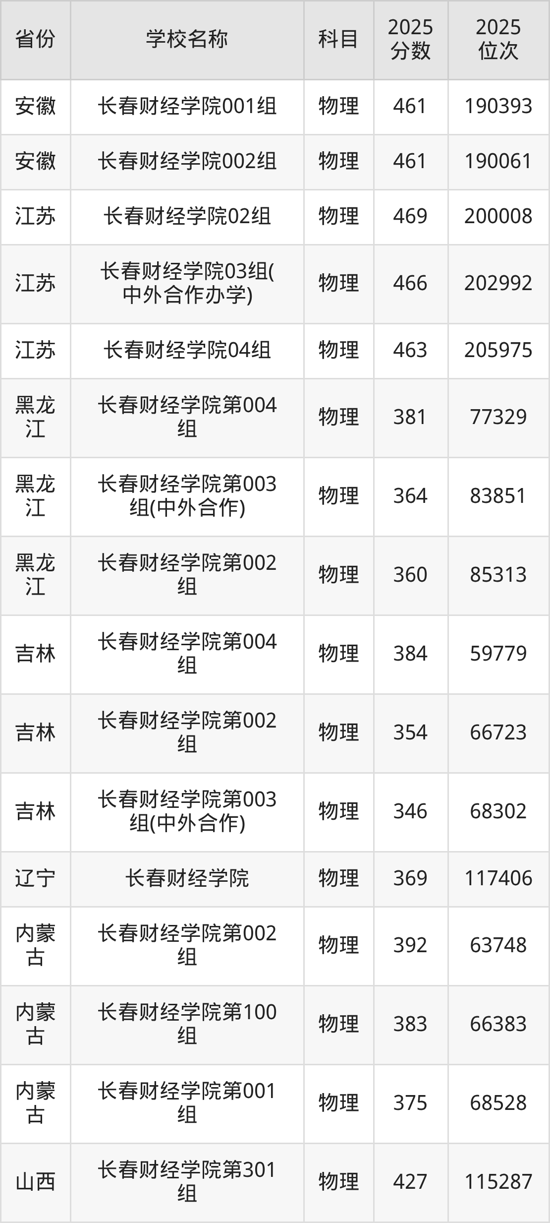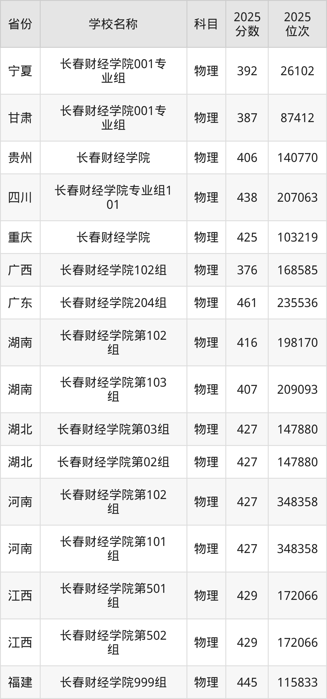 长春财经学院2025年有3个专业组面向吉林省内首选了物理科目的考生招生: