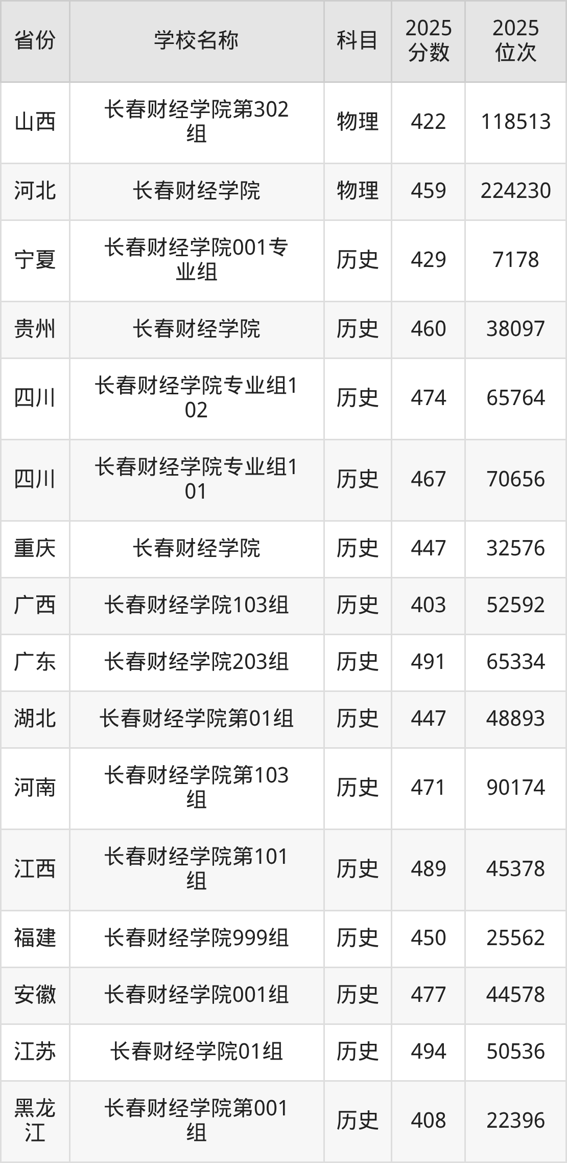 长春财经学院2025年有1个专业组面向吉林省内首选了历史科目的考生招生:
