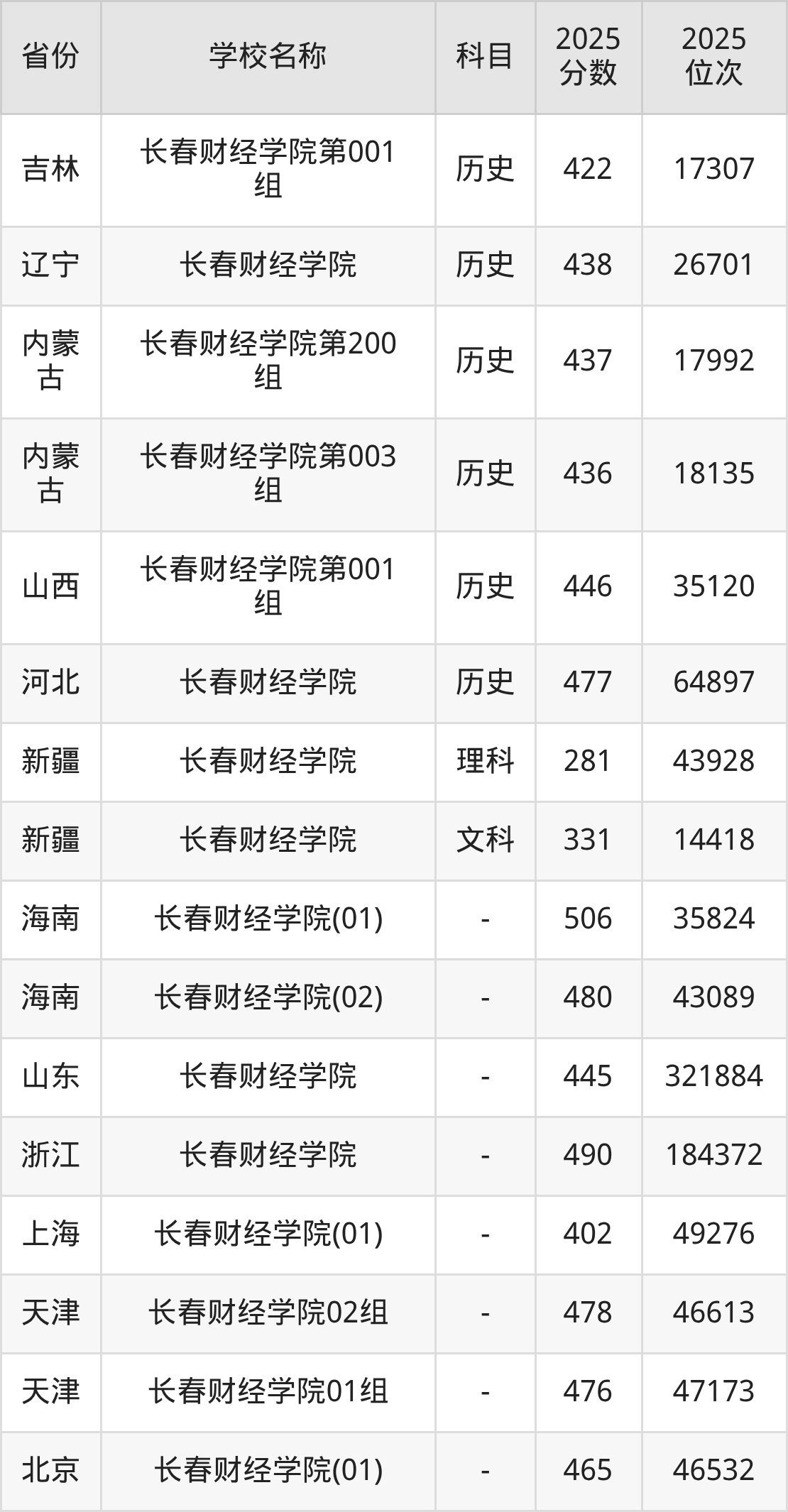 2025年长春财经学院在全国各省本科的最低录取分数线在281~506分之间。海南高考生最低506分能上长春财经学院、浙江高考生最低490分能上长春财经学院……下文将展示长春财经学院在全国27个高考省份中的本科最低投档录取分汇总!