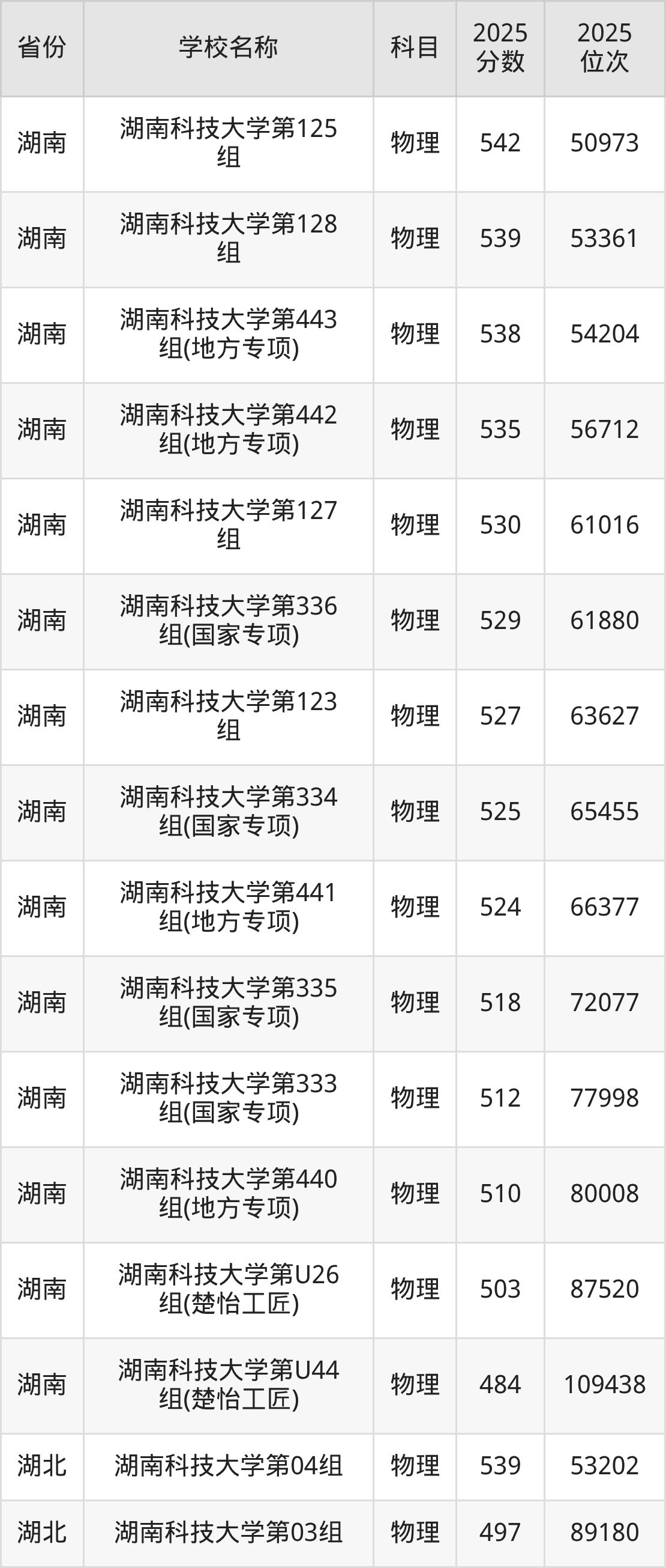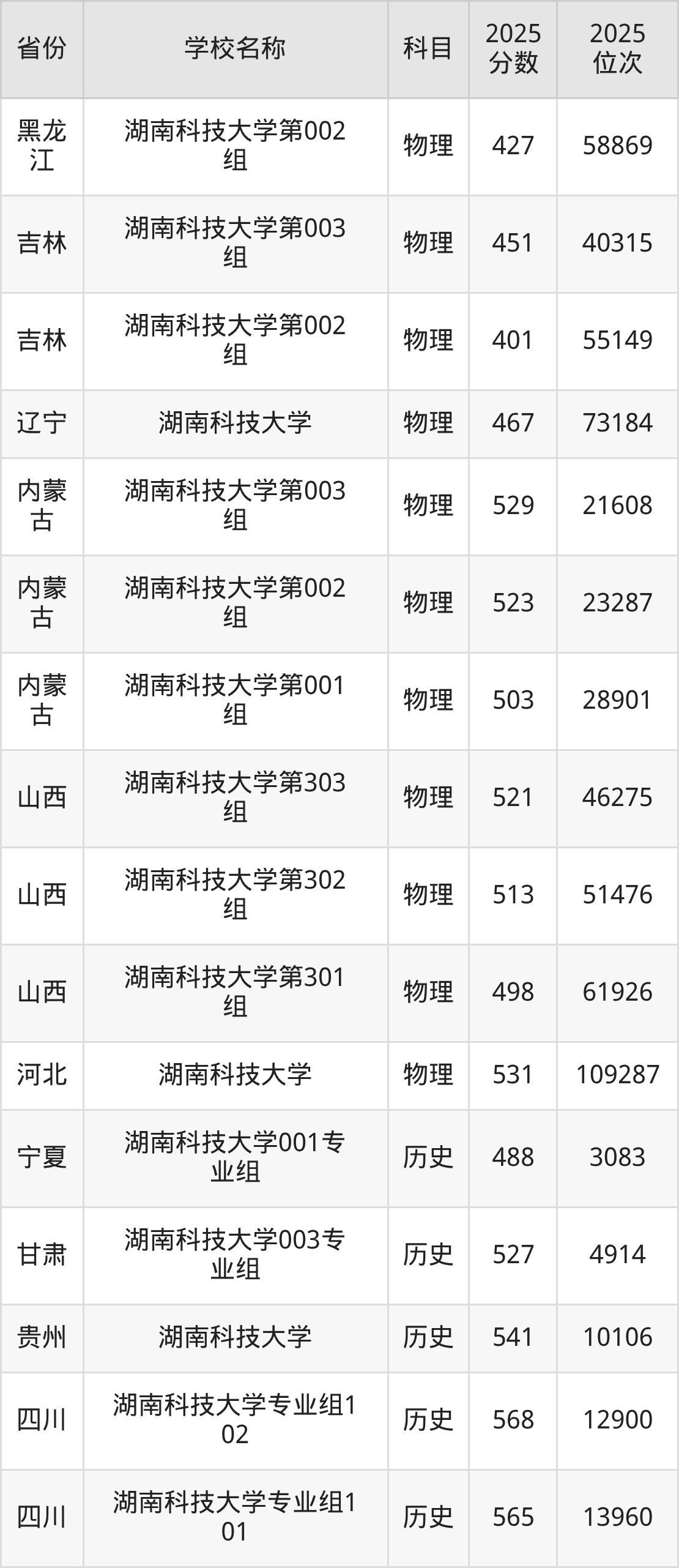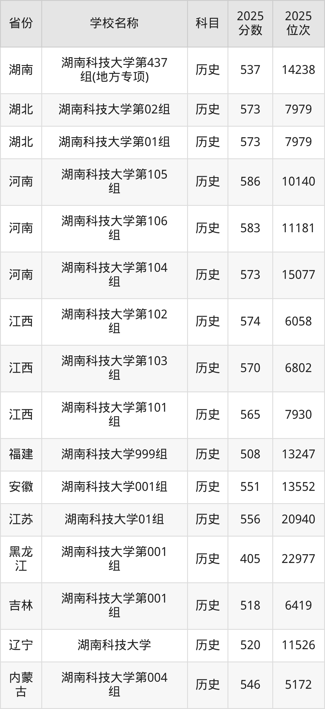 二、湖南科技大学各专业录取分数线