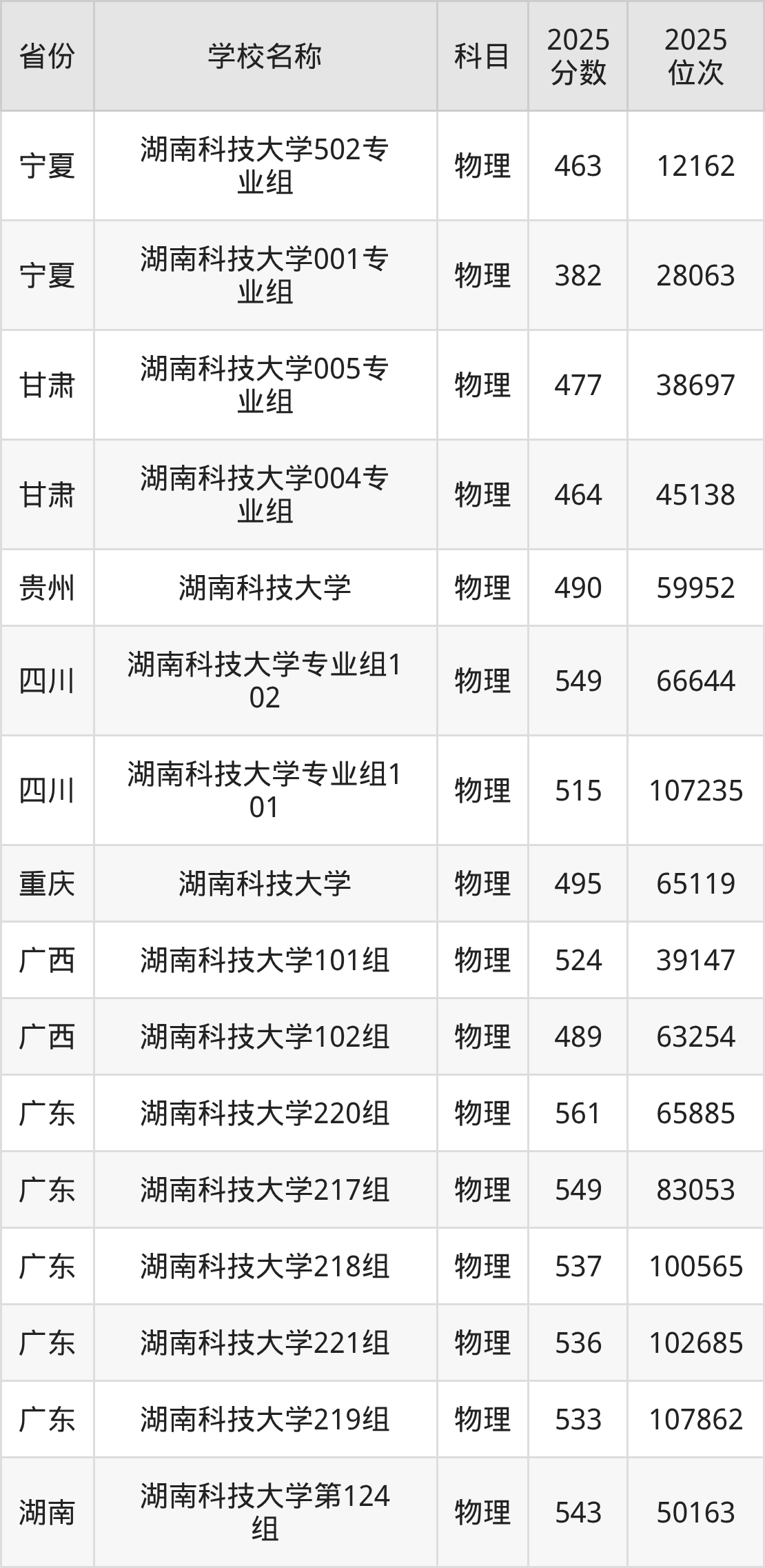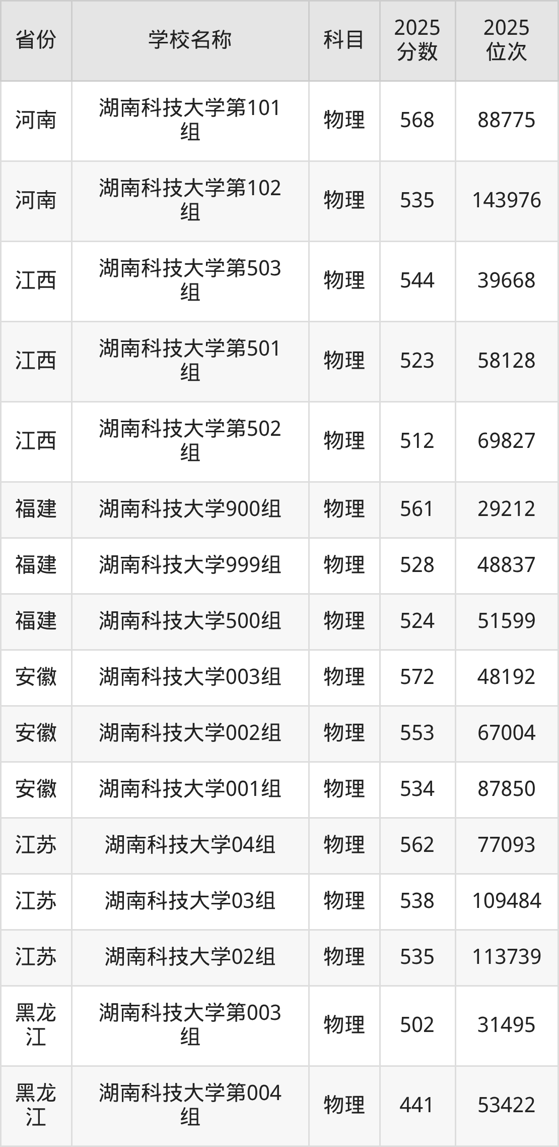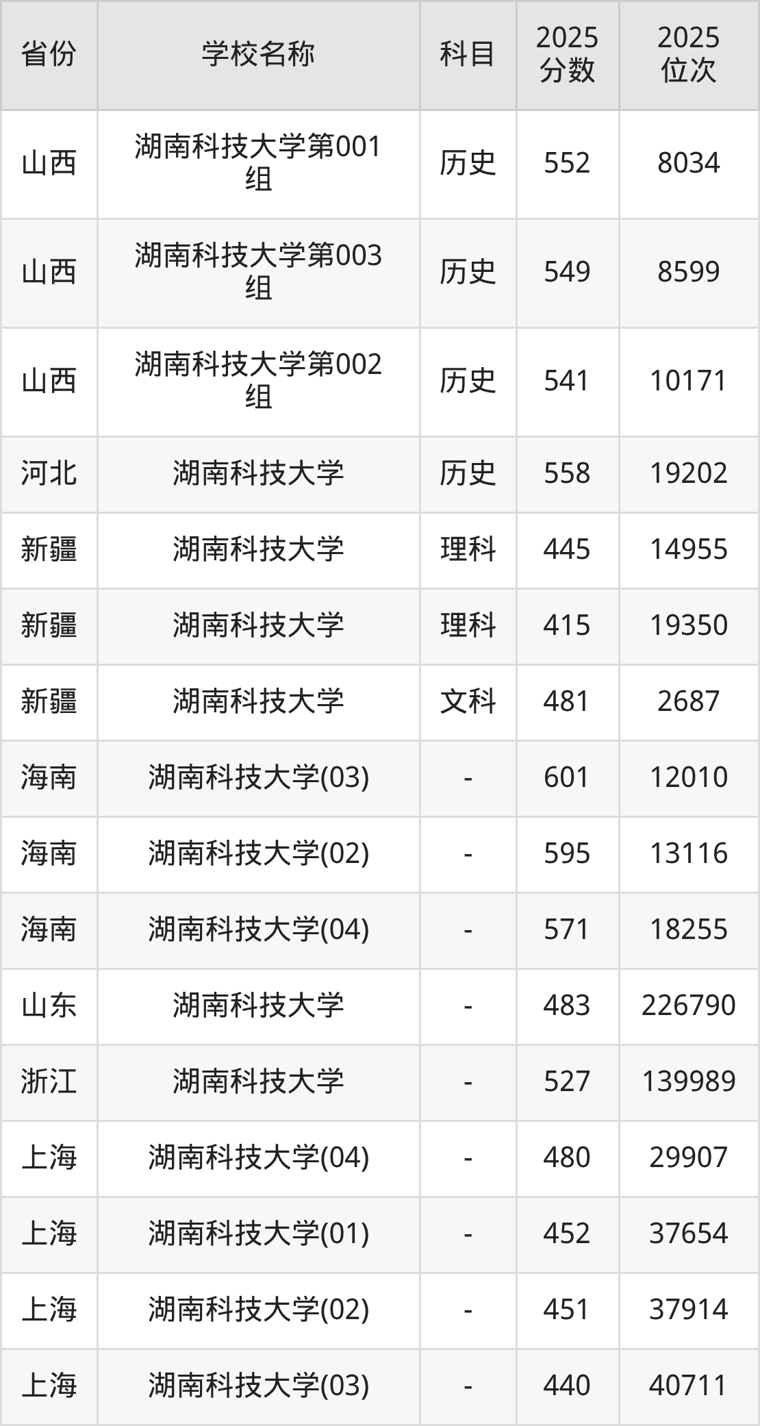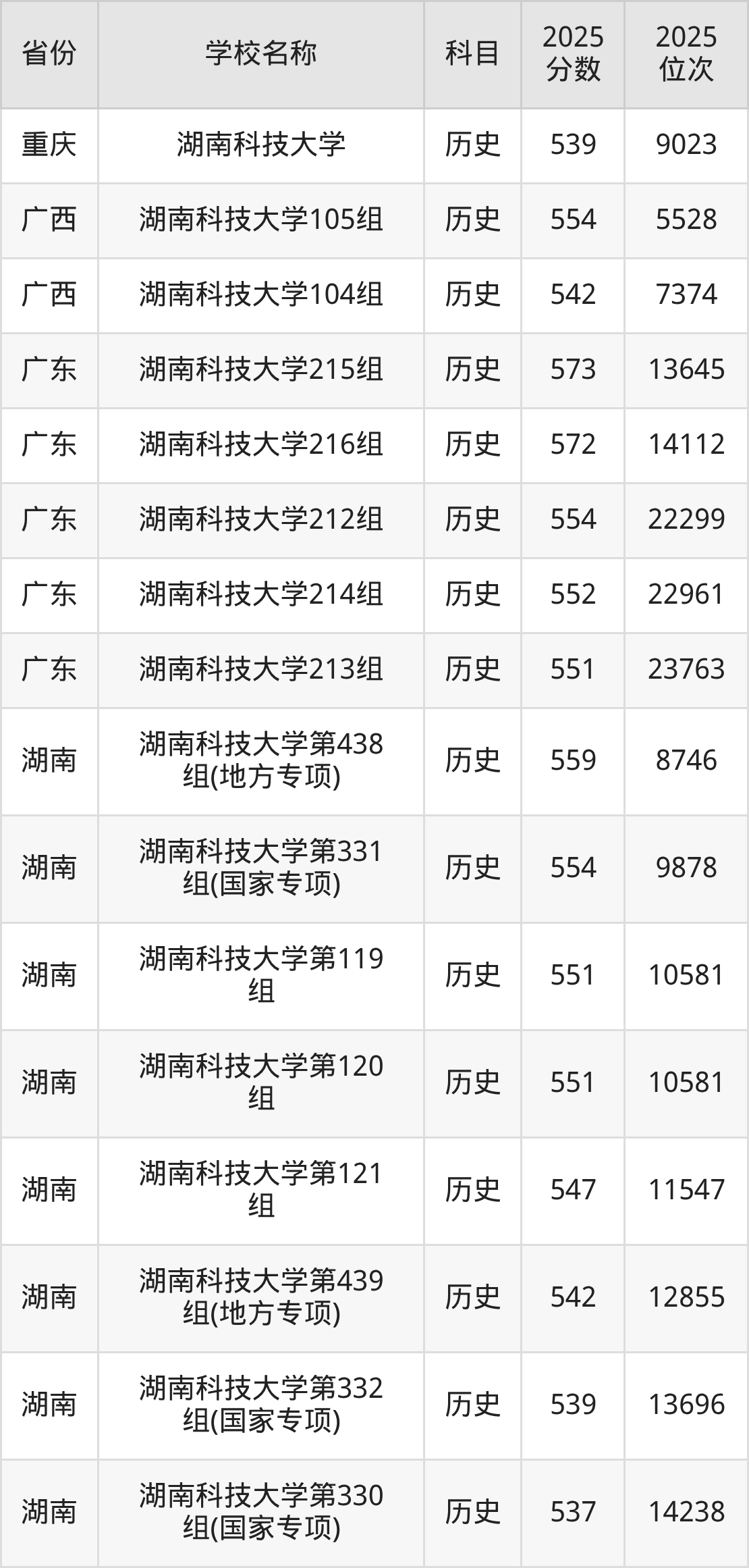 二、湖南科技大学各专业录取分数线