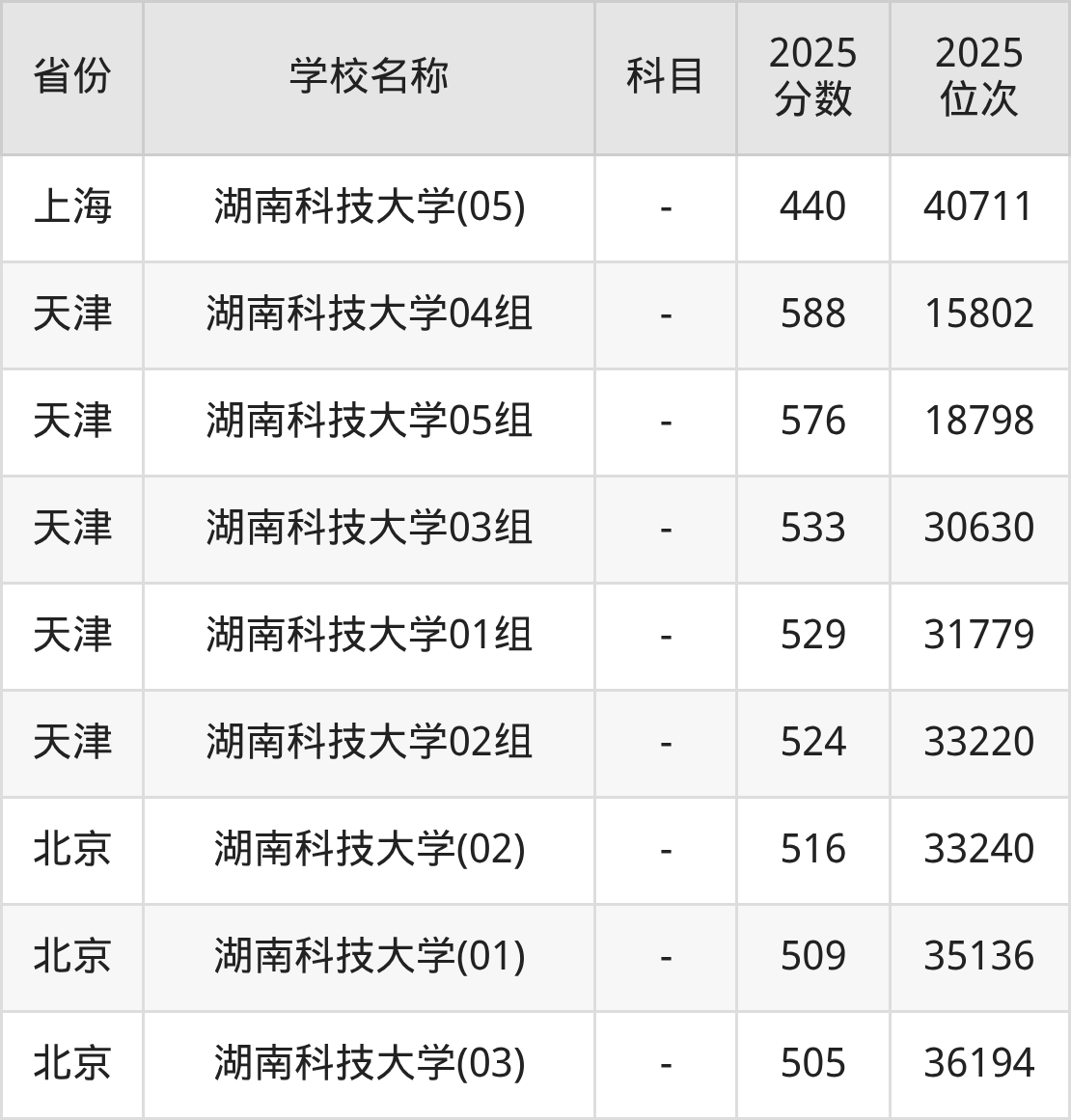 一、2025湖南科技大学录取分数线