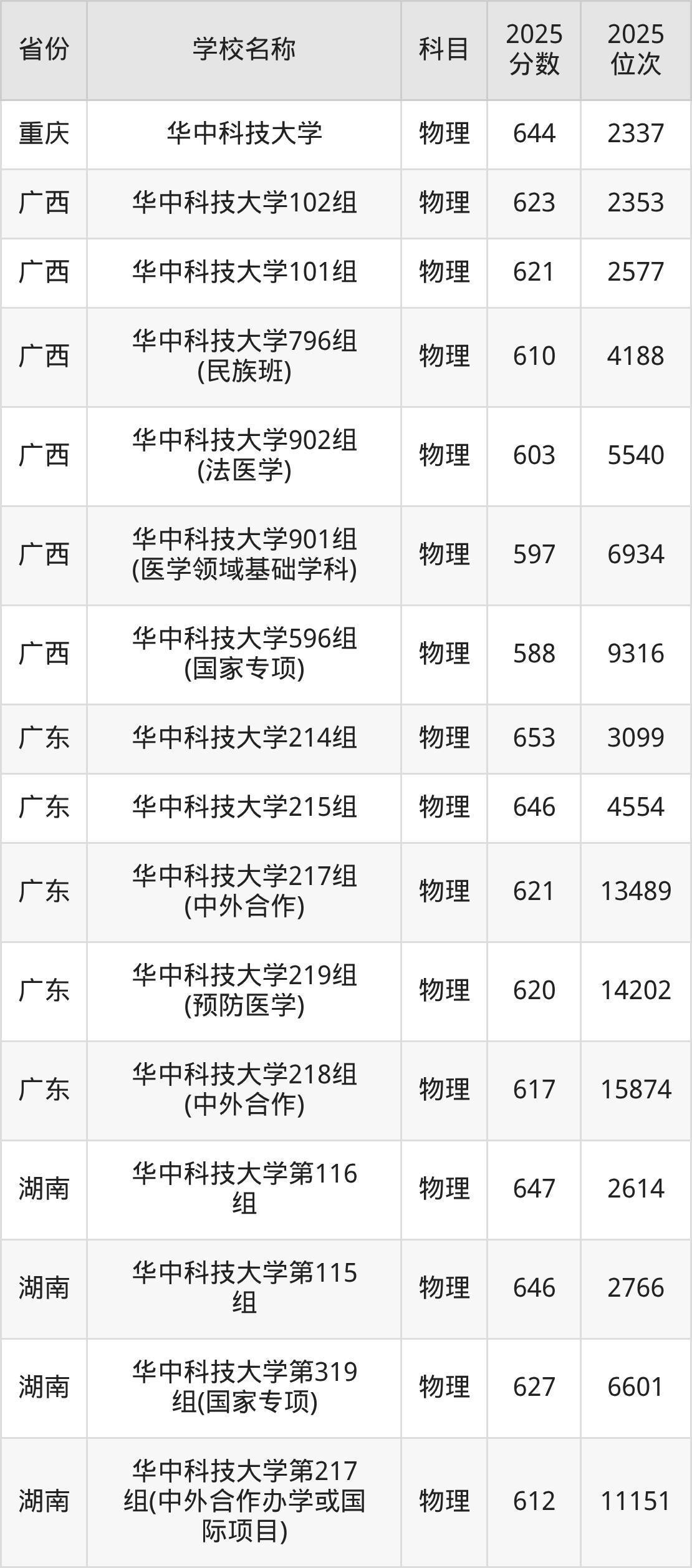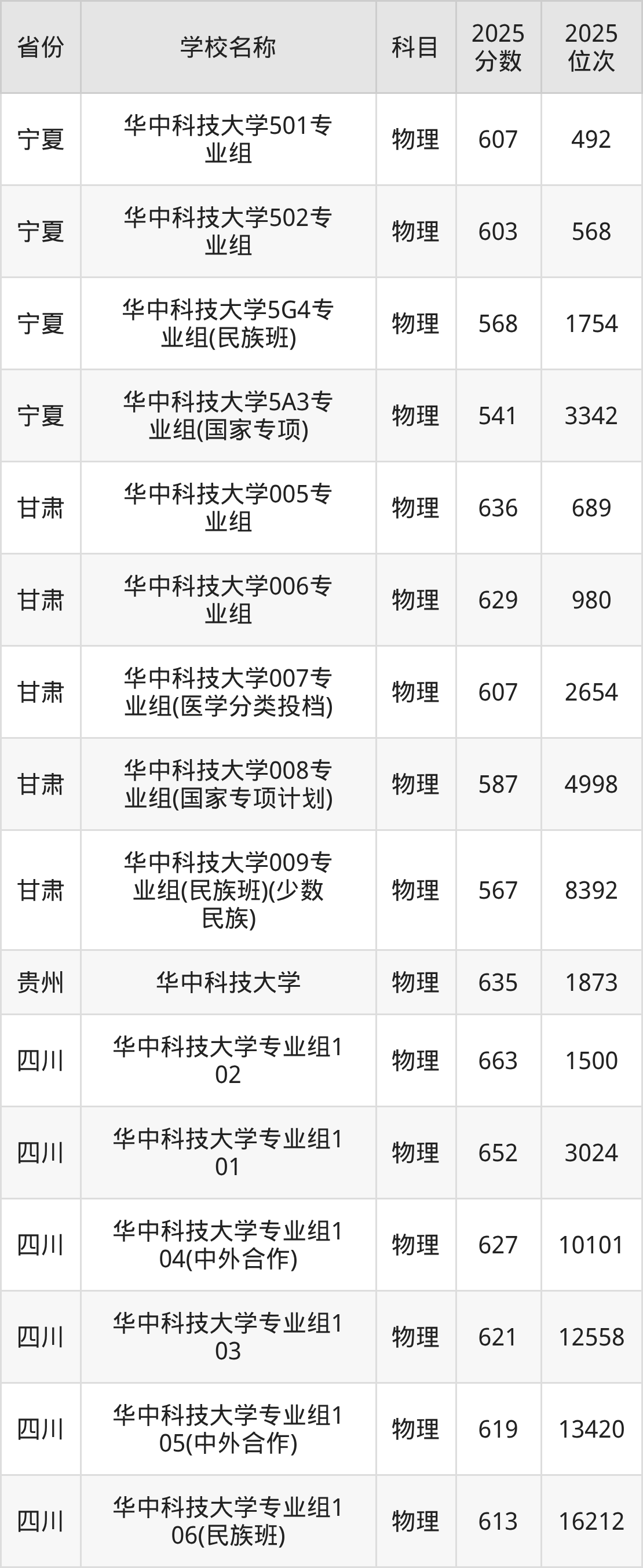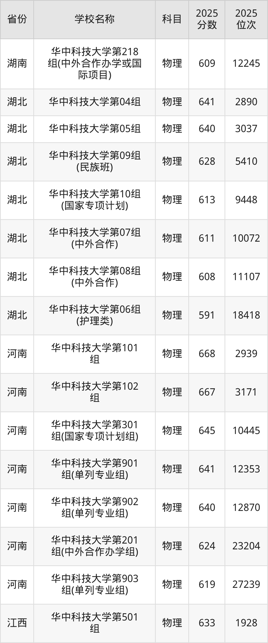 华中科技大学2025年有8个专业组面向湖北省内首选了物理科目的考生招生: