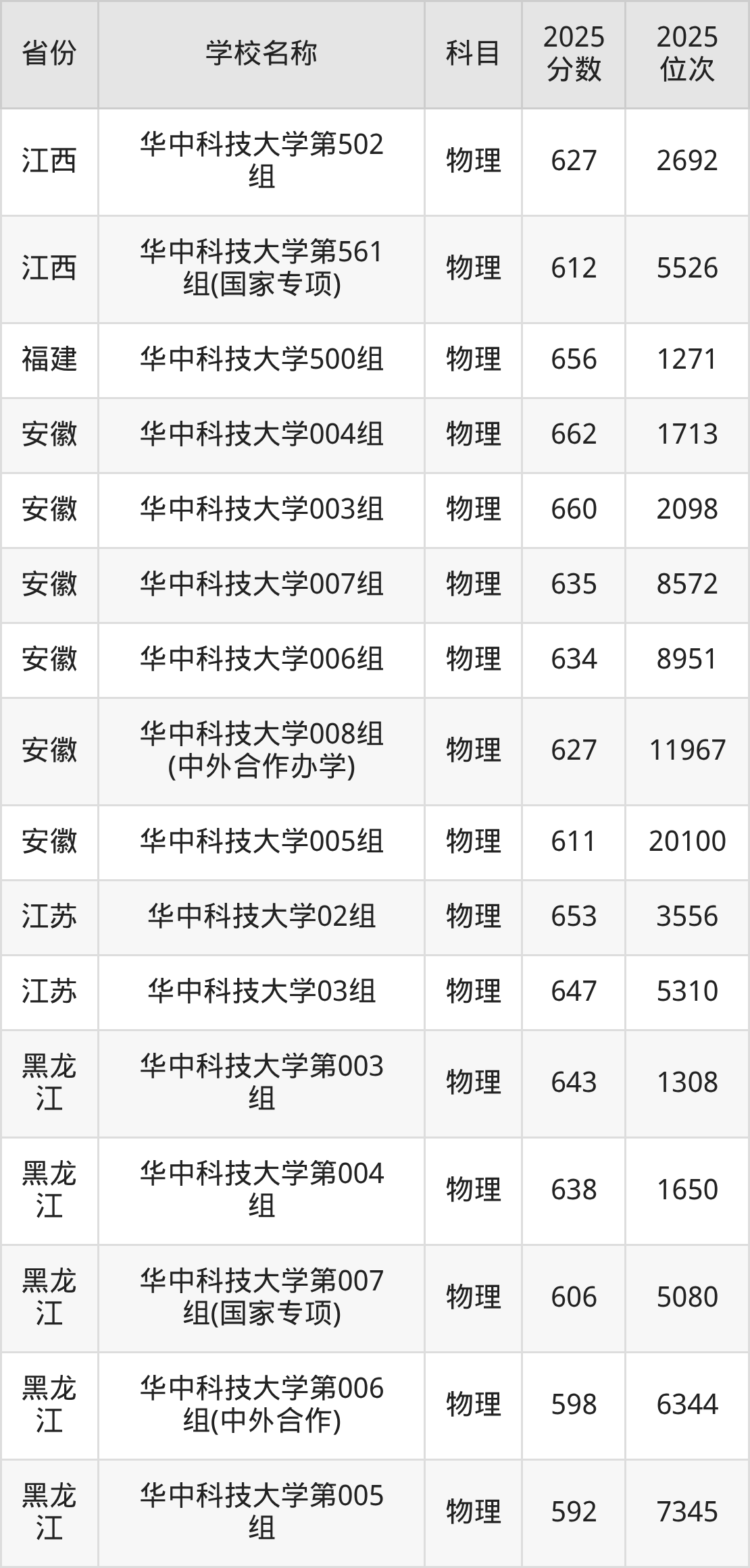 可见,华中科技大学的不同专业组,在“招生专业、录取分数线”等方面有较大区别。物理类专业组之间的分数线差距高达50分。