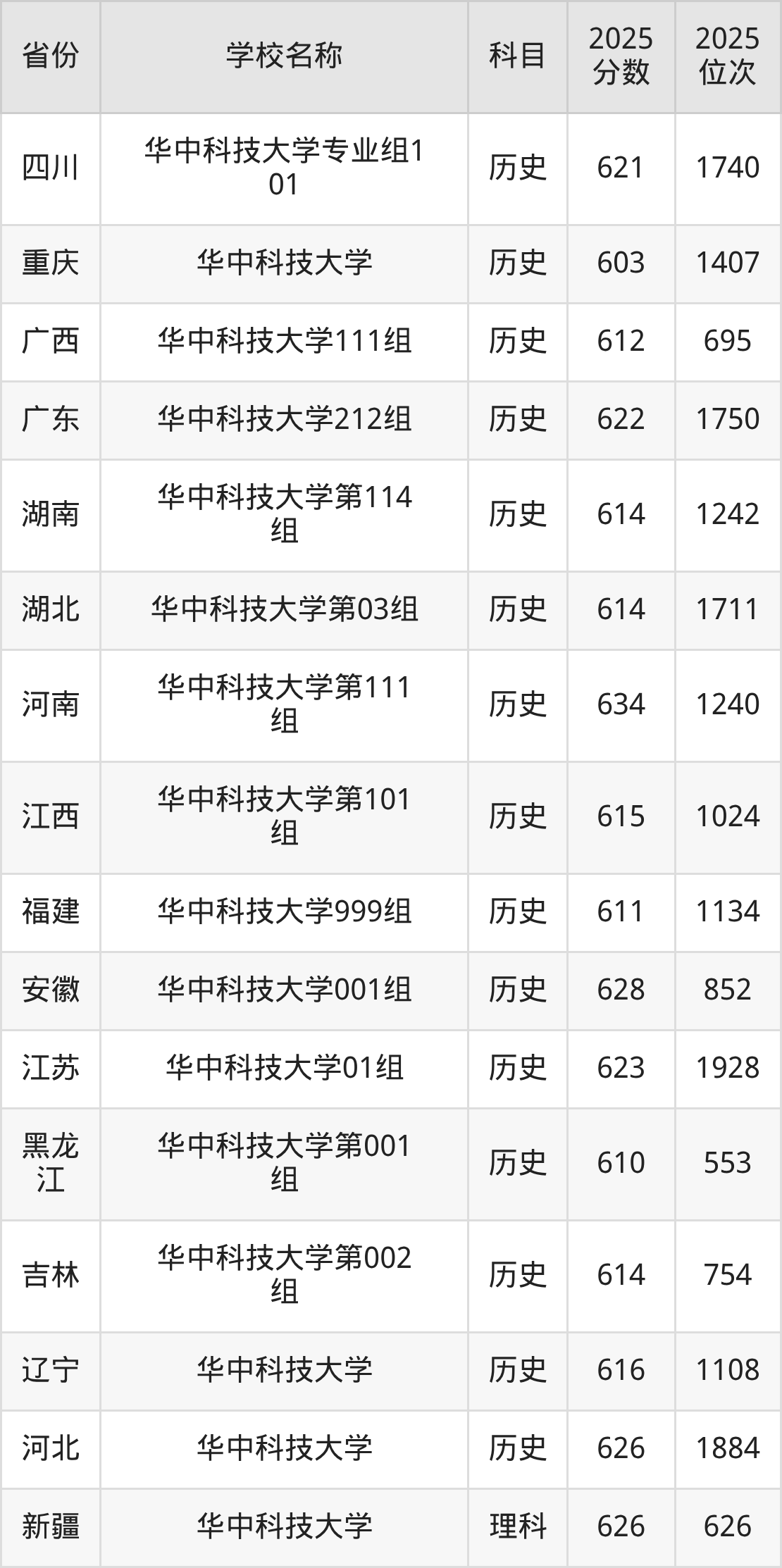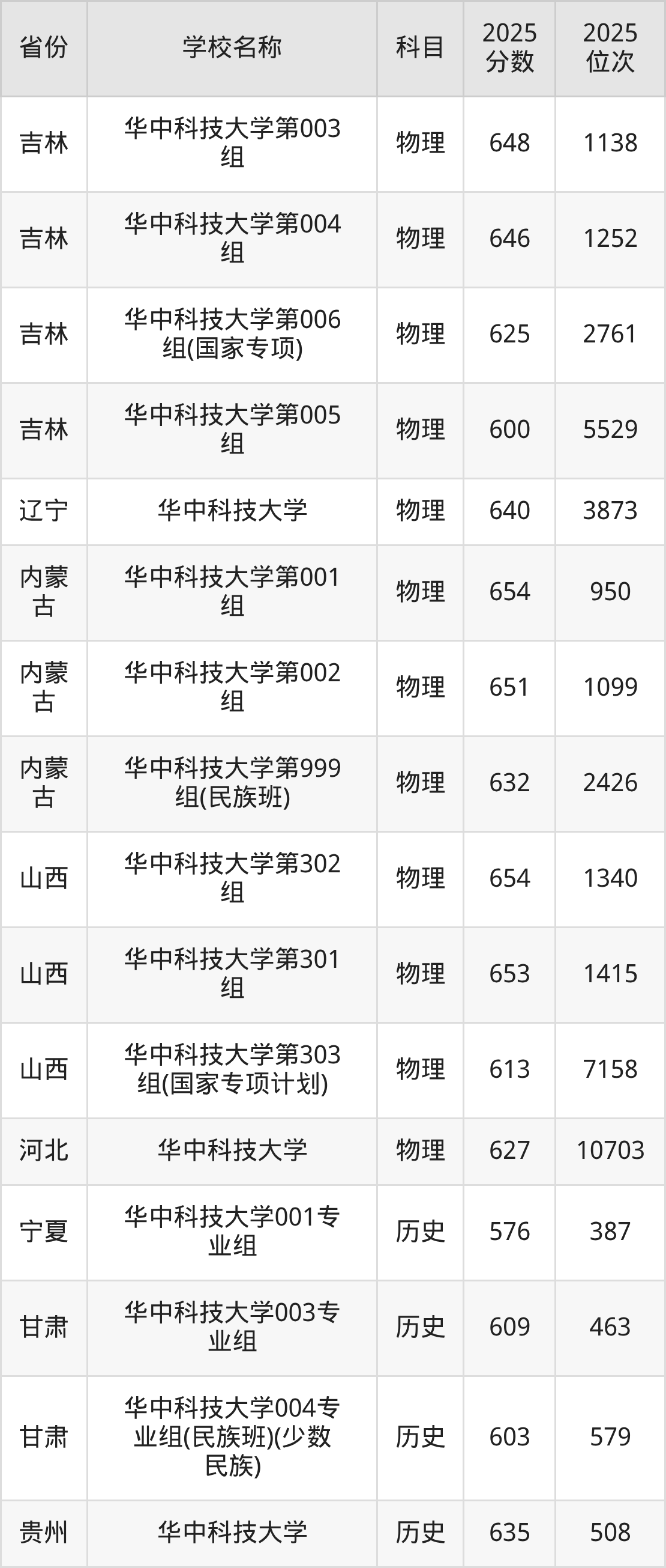 华中科技大学2025年有1个专业组面向湖北省内首选了历史科目的考生招生: