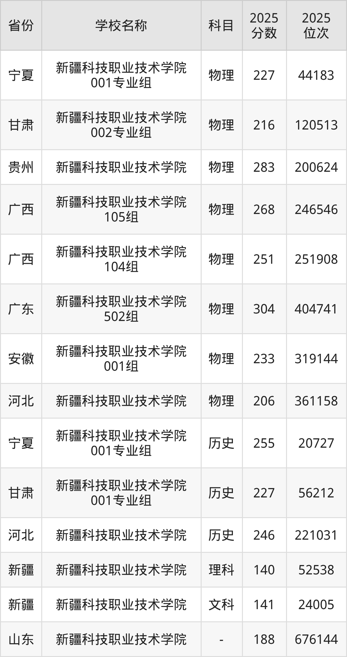一、2025新疆科技职业技术学院录取分数线