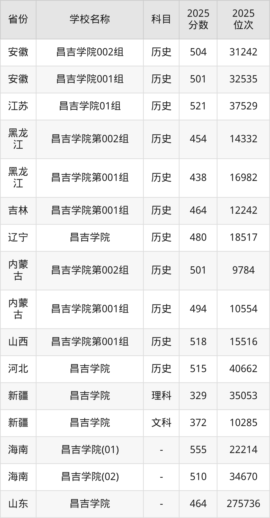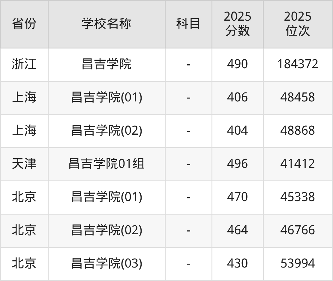 2025年昌吉学院在全国各省本科的最低录取分数线在329~555分之间。海南高考生最低555分能上昌吉学院、江苏物理类高考生最低507分能上昌吉学院……下文将展示昌吉学院在全国27个高考省份中的本科最低投档录取分汇总!