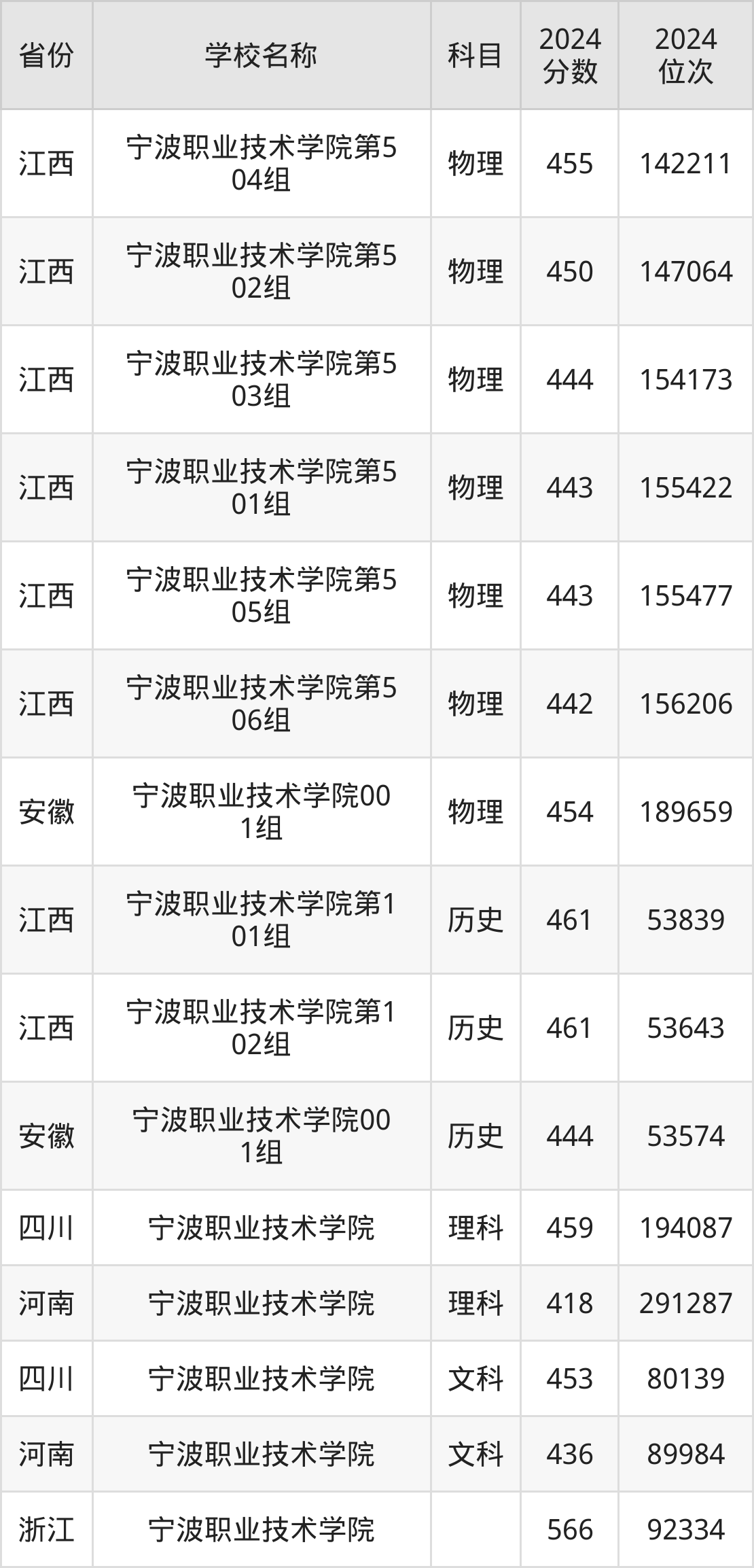 2024年宁波职业技术学院在全国各省专科的最低录取分数线在418~566分之间。浙江高考生最低566分能上宁波职业技术学院、四川理科高考生最低459分能上宁波职业技术学院……下文将展示宁波职业技术学院在全国5个高考省份中的专科最低投档录取分汇总!