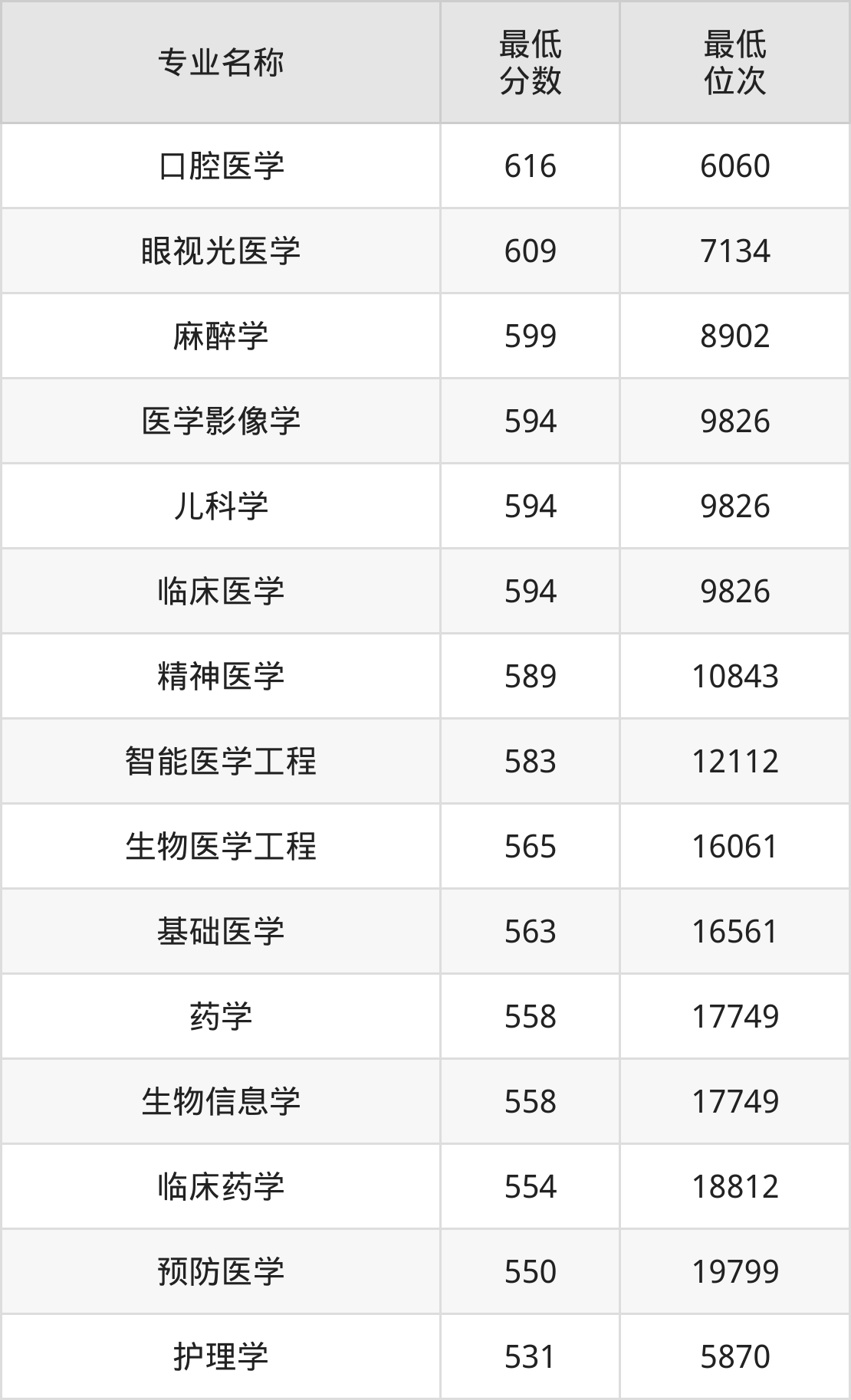 | 湖北 | 历史本科批 | 第01组 (护理类) | 559/554/538 |