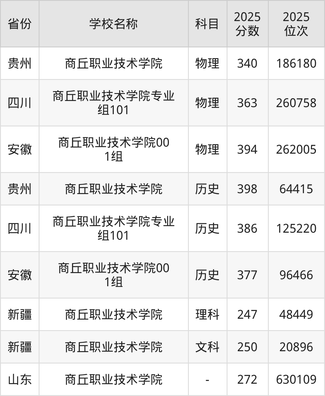 2025年商丘职业技术学院在全国各省专科的最低录取分数线在247~398分之间。安徽物理类高考生最低394分能上商丘职业技术学院、四川物理类高考生最低363分能上商丘职业技术学院……下文将展示商丘职业技术学院在全国5个高考省份中的专科最低投档录取分汇总!