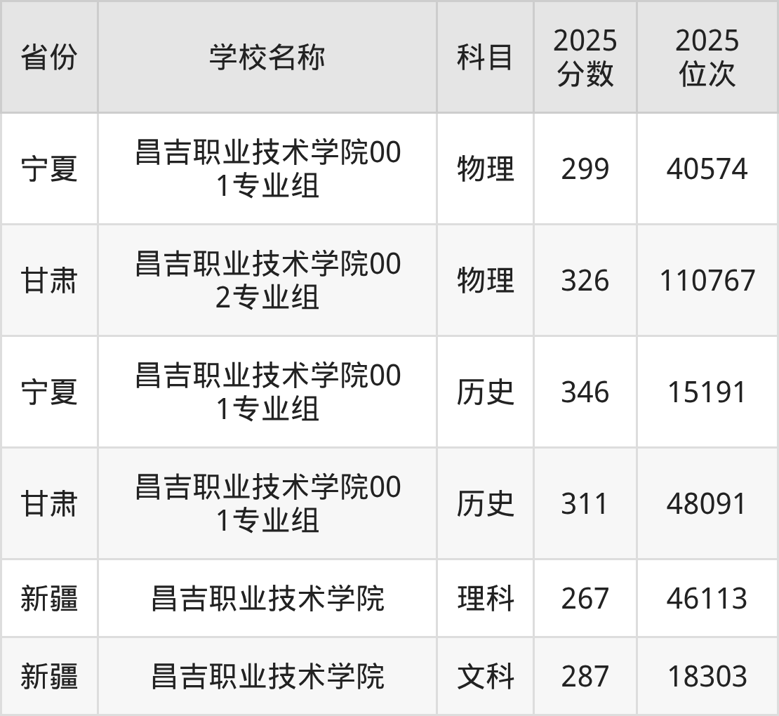 一、2025昌吉职业技术学院录取分数线