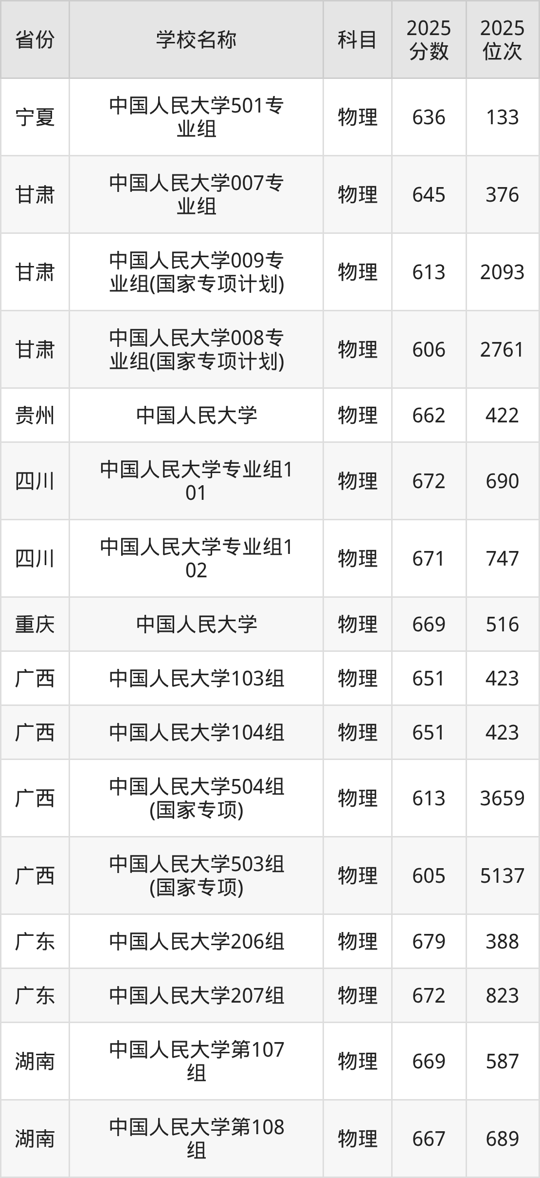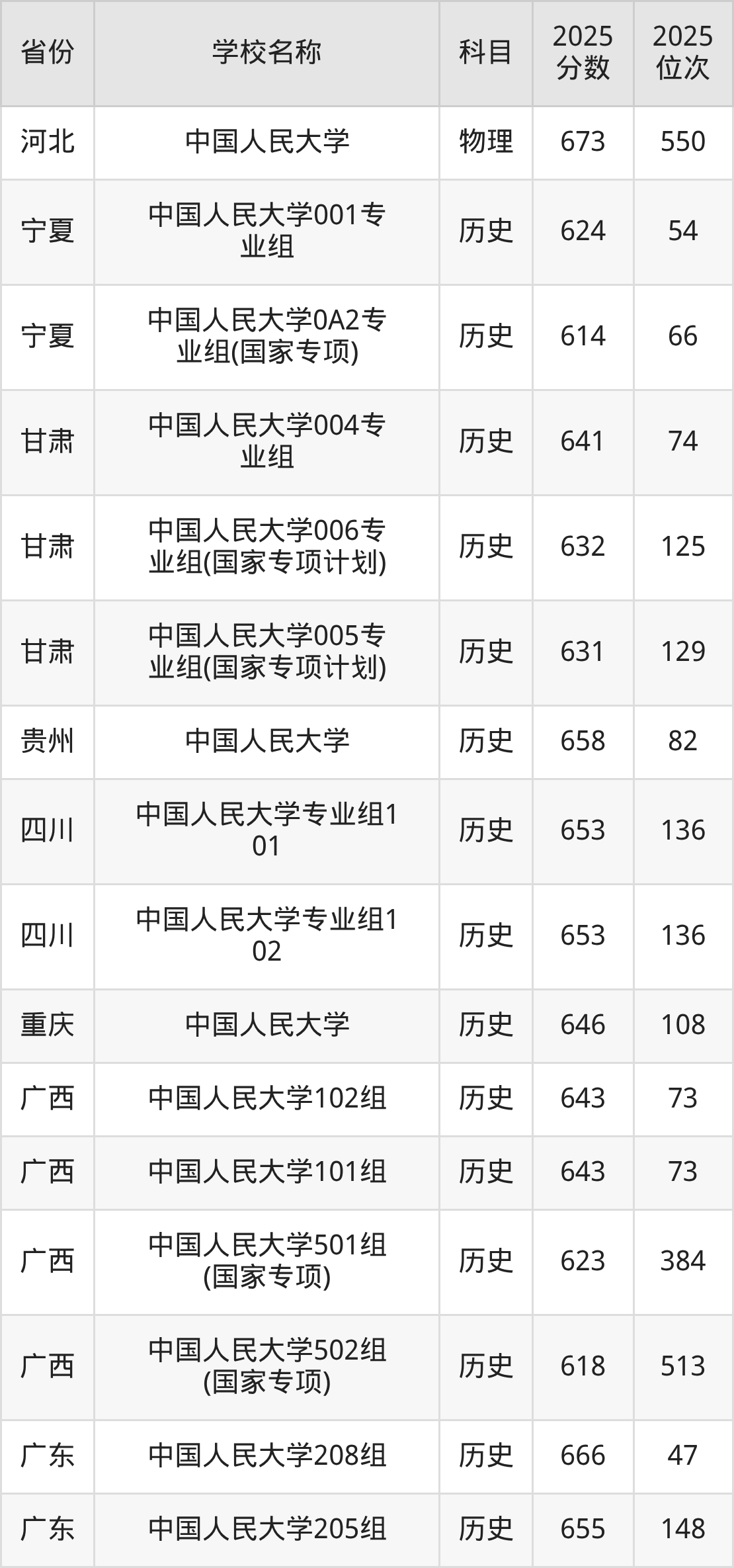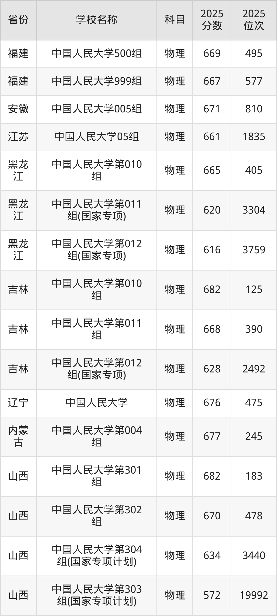 二、中国人民大学各专业录取分数线