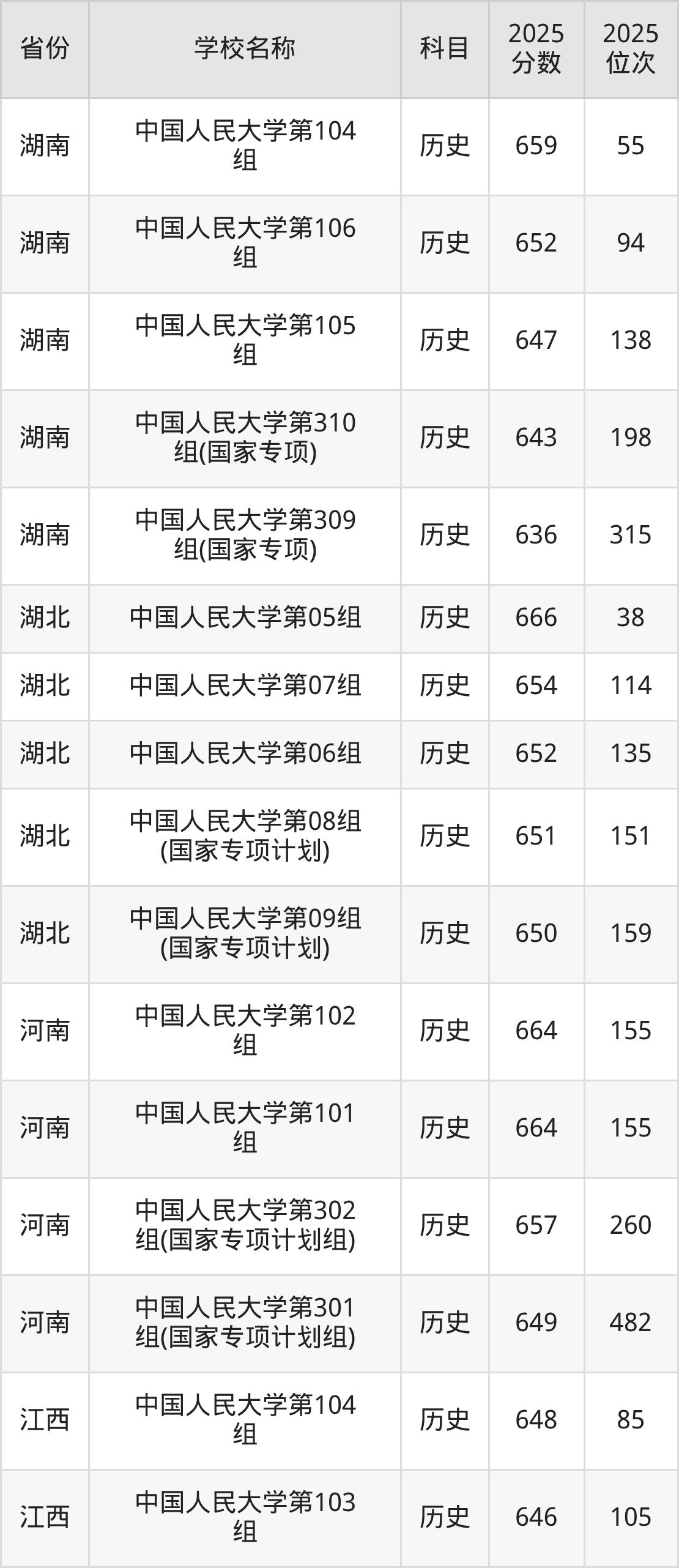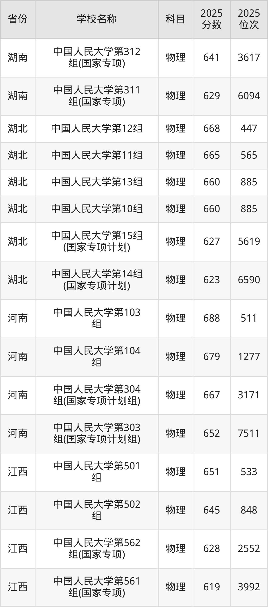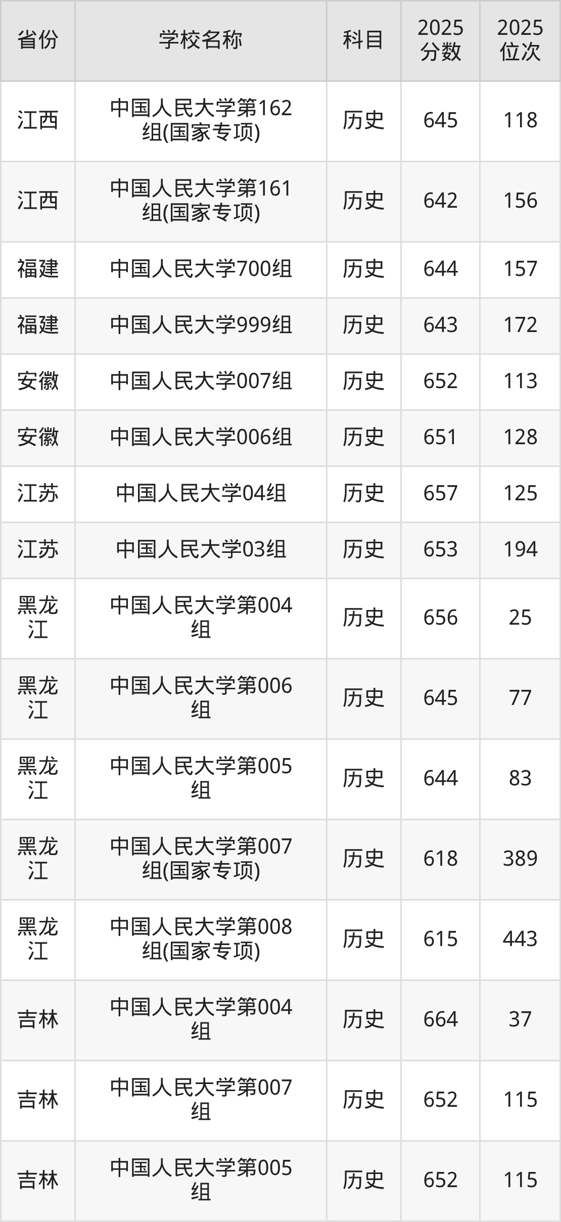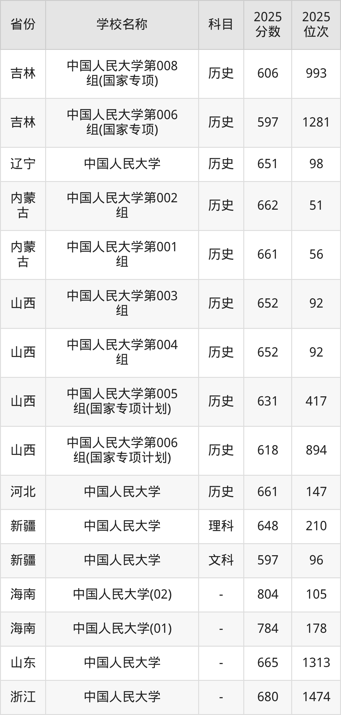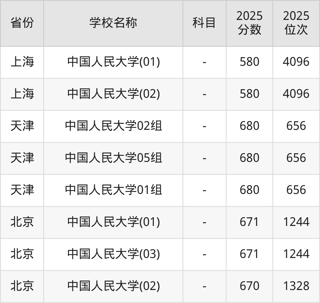 一、2025中国人民大学录取分数线