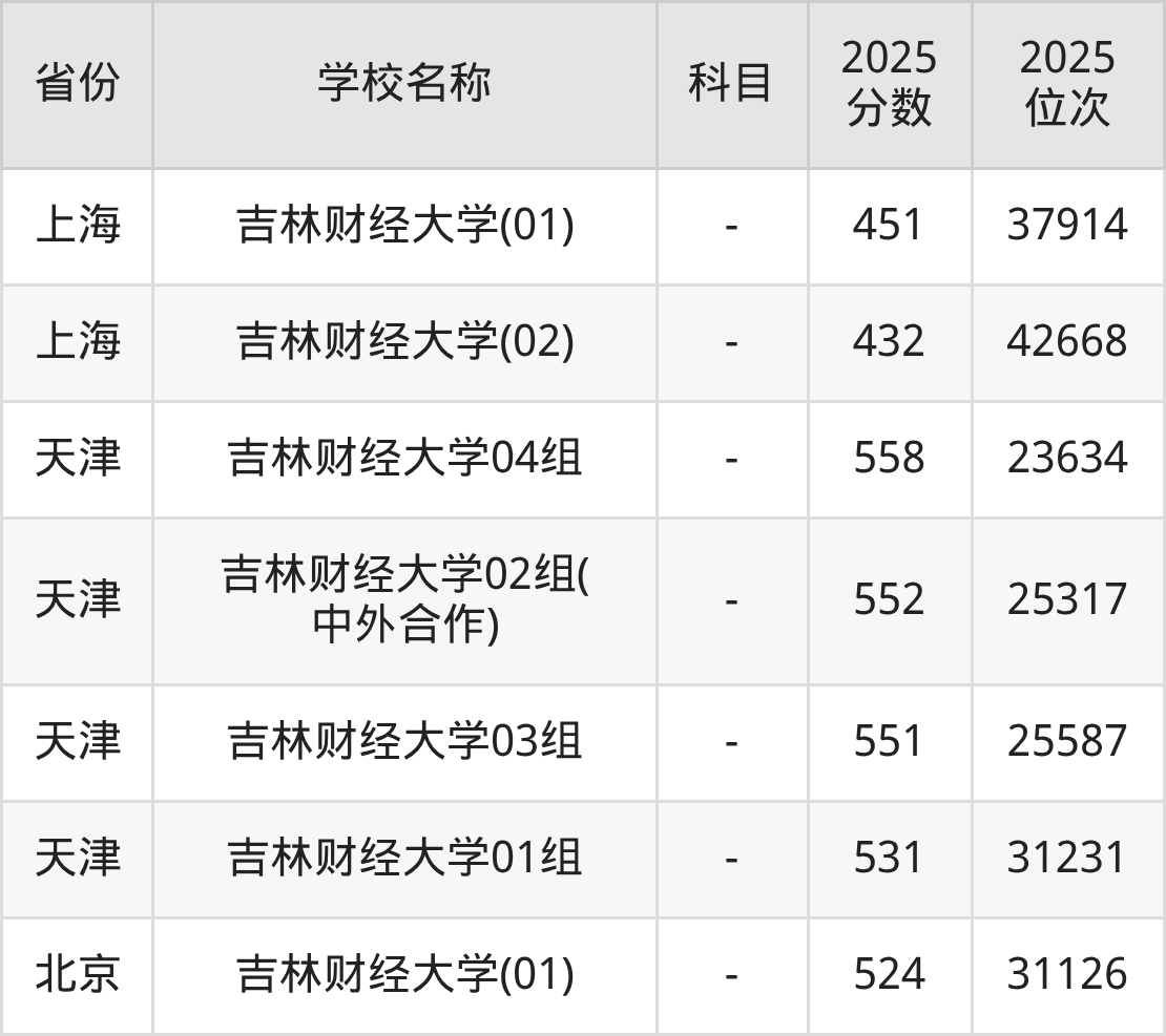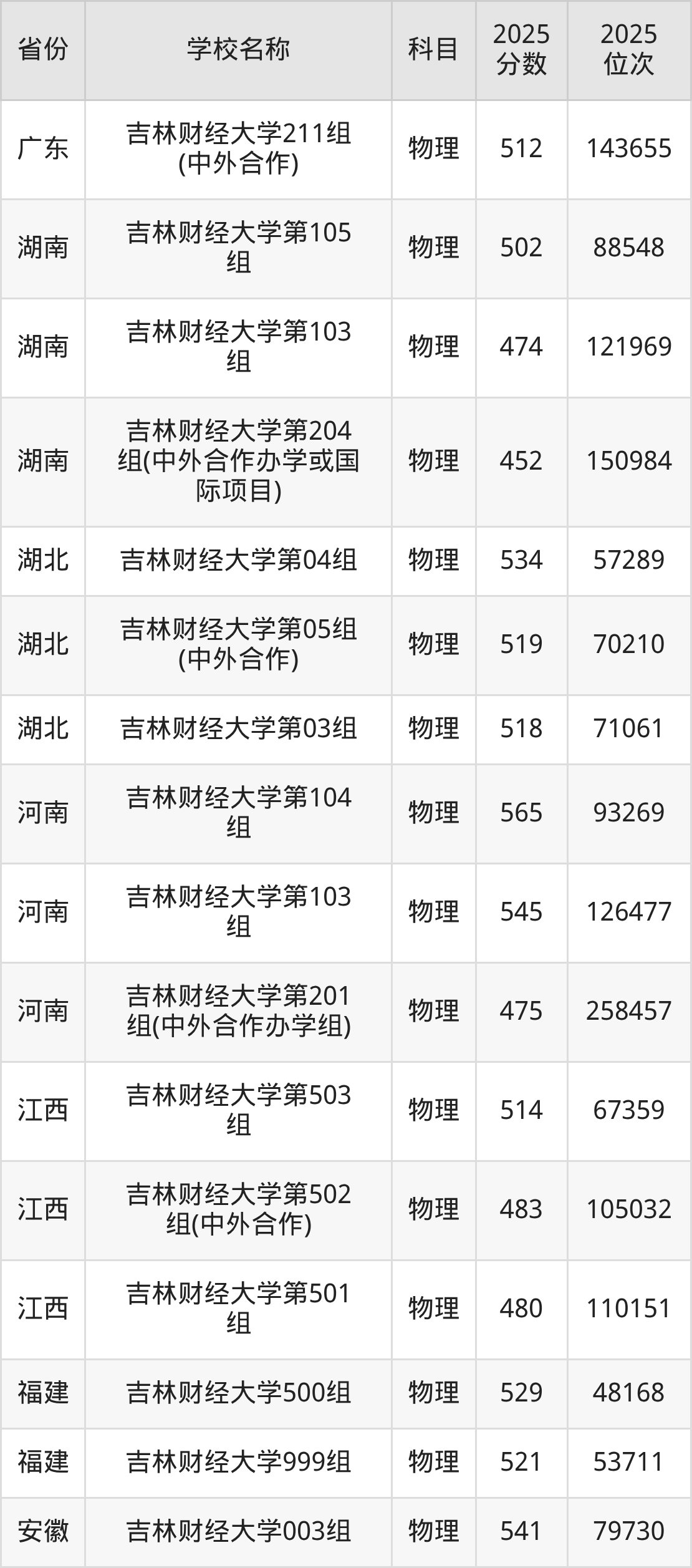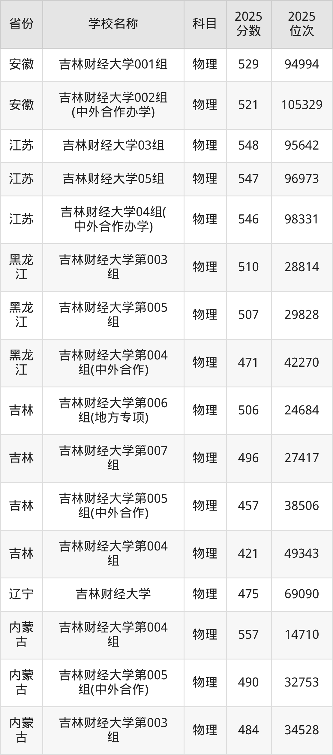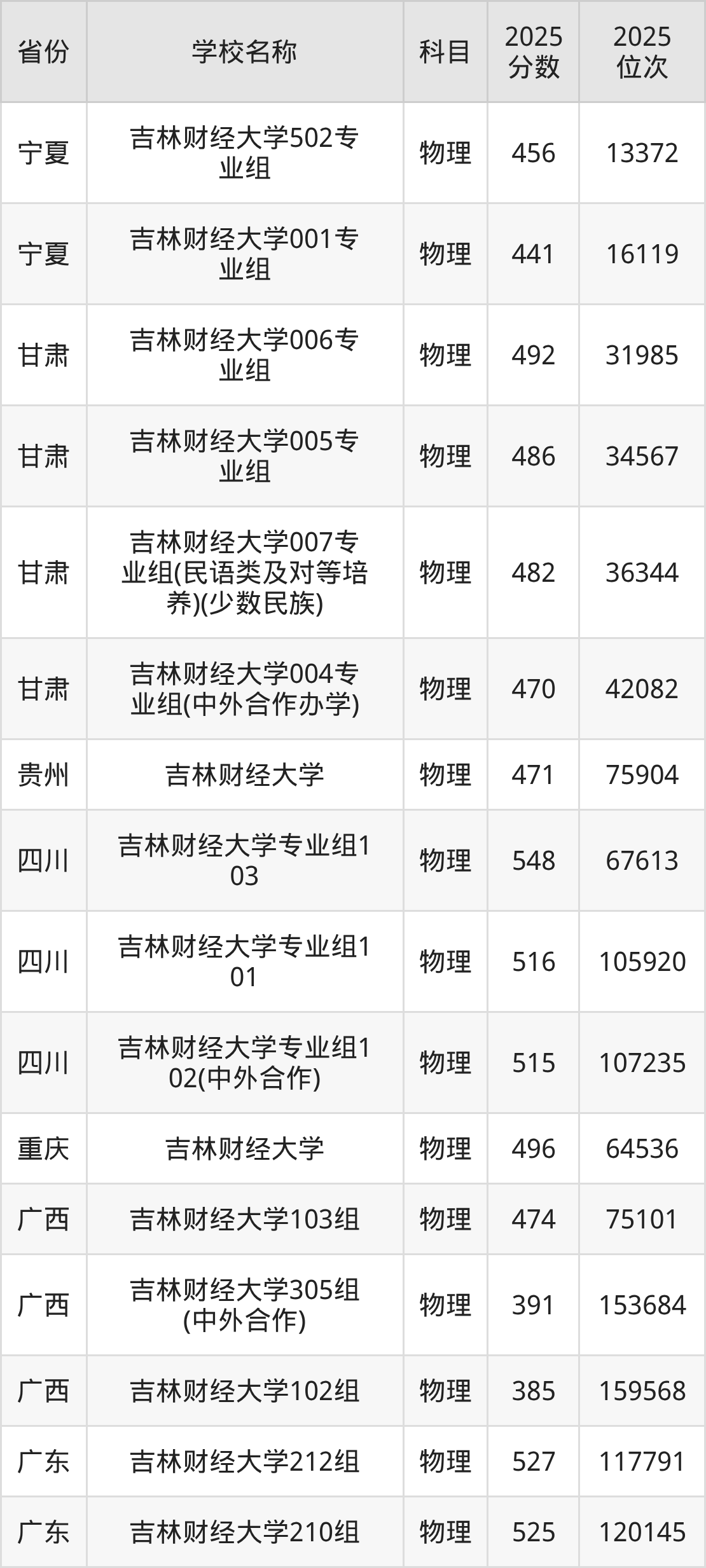 吉林财经大学2025年有4个专业组面向吉林省内首选了物理科目的考生招生: