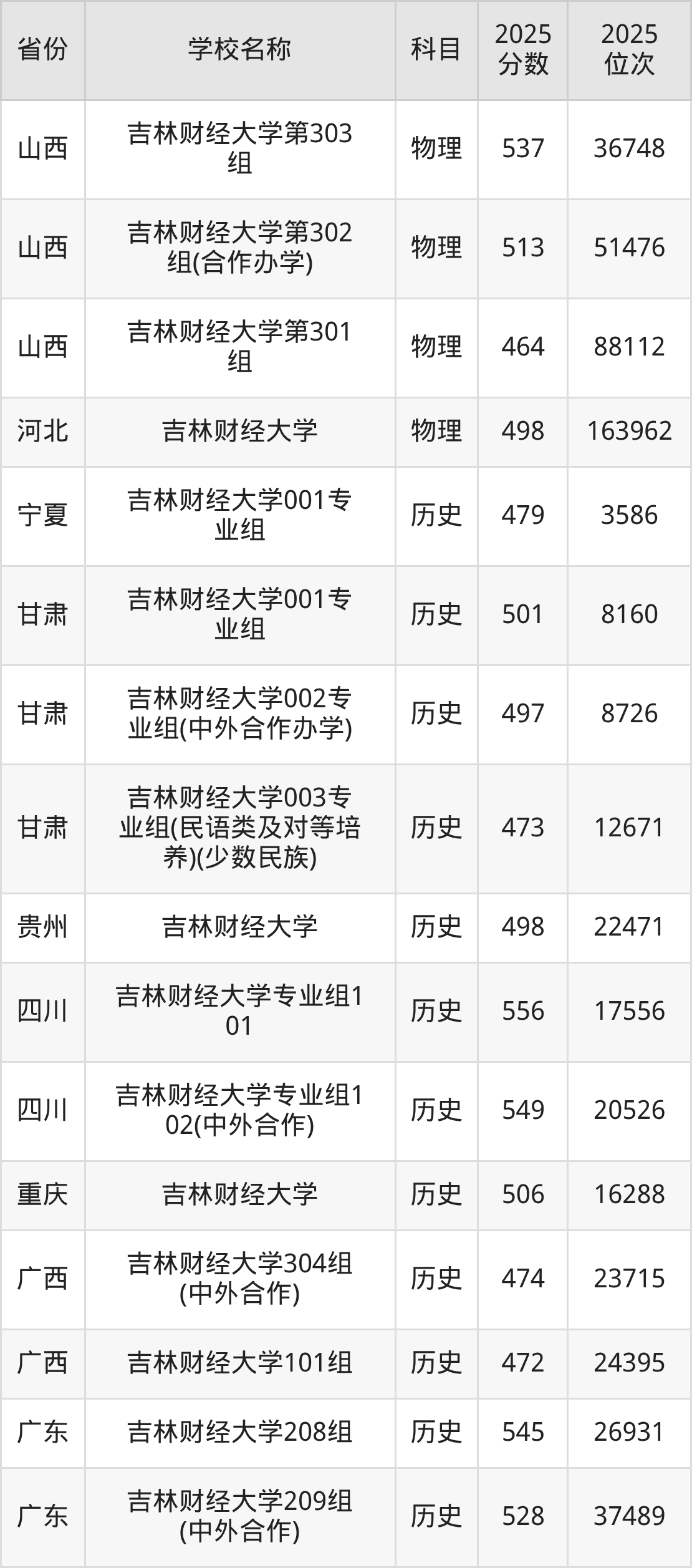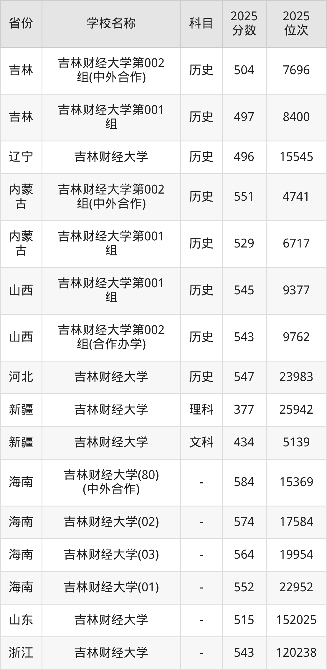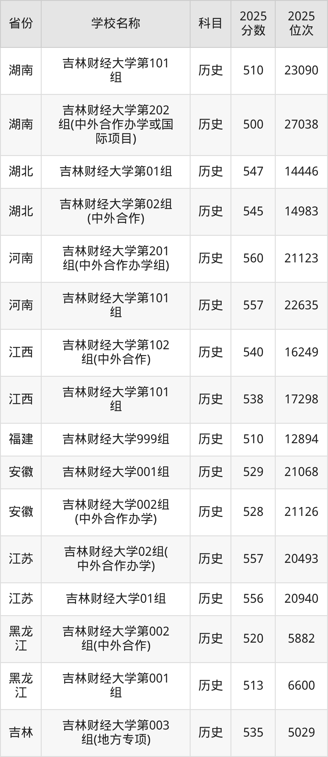 吉林财经大学2025年有3个专业组面向吉林省内首选了历史科目的考生招生:
