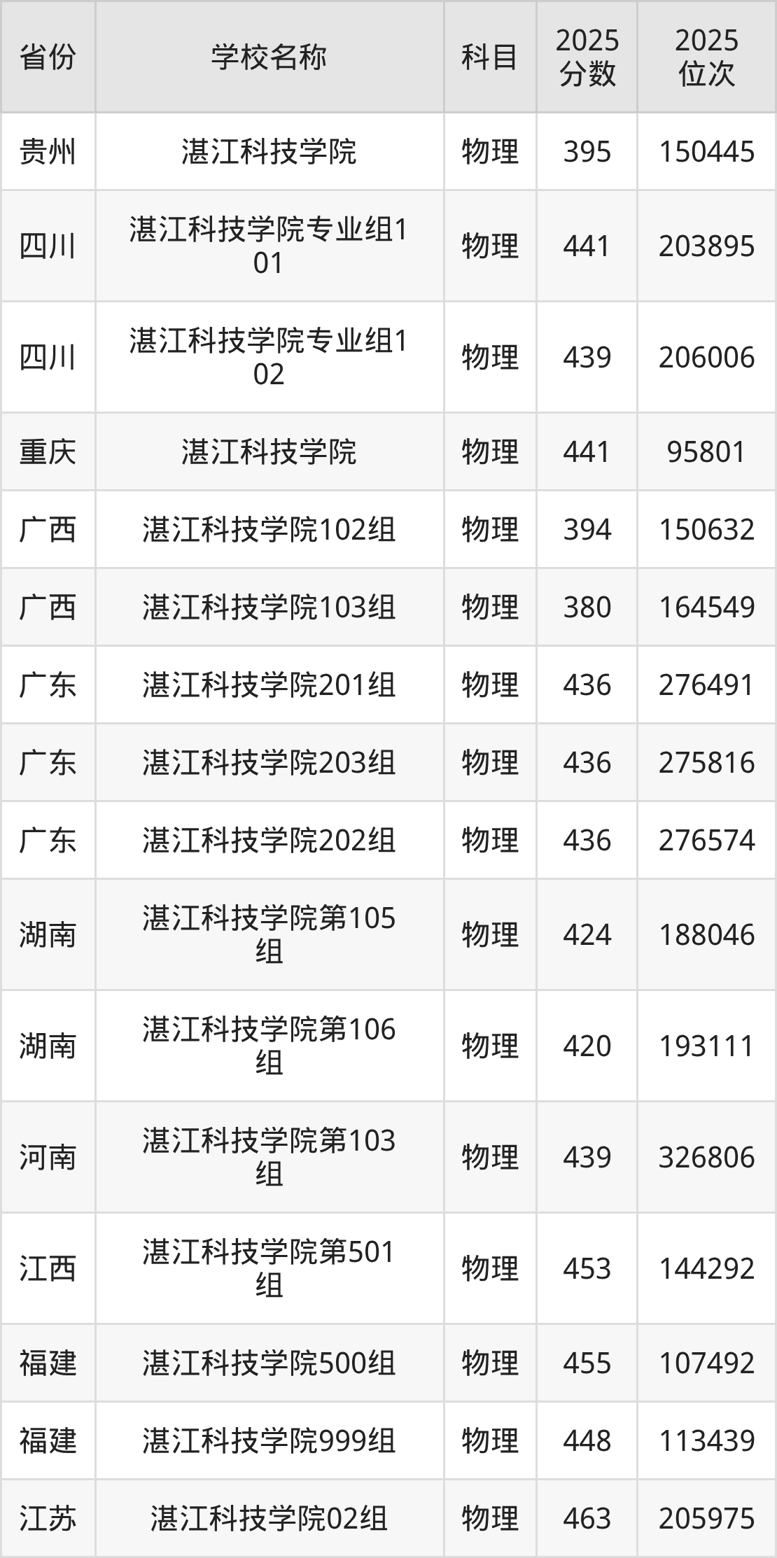 一、2025湛江科技学院录取分数线