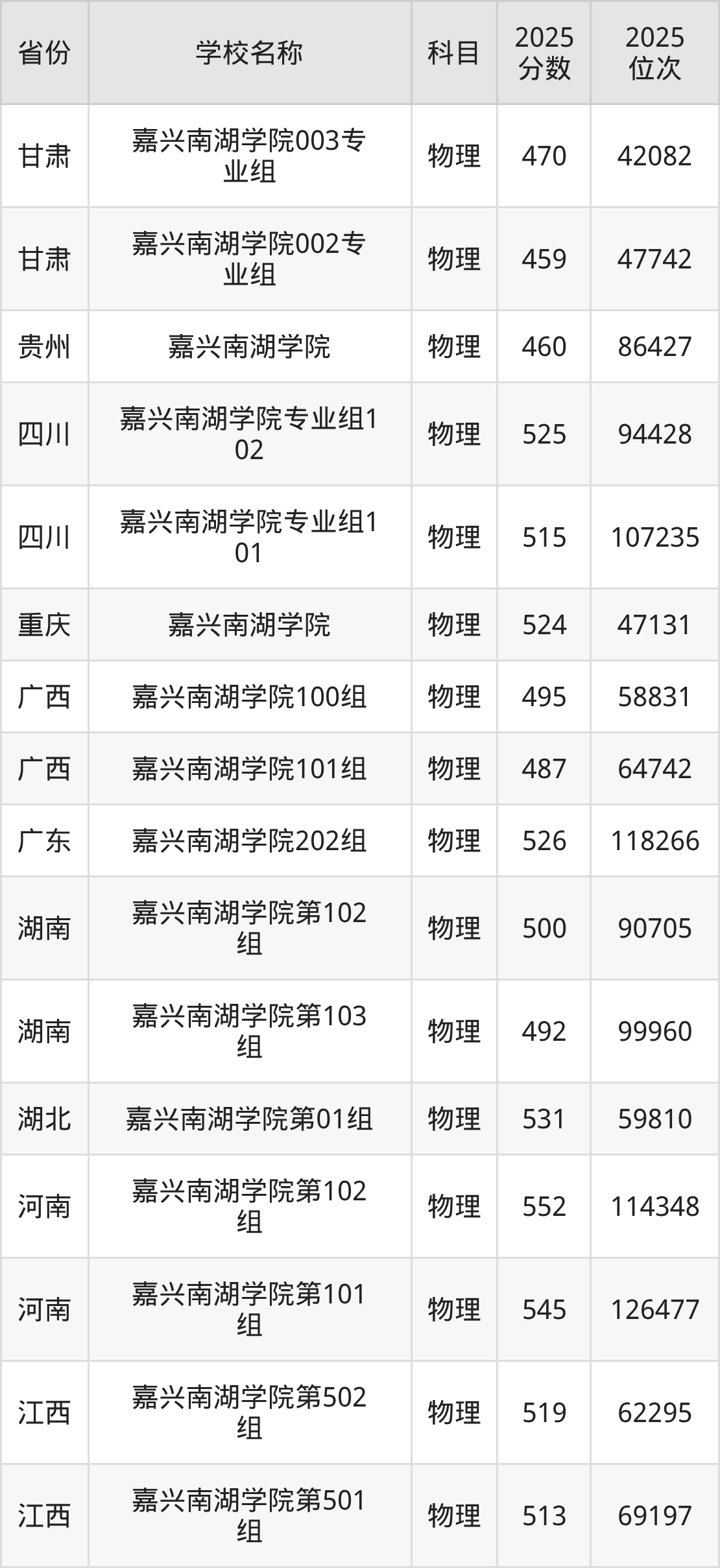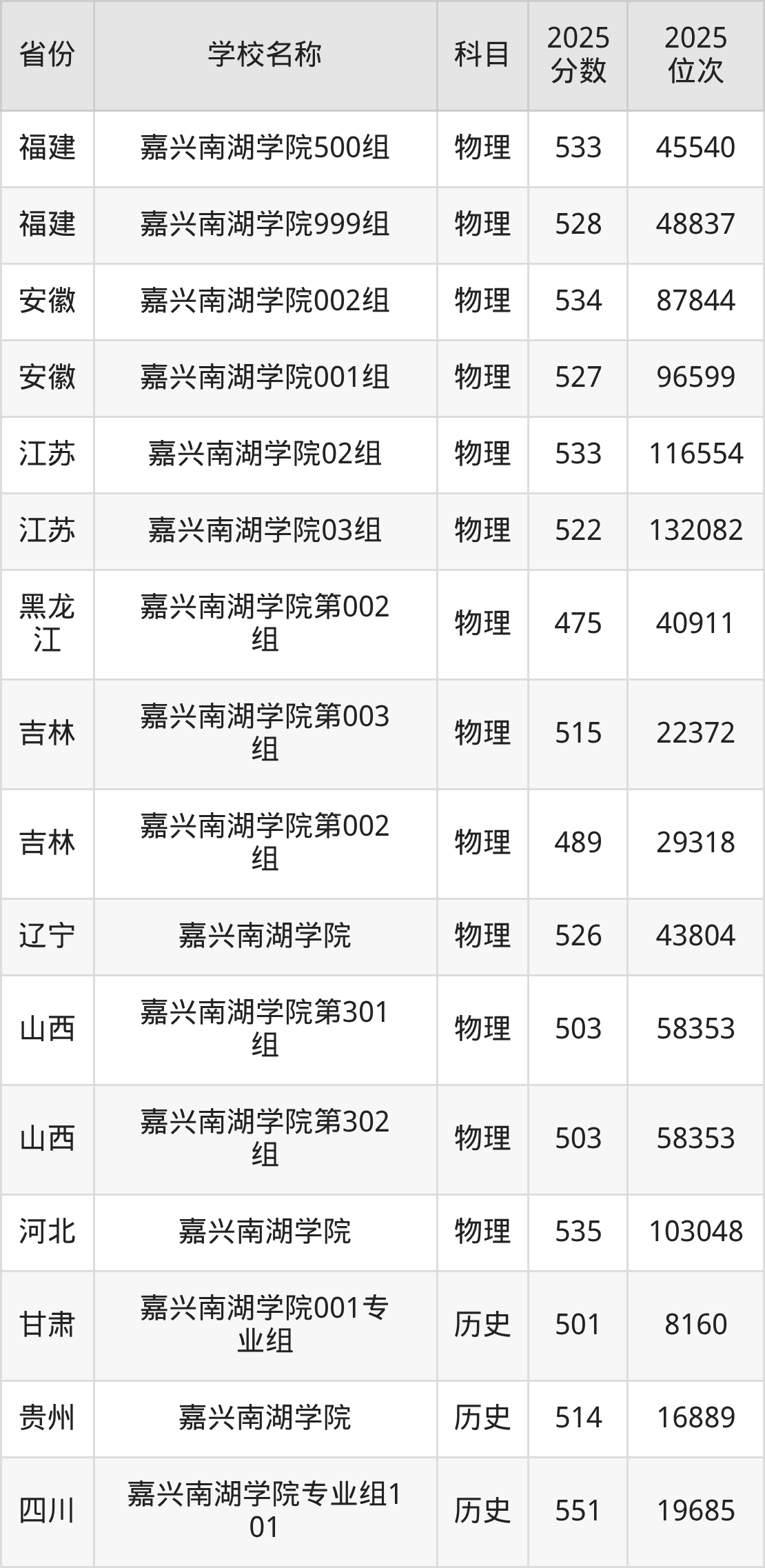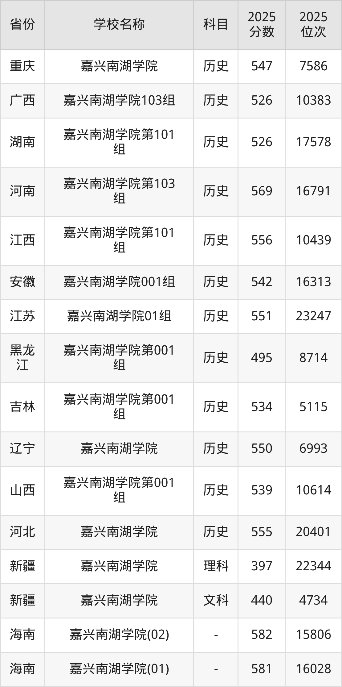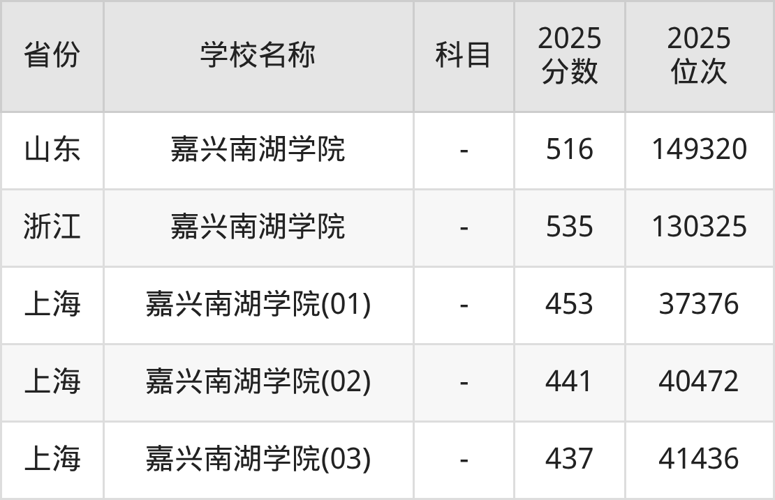 一、2025嘉兴南湖学院录取分数线