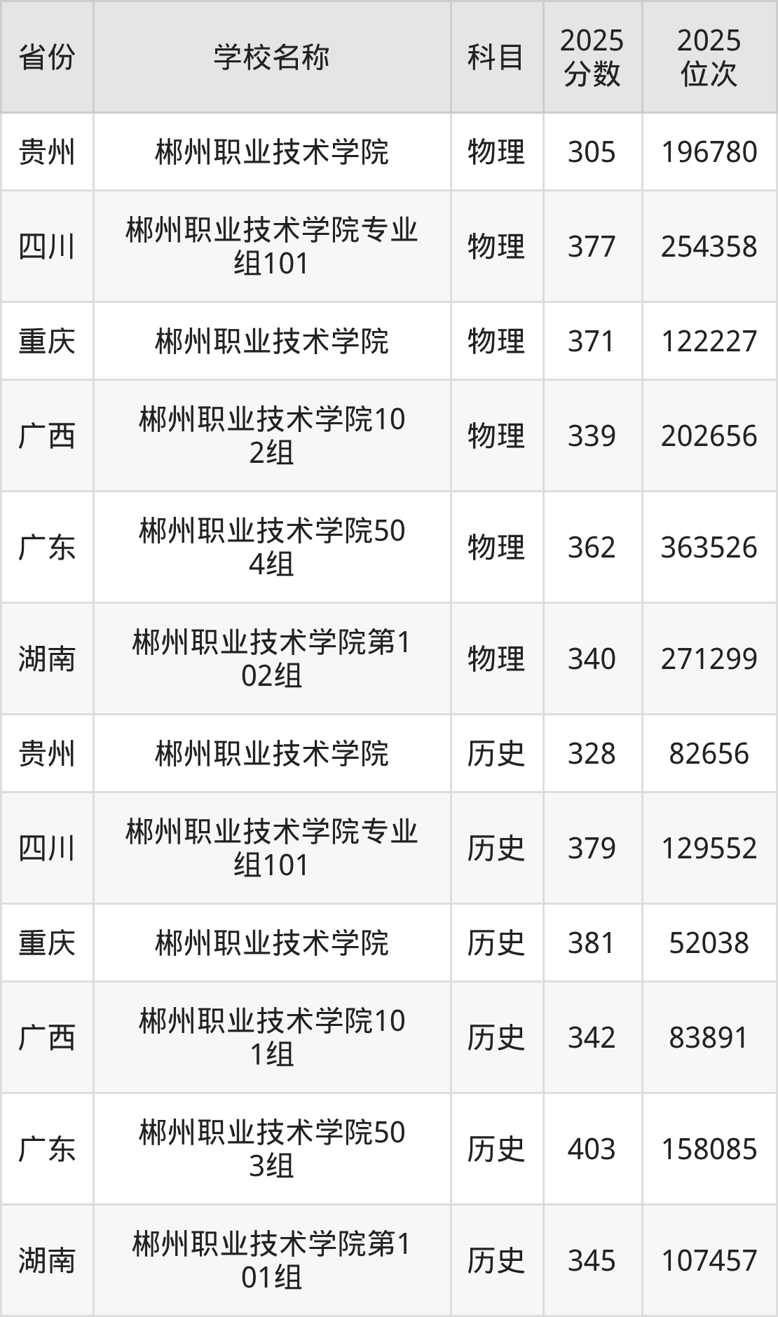一、2025郴州职业技术学院录取分数线