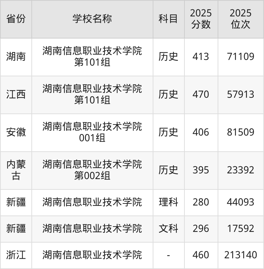 2025年湖南信息职业技术学院在全国各省专科的最低录取分数线在280~470分之间。浙江高考生最低460分能上湖南信息职业技术学院、广东物理类高考生最低449分能上湖南信息职业技术学院……下文将展示湖南信息职业技术学院在全国13个高考省份中的专科最低投档录取分汇总!