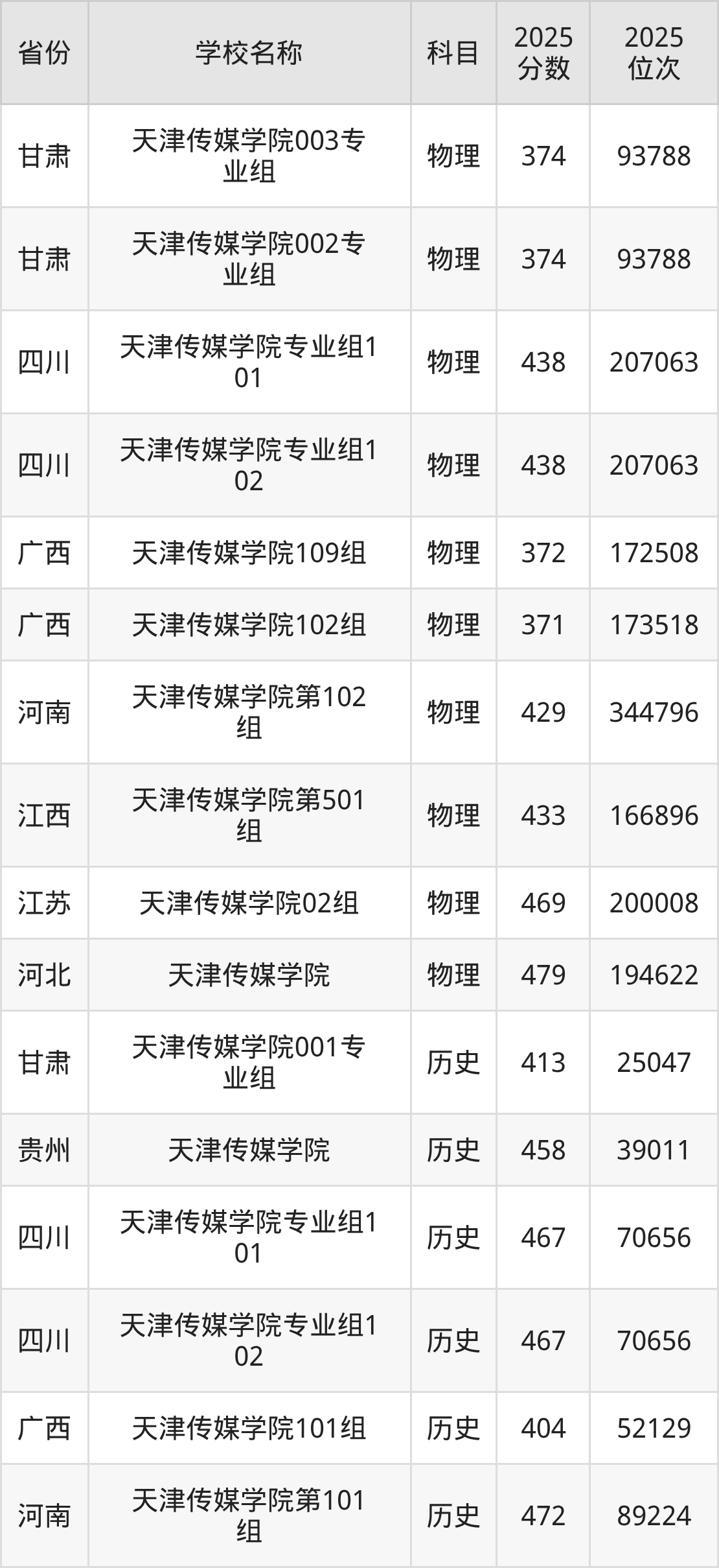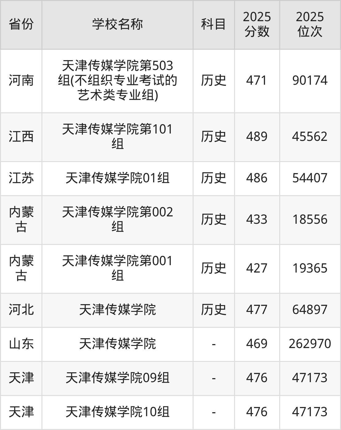 二、天津传媒学院各专业录取分数线