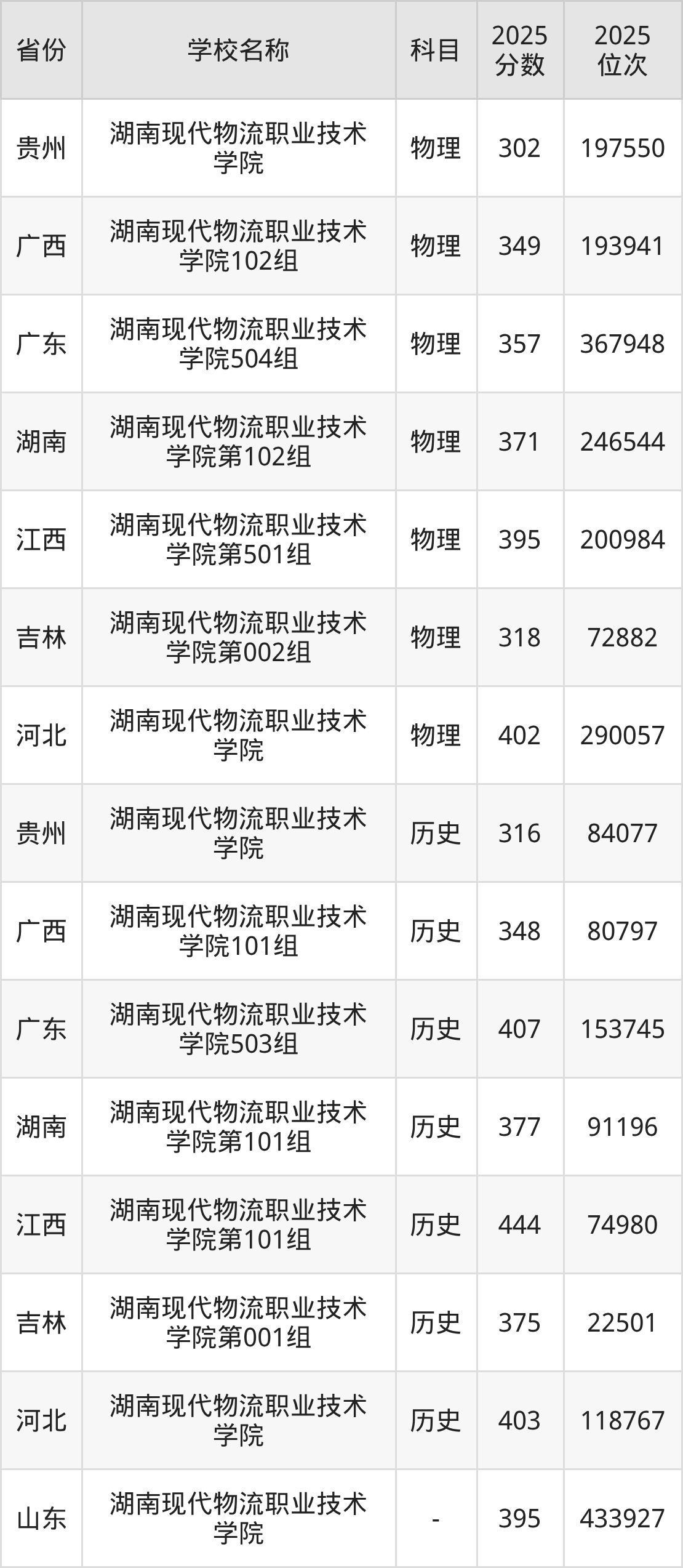 一、2025湖南现代物流职业技术学院录取分数线