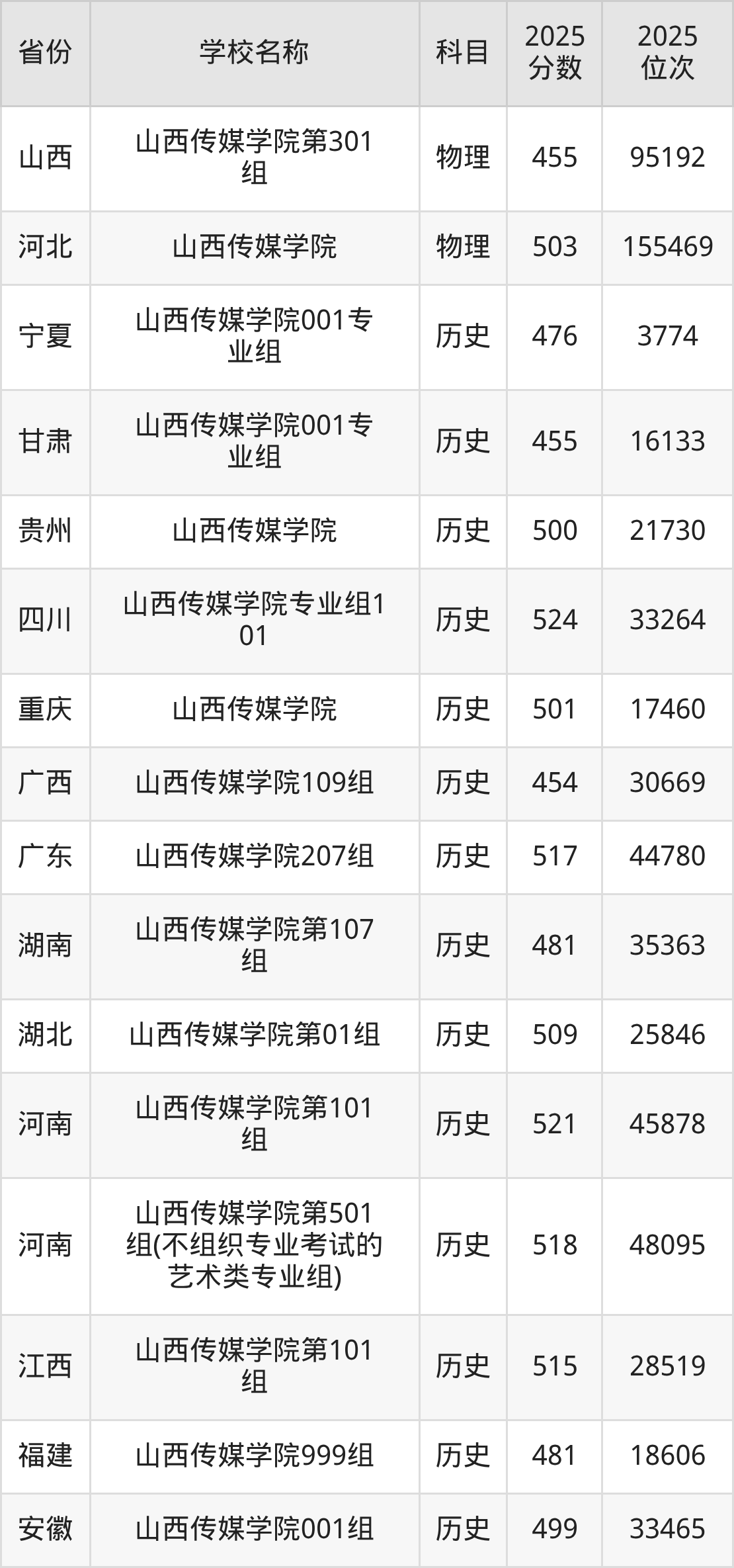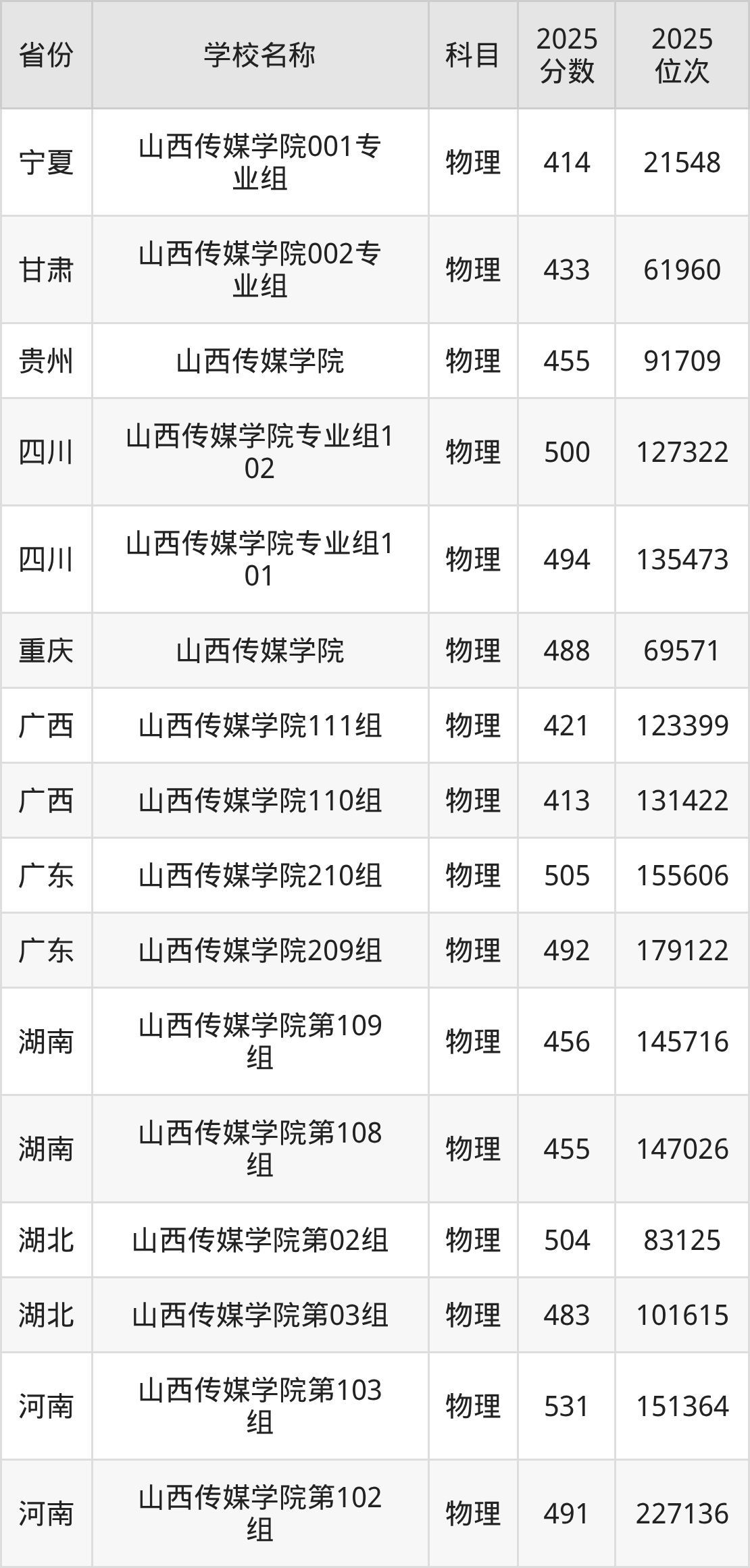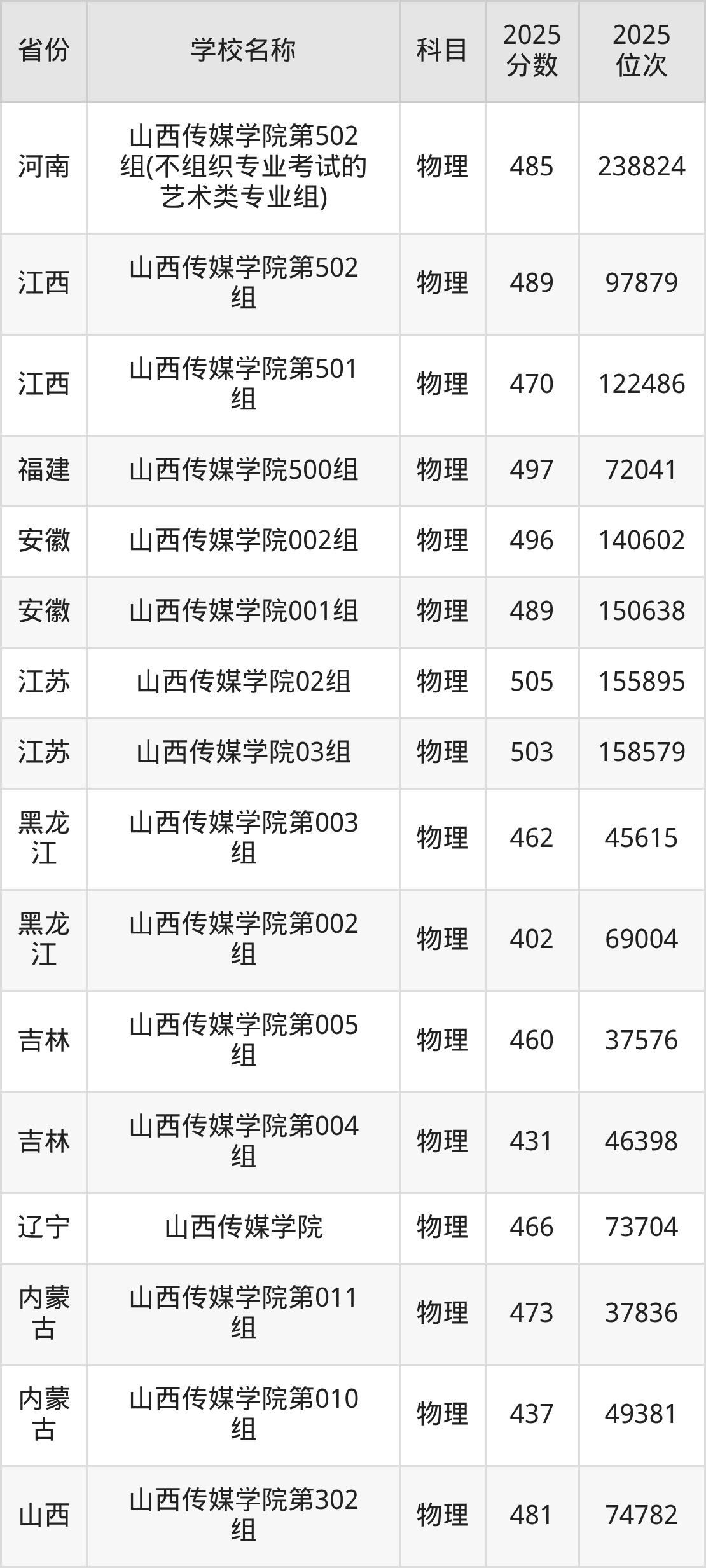 山西传媒学院2025年有2个专业组面向山西省内首选了物理科目的考生招生: