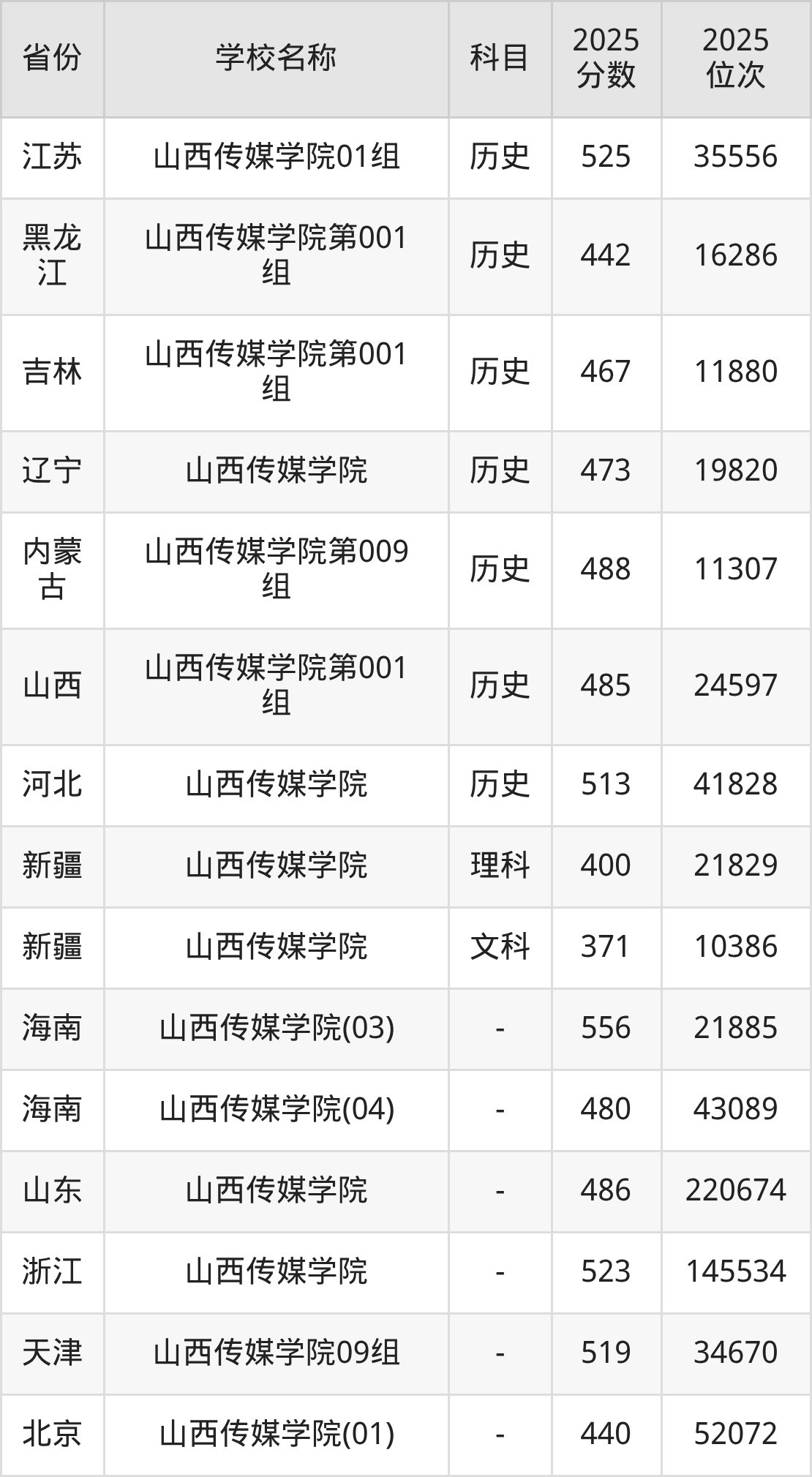 再看山西高考2025年本科批次线,历史类是443分、物理类是419分。通过对比发现:山西传媒学院2025年历史类最低分比本科线高42分,物理类最低分比本科线高36分。2026届山西高考生,可通过每一次模考划线,来判断自己的成绩是否有机会被山西传媒学院录取。