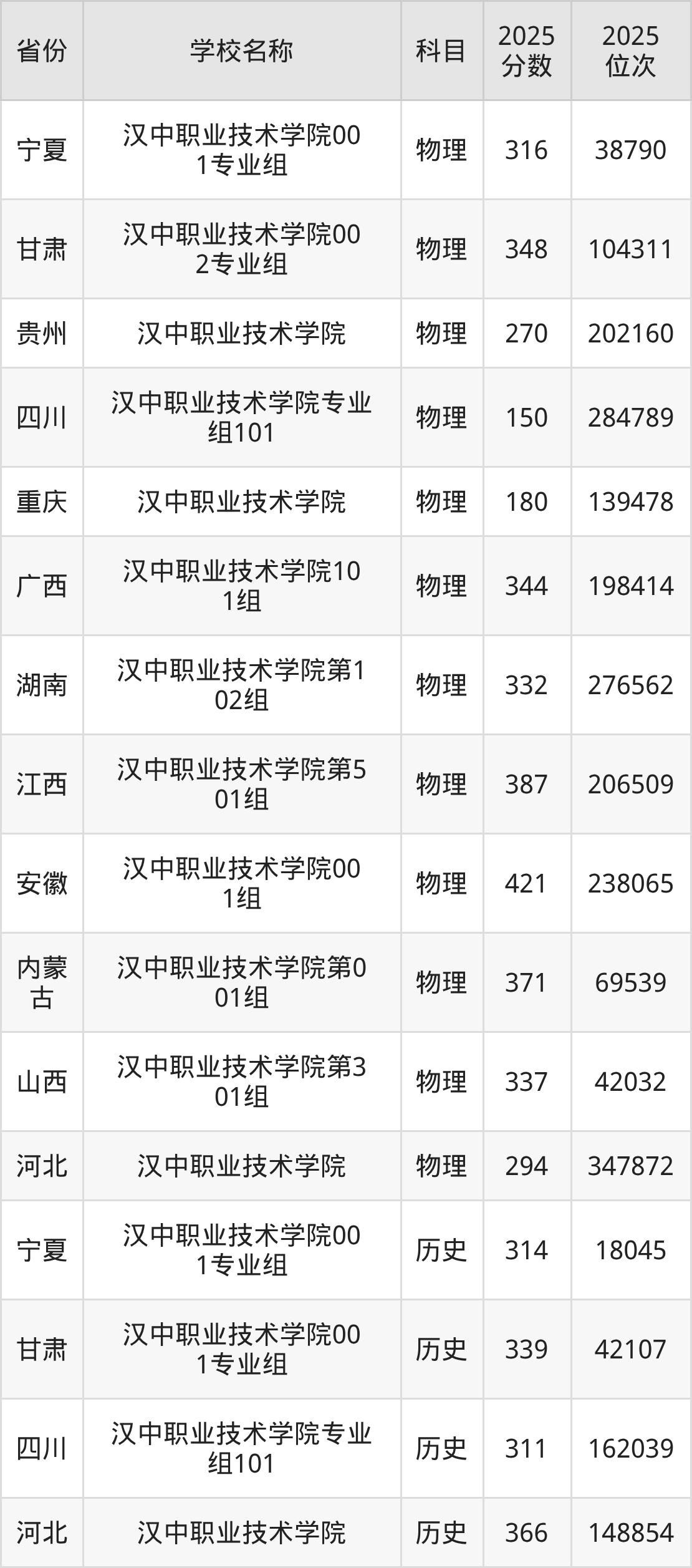 2025年汉中职业技术学院在全国各省专科的最低录取分数线在150~421分之间。安徽物理类高考生最低421分能上汉中职业技术学院、江西物理类高考生最低387分能上汉中职业技术学院……下文将展示汉中职业技术学院在全国14个高考省份中的专科最低投档录取分汇总!