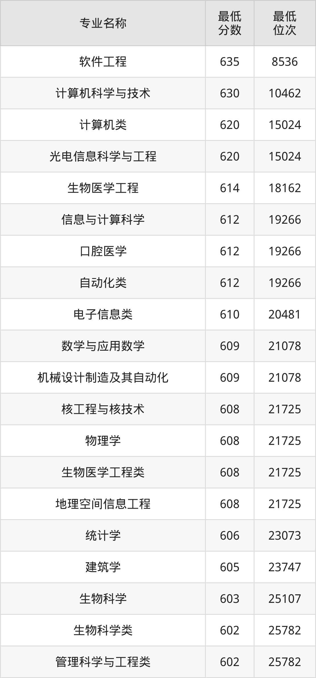 | 四川 | 理科本科一批 | —— | 618/618/604 |