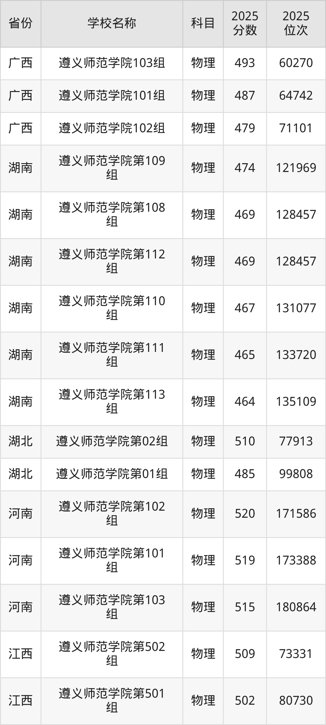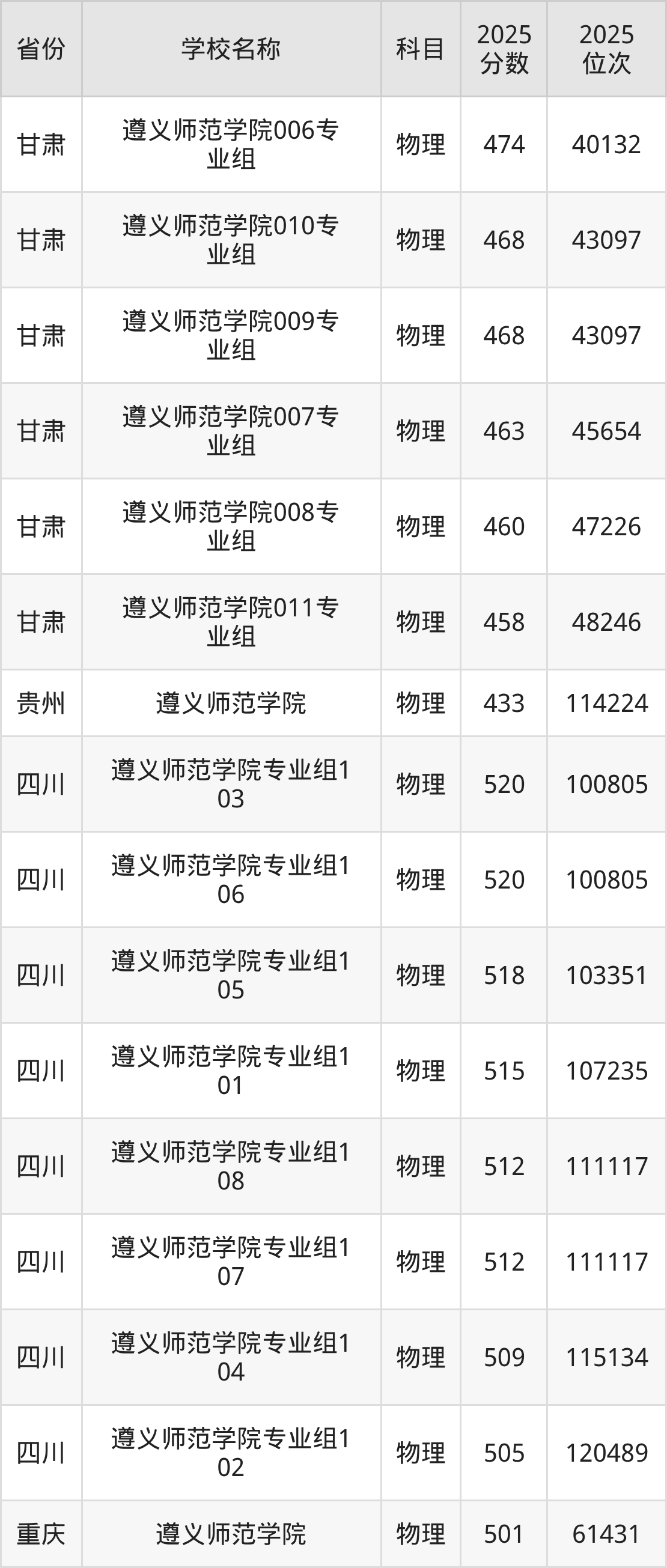 遵义师范学院2025年面向贵州省内首选了物理科目的考生招生: