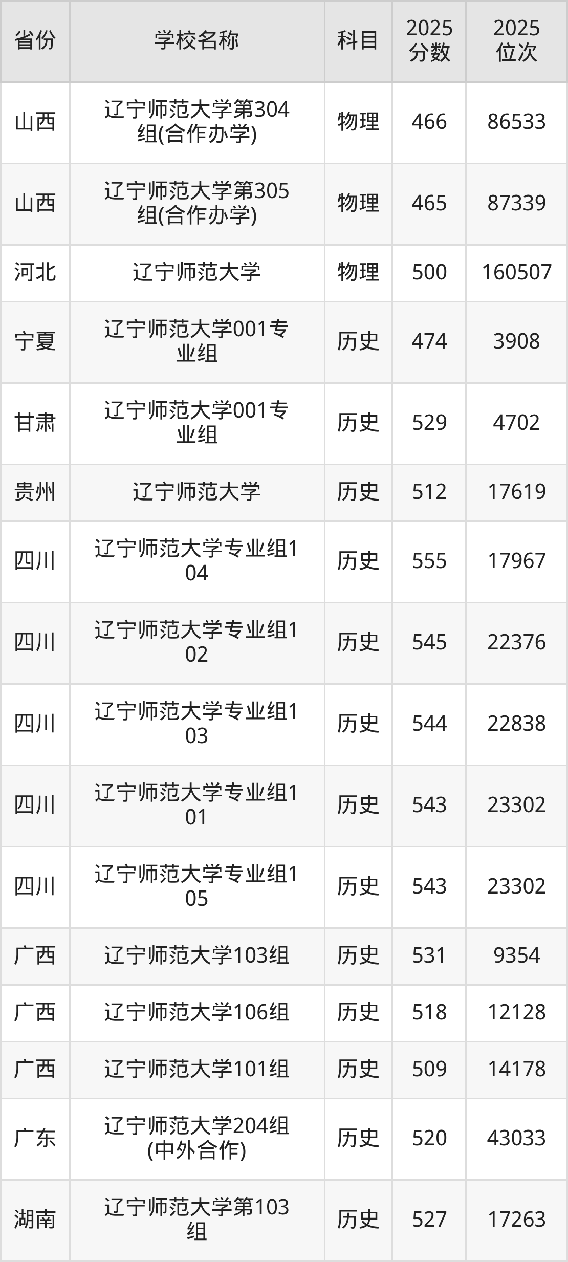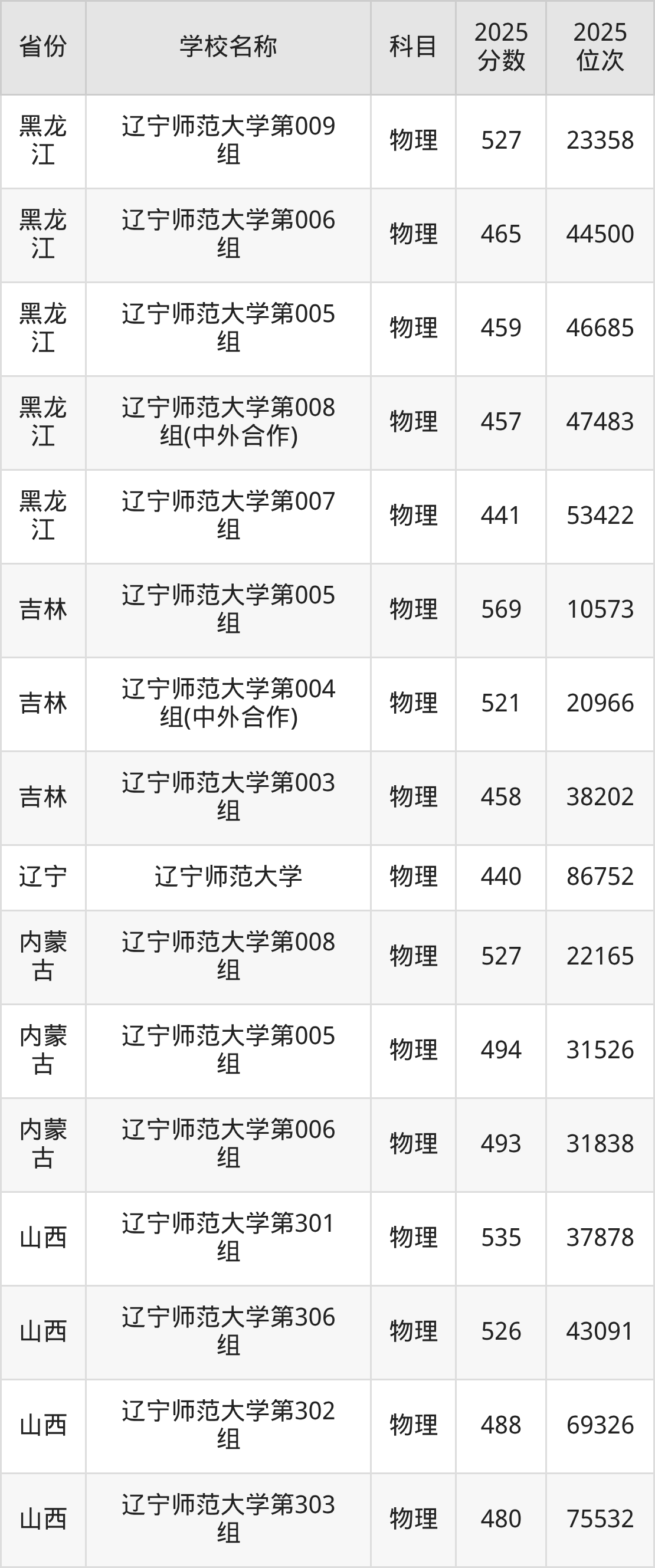 二、辽宁师范大学各专业录取分数线