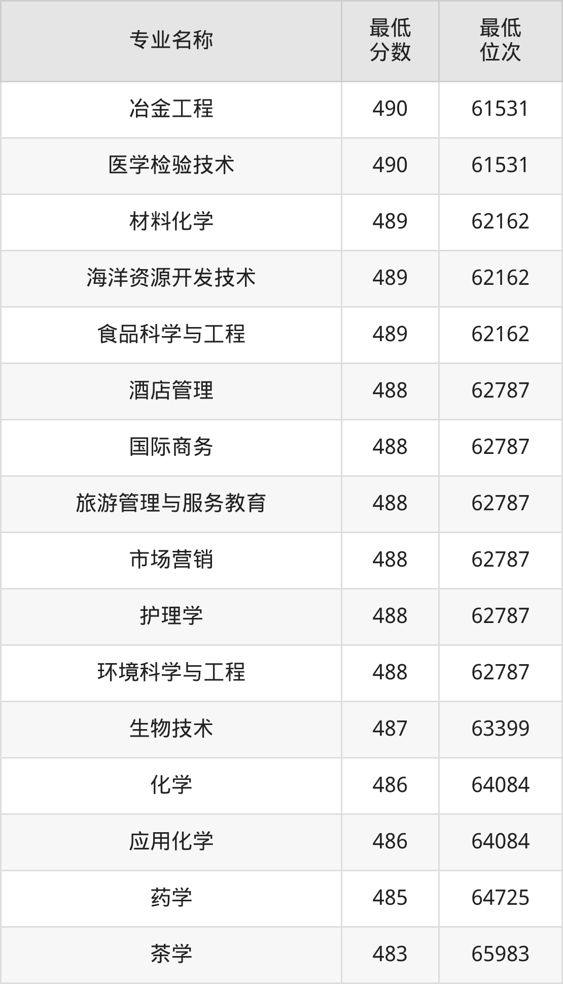 | 福建 | 物理本科批 | 专业组: 500 | 519/488/480 |