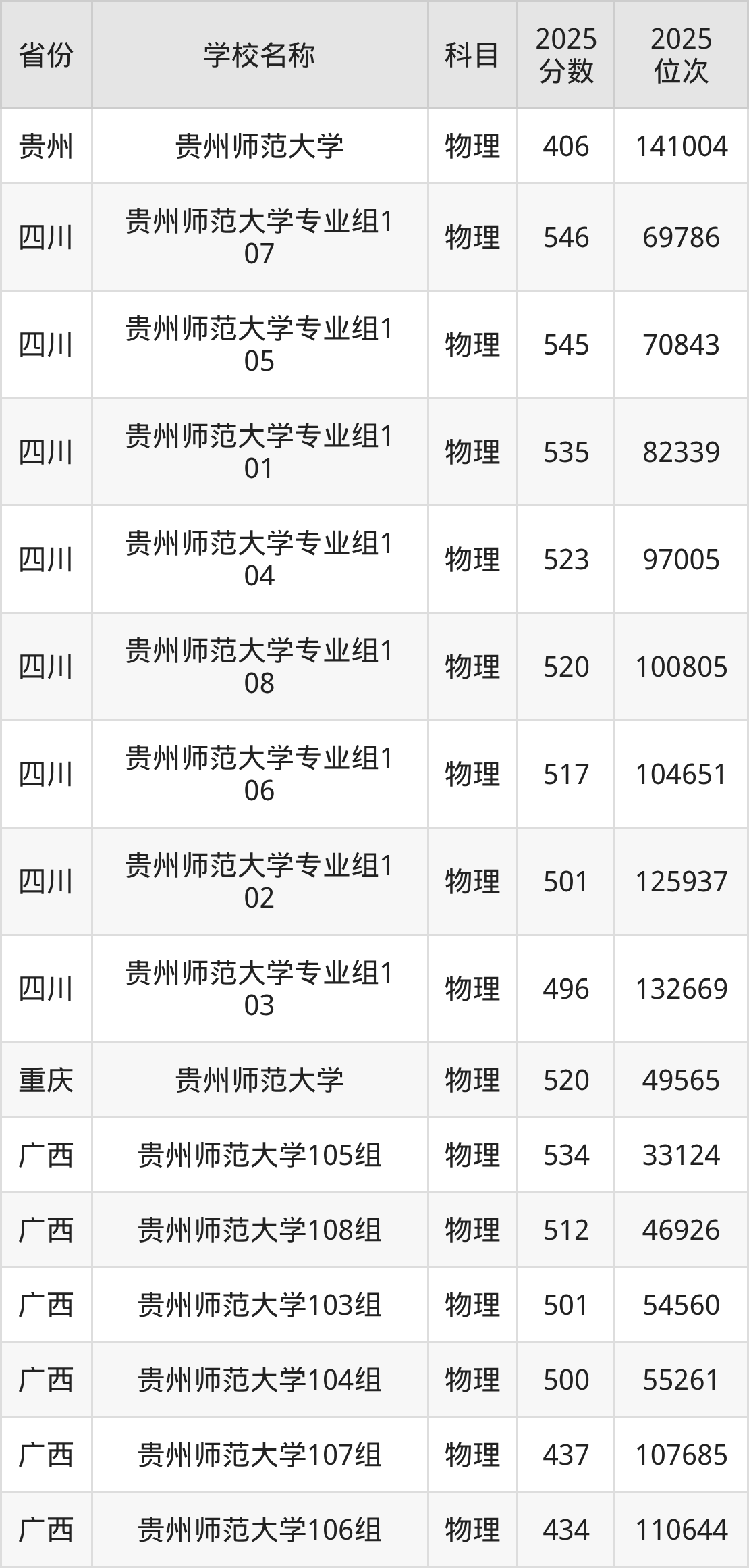 贵州师范大学2025年面向贵州省内首选了物理科目的考生招生: