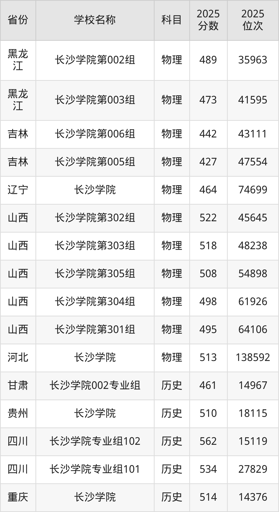二、长沙学院各专业录取分数线
