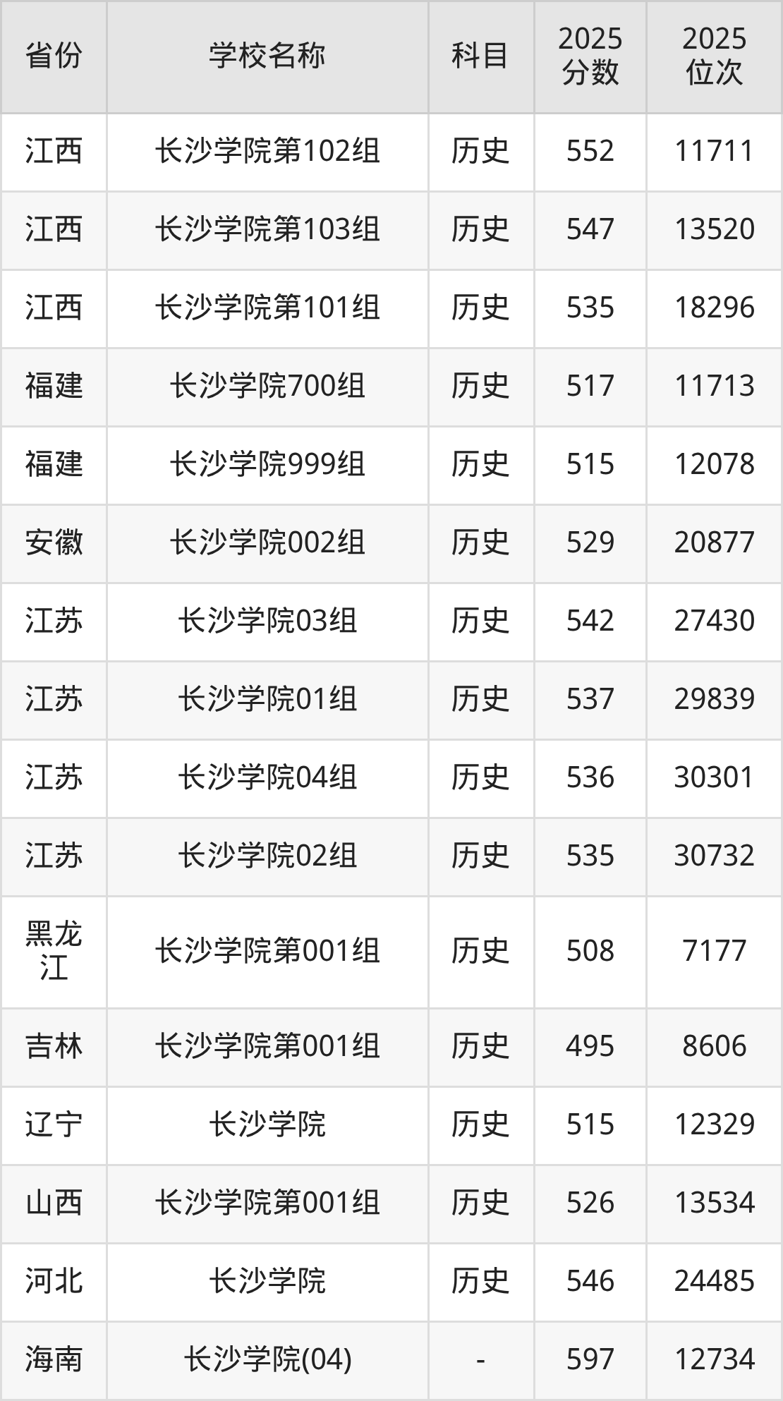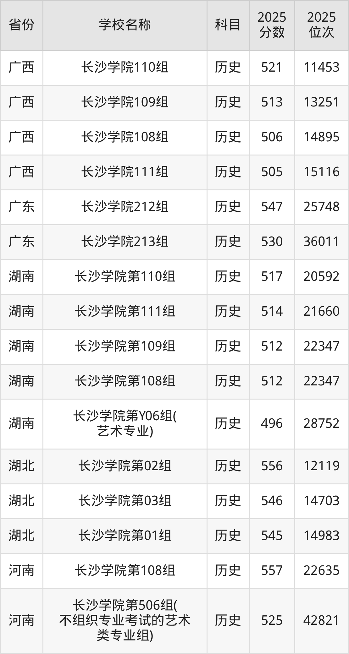 长沙学院2025年有5个专业组面向湖南省内首选了历史科目的考生招生: