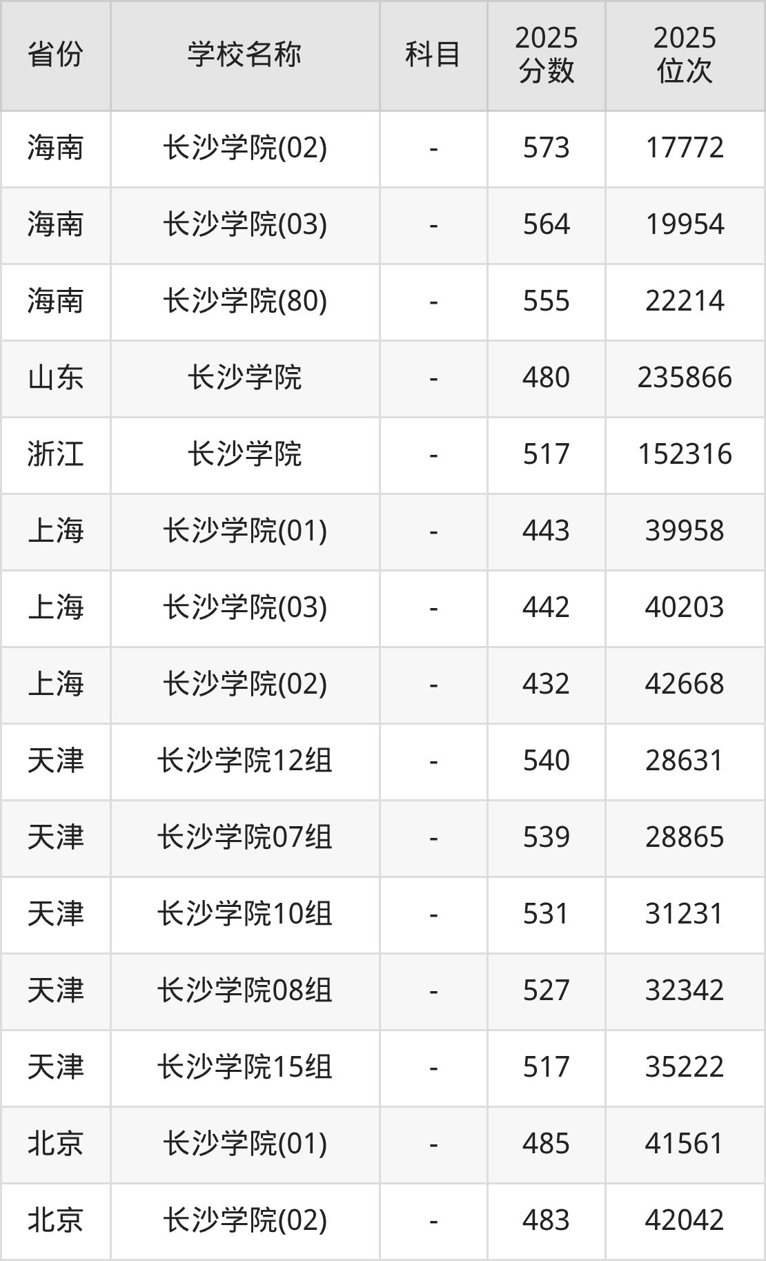 2025年长沙学院在全国各省本科的最低录取分数线在410~597分之间。海南高考生最低597分能上长沙学院、河南物理类高考生最低568分能上长沙学院……下文将展示长沙学院在全国24个高考省份中的本科最低投档录取分汇总!