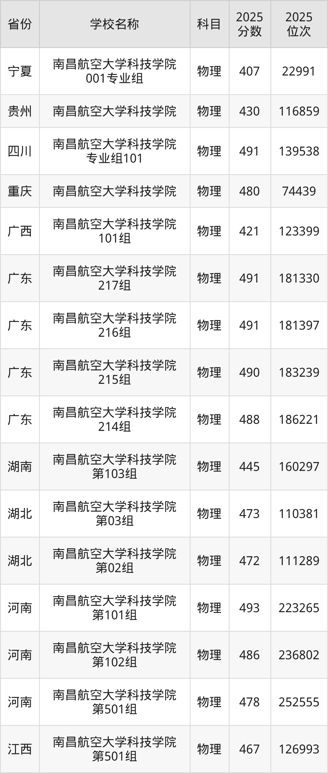 南昌航空大学科技学院2025年有2个专业组面向江西省内首选了物理科目的考生招生: