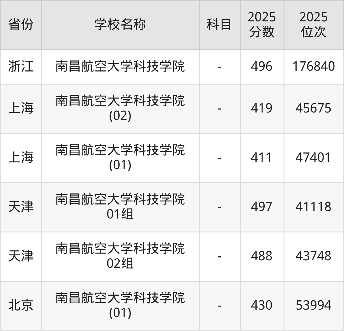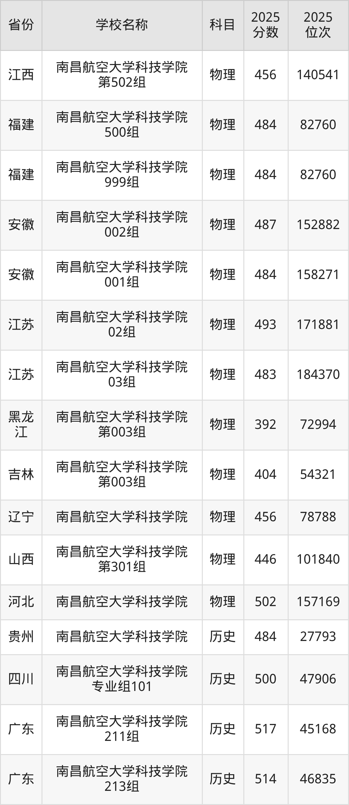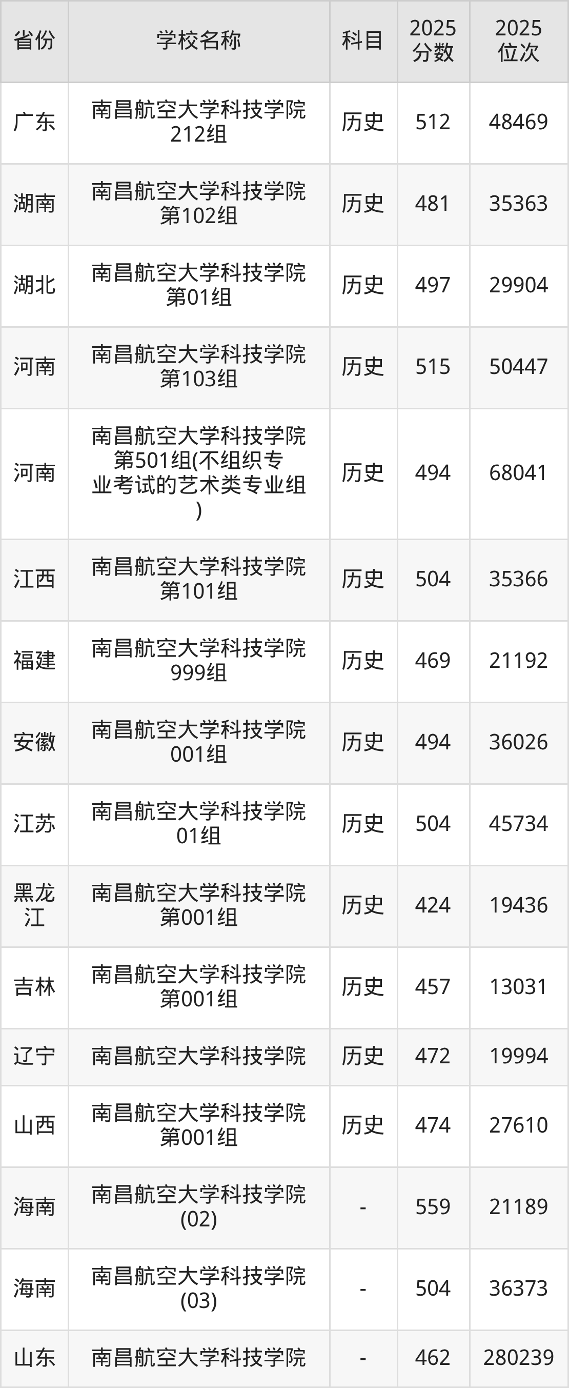 南昌航空大学科技学院2025年有1个专业组面向江西省内首选了历史科目的考生招生: