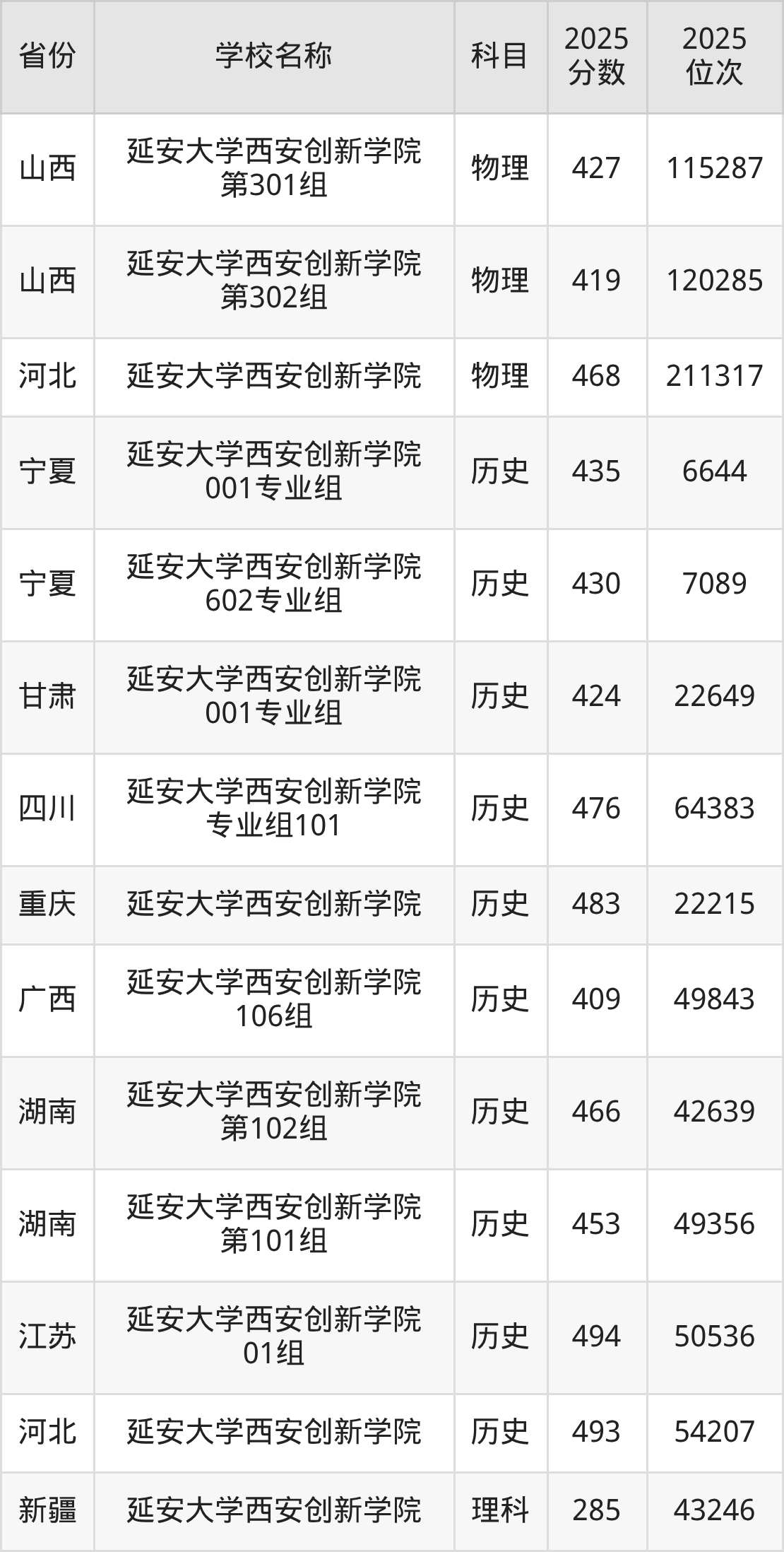 2025年延安大学西安创新学院在全国各省本科的最低录取分数线在285~494分之间。四川历史类高考生最低476分能上延安大学西安创新学院、安徽物理类高考生最低472分能上延安大学西安创新学院……下文将展示延安大学西安创新学院在全国13个高考省份中的本科最低投档录取分汇总!