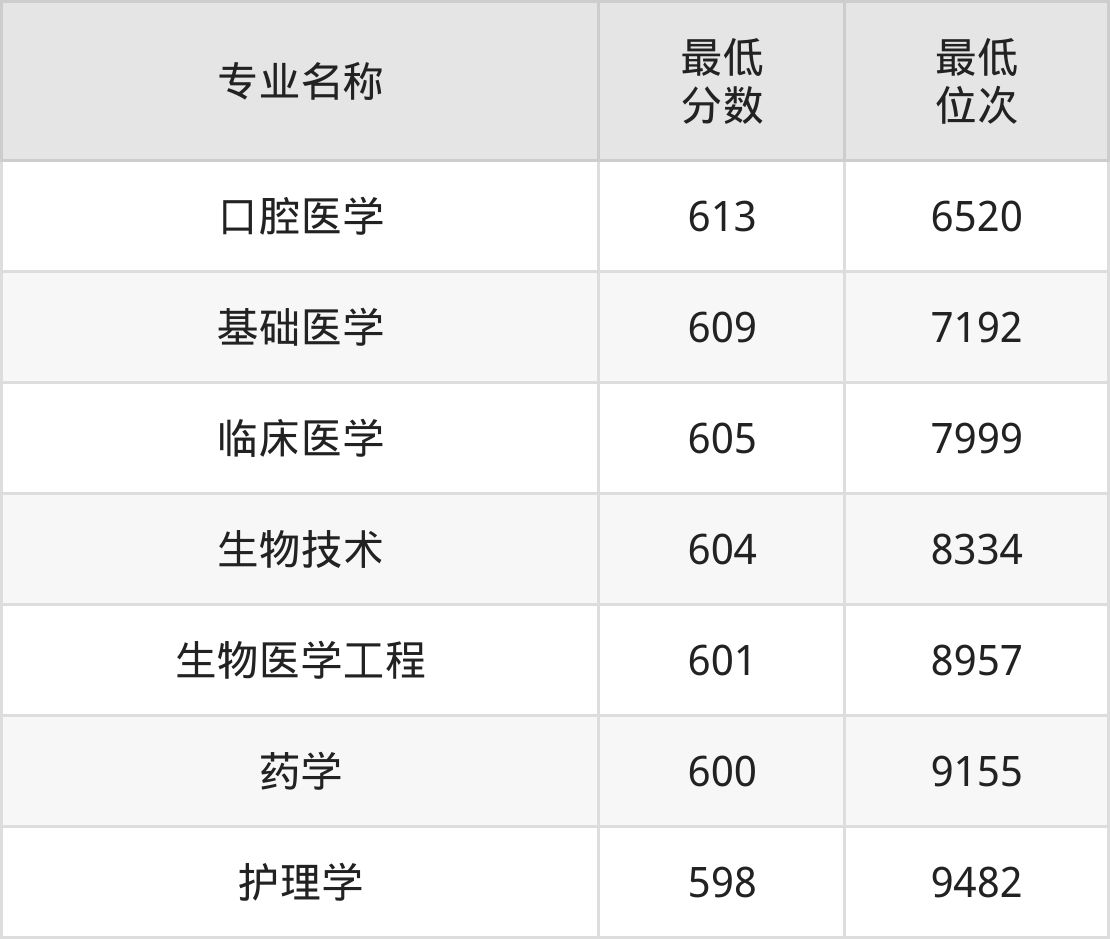 | 四川 | 理科本科一批 | —— | 605/541/623 |