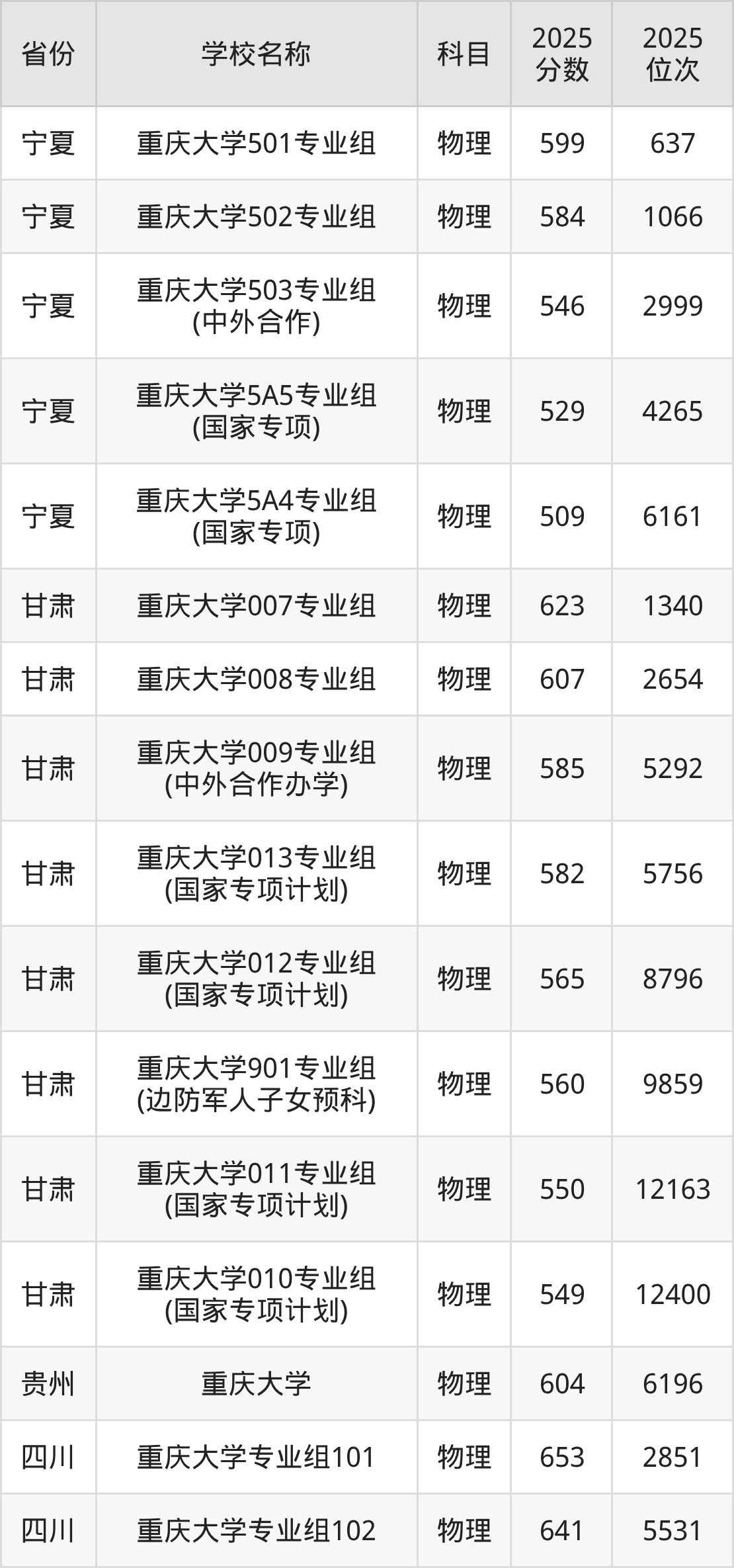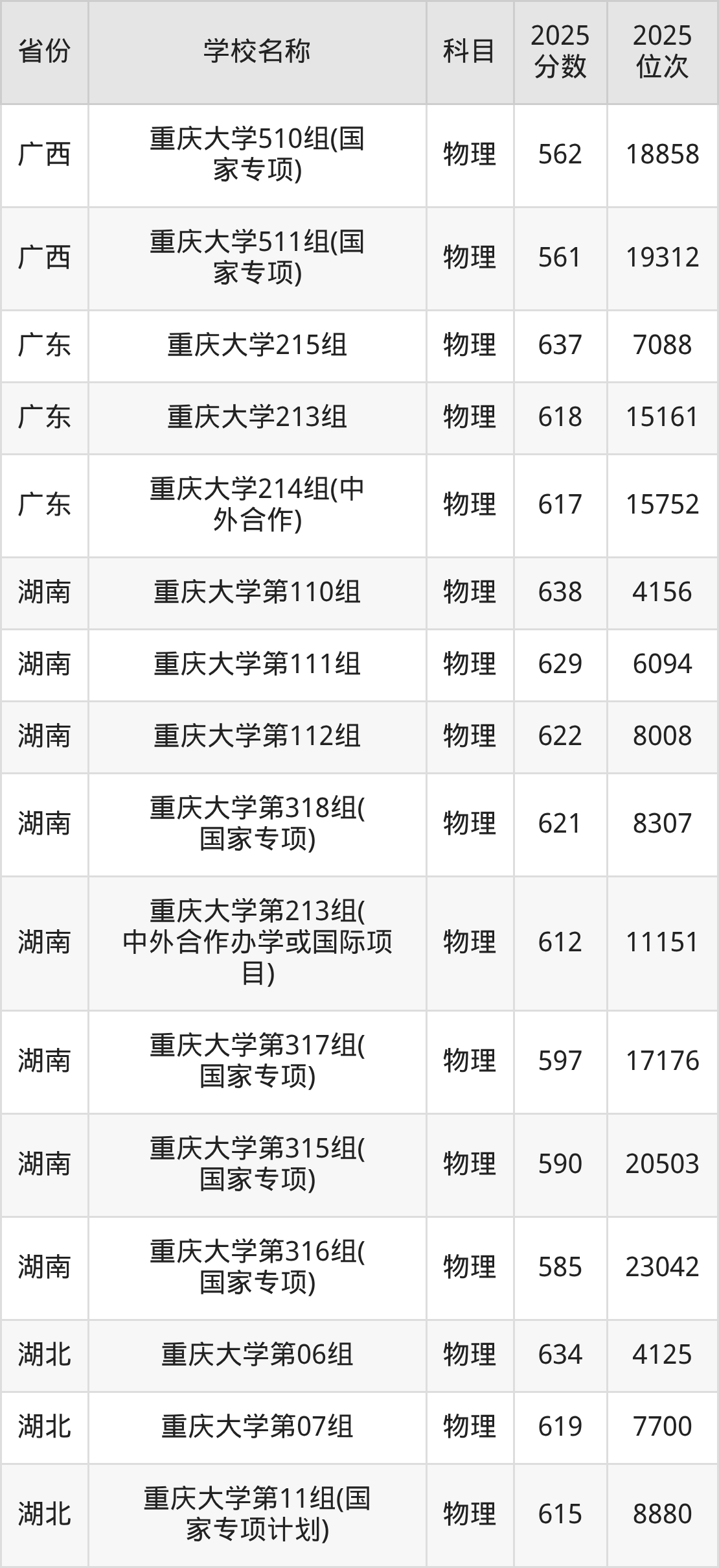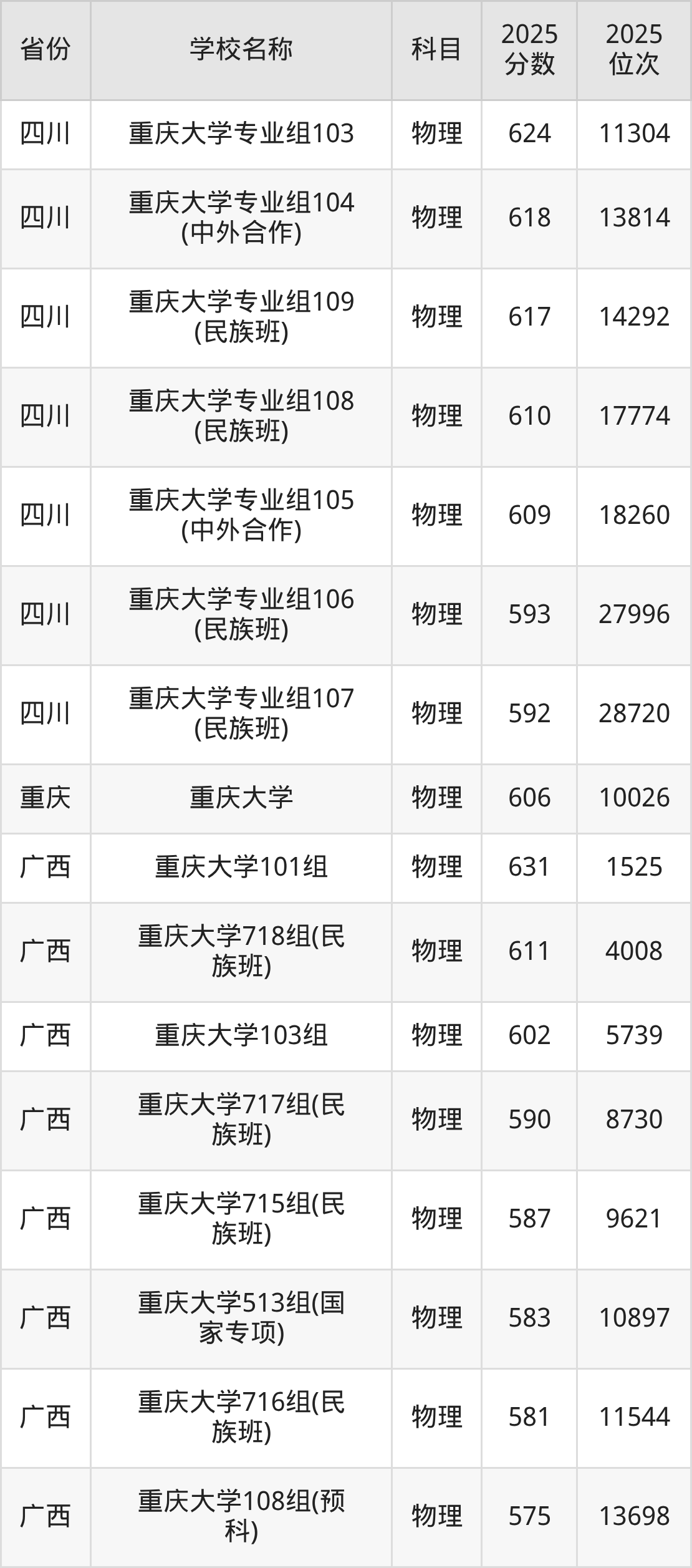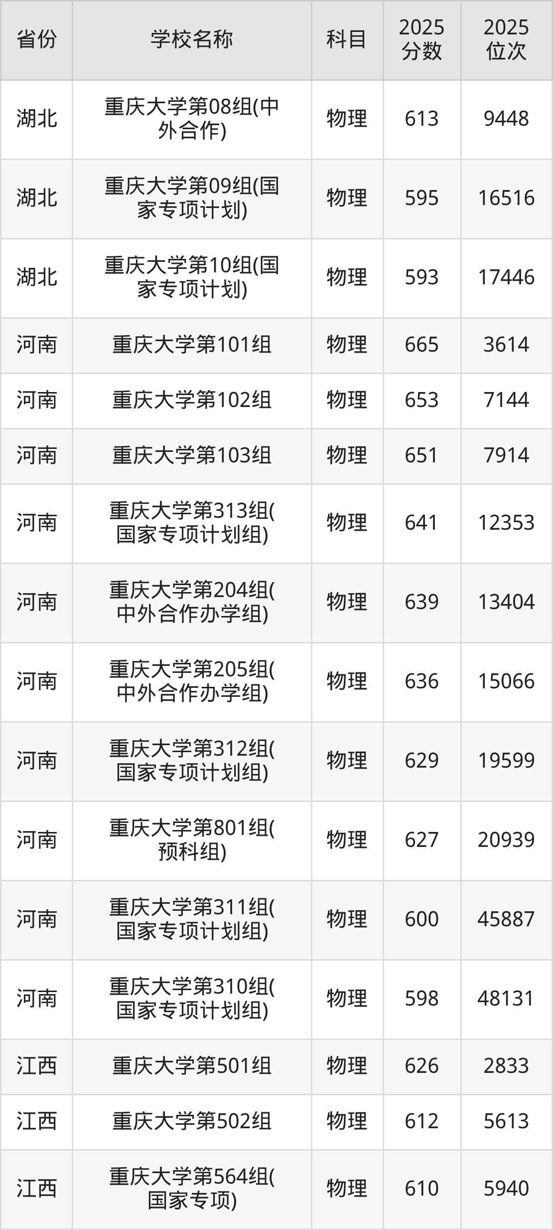 14、物理学专业:2025年最低601分、最低位次是11420