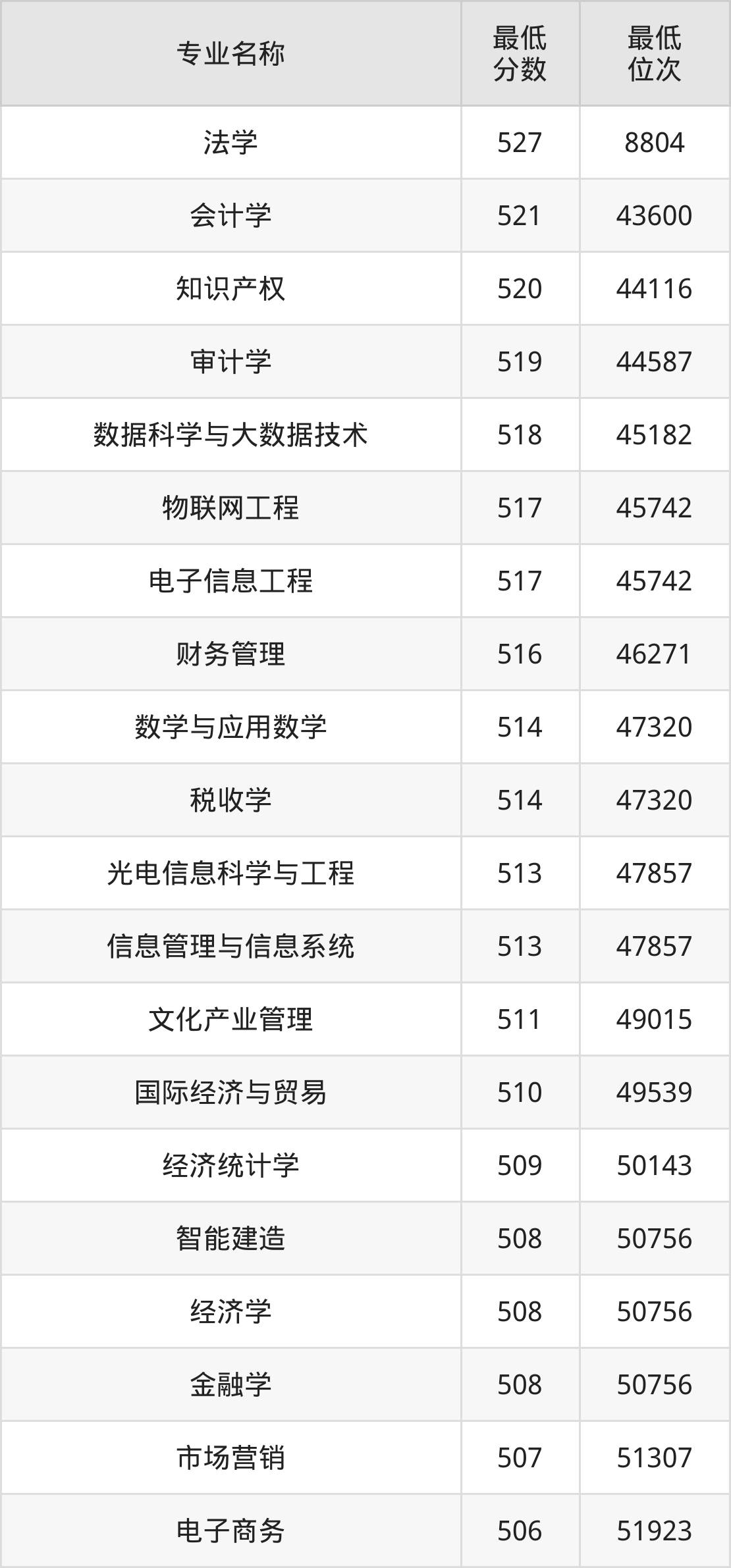 | 福建 | 物理本科批 | 专业组: 500 | 529 |
