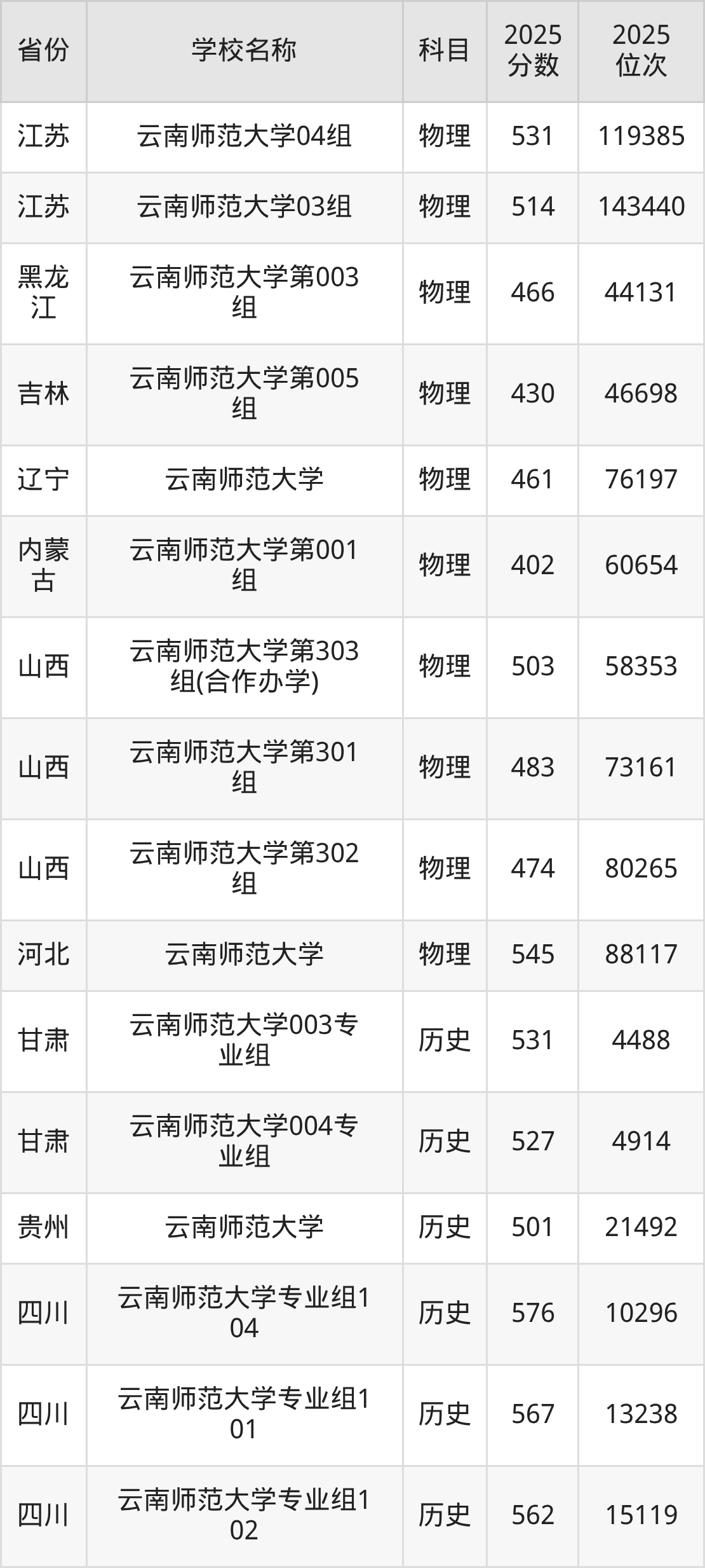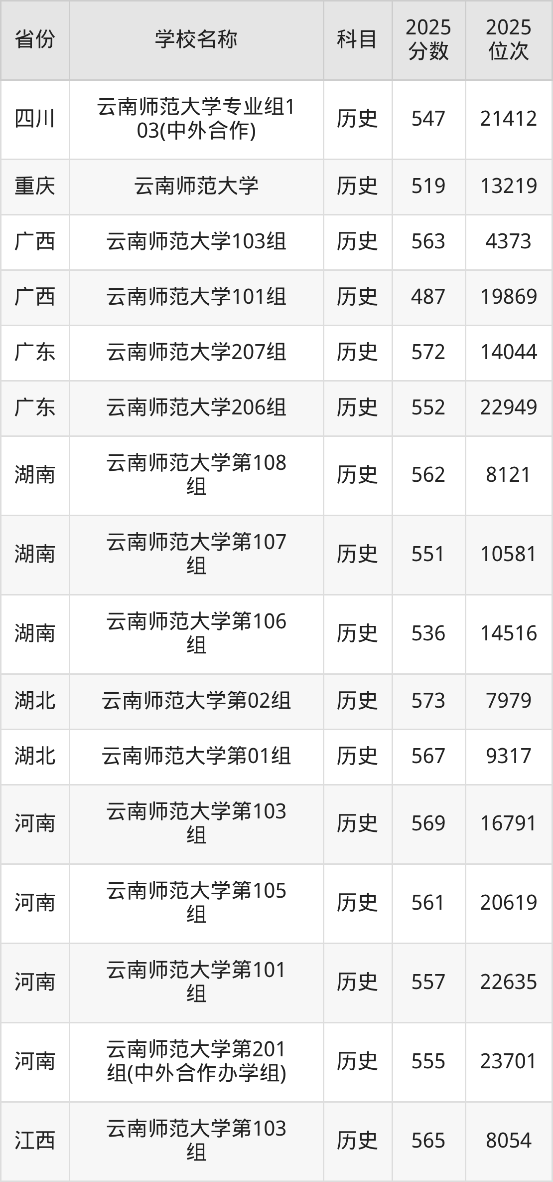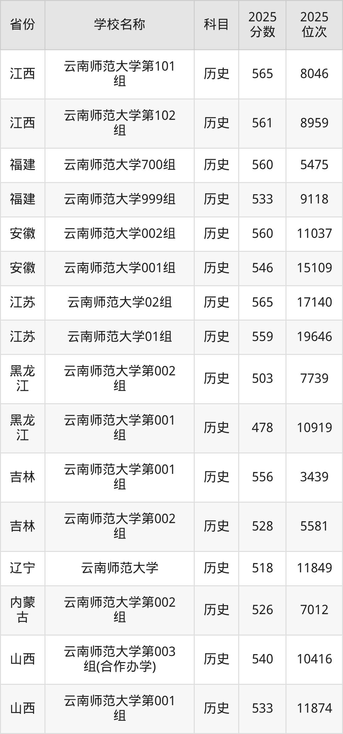 二、云南师范大学各专业录取分数线