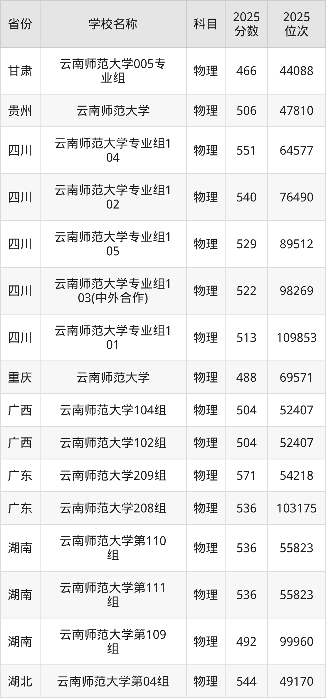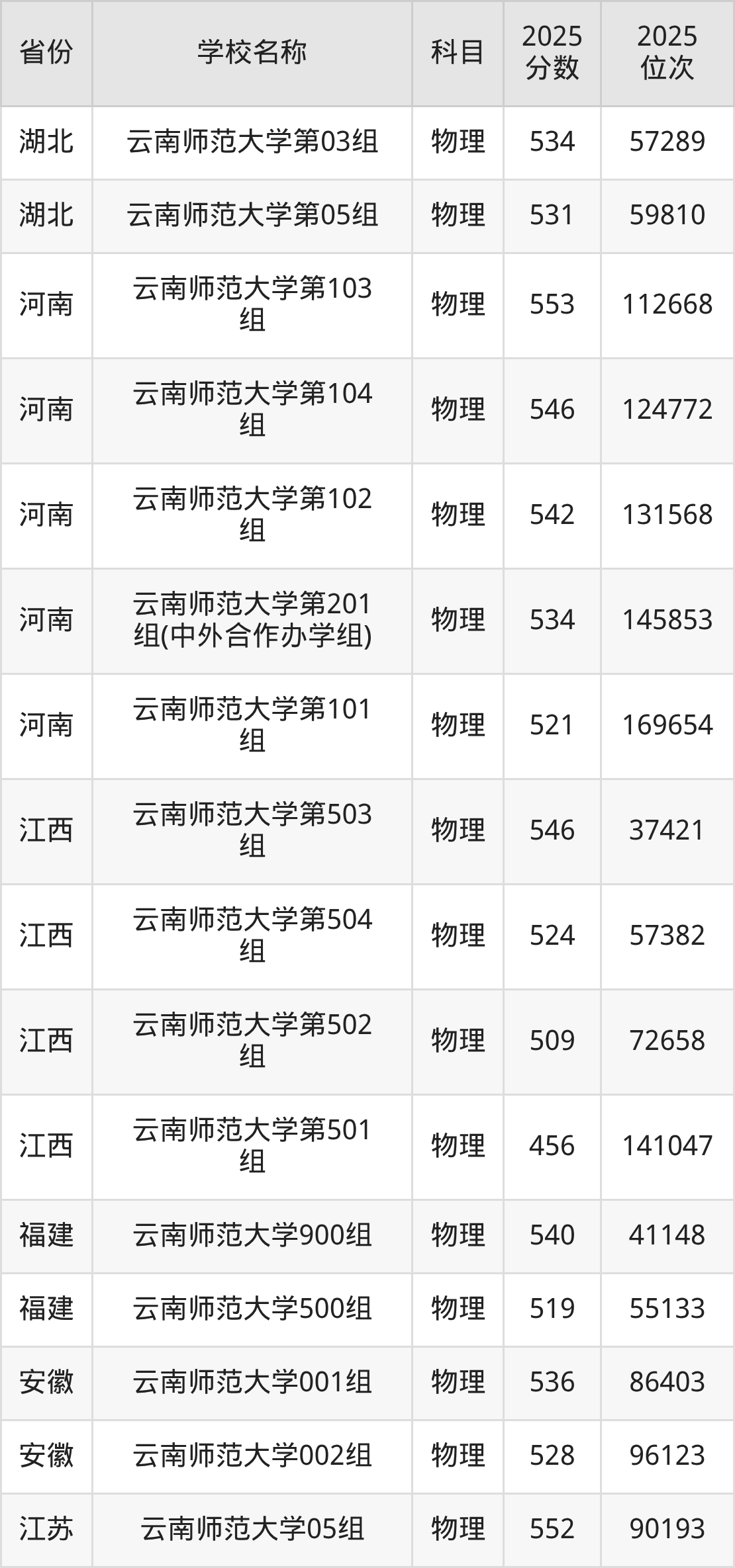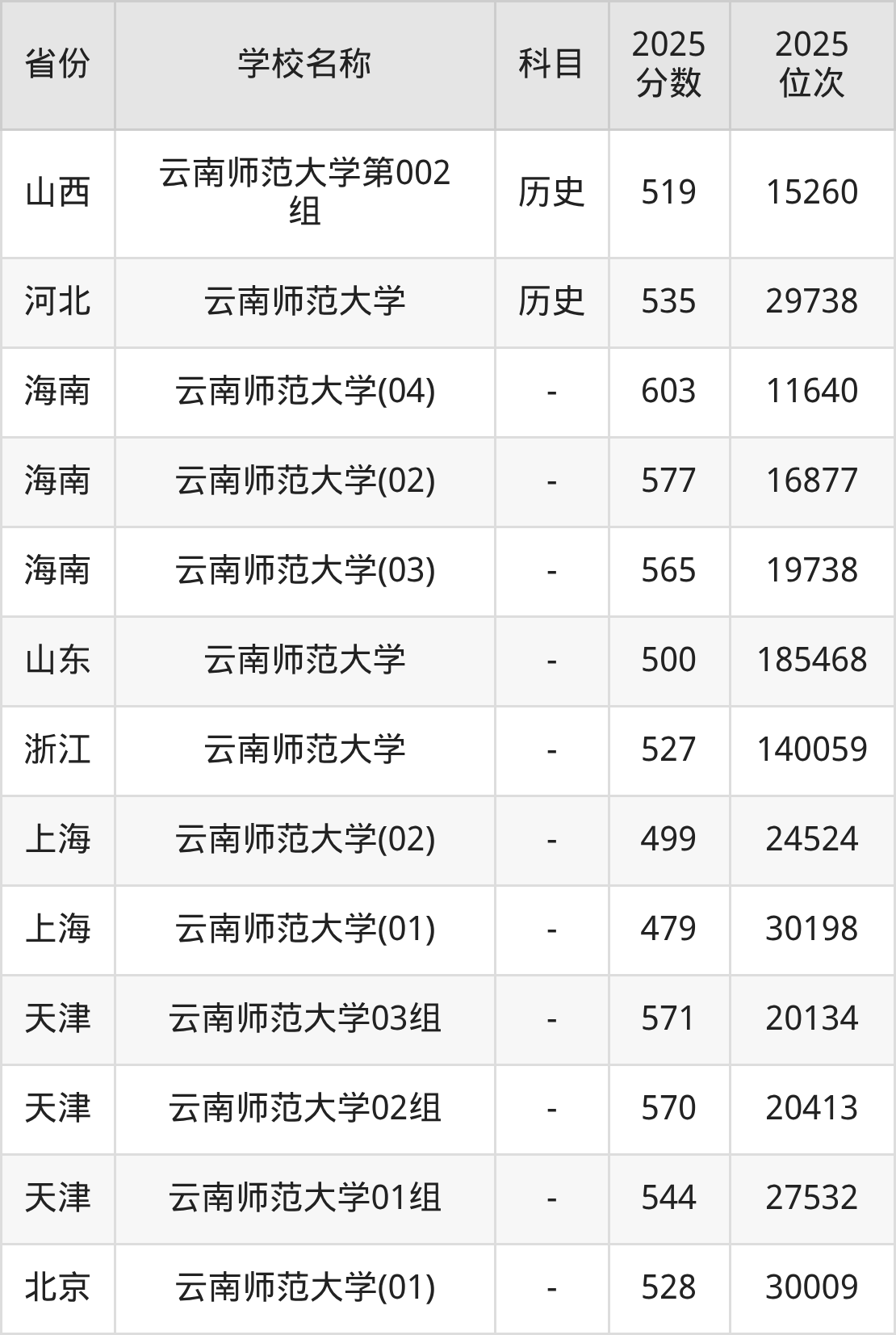 二、云南师范大学各专业录取分数线