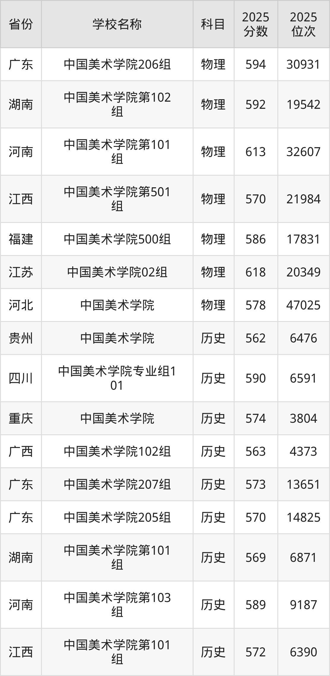 2025年中国美术学院在全国各省本科的最低录取分数线在497~618分之间。江苏物理类高考生最低618分能上中国美术学院、天津高考生最低614分能上中国美术学院……下文将展示中国美术学院在全国21个高考省份中的本科最低投档录取分汇总!