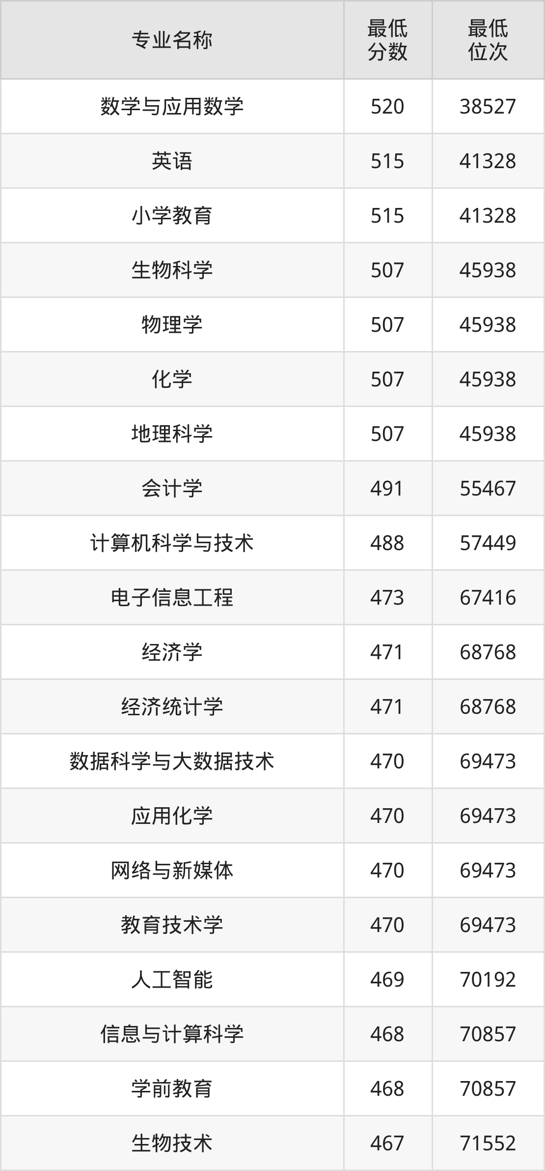 | 陕西 | 理科本科二批 | —— | 441/408/414 |