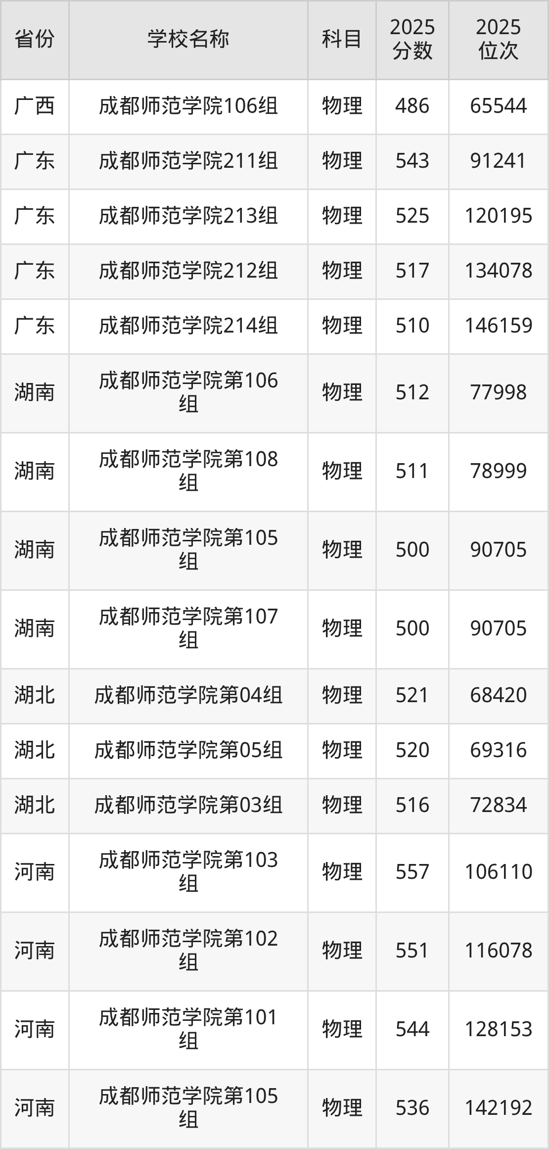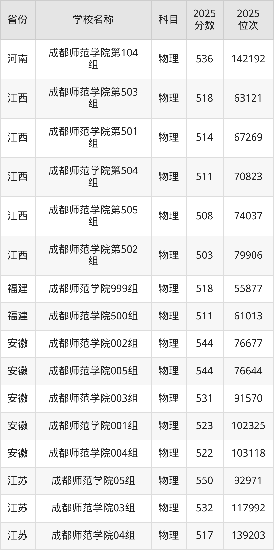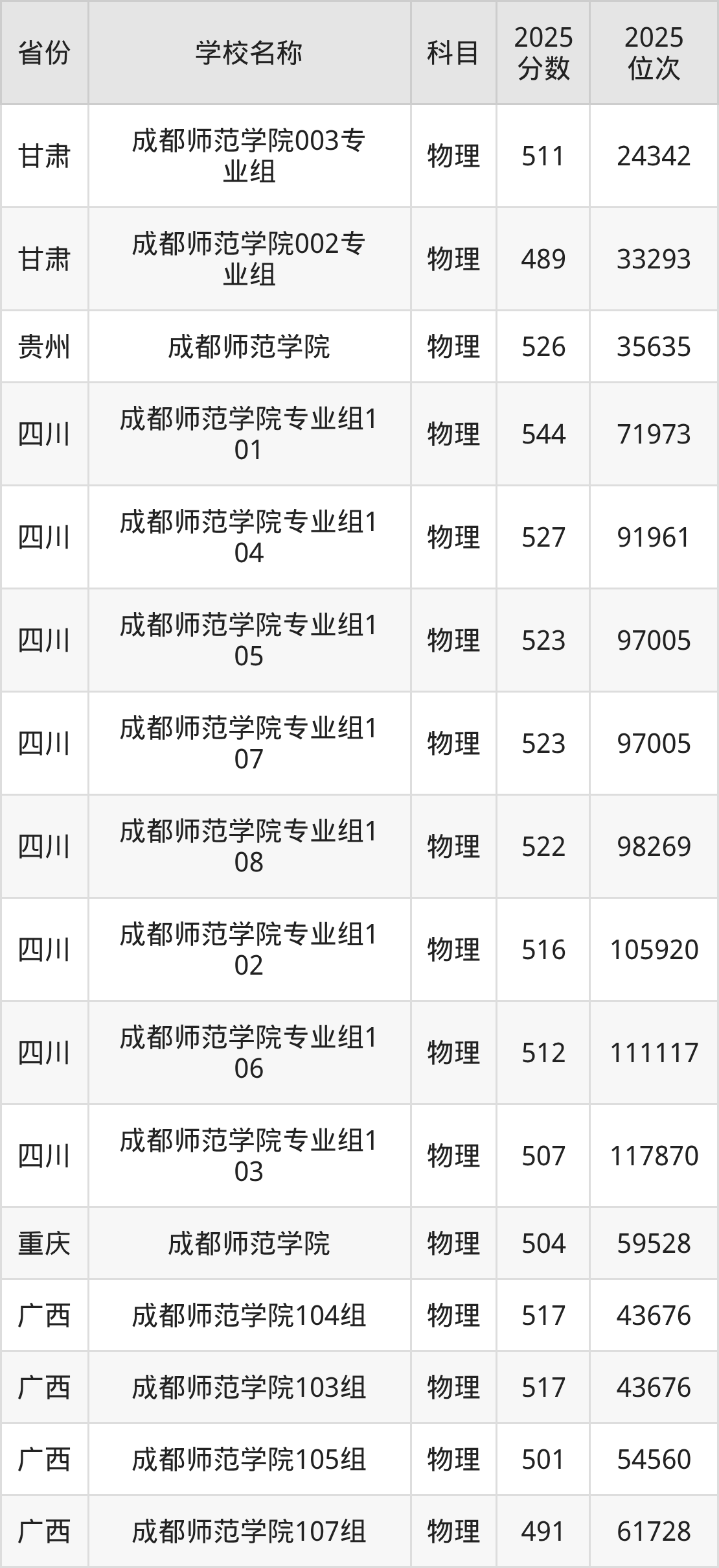成都师范学院2025年有75个专业组面向四川省内首选了物理科目的考生招生: