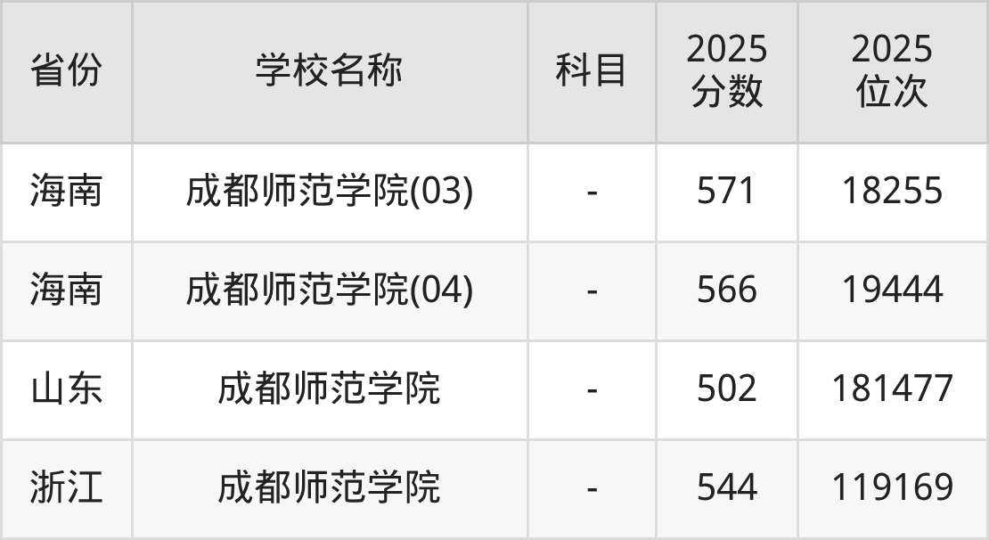 2025年成都师范学院在全国各省本科的最低录取分数线在486~609分之间。海南高考生最低609分能上成都师范学院、河南物理类高考生最低557分能上成都师范学院……下文将展示成都师范学院在全国18个高考省份中的本科最低投档录取分汇总!